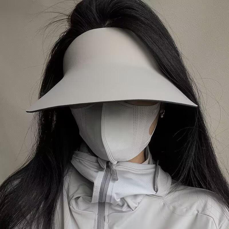 Sombrero de protección solar integrado sin costuras para mujer, sombrero anti-UV para el sol, sombrero deportivo de verano con ala grande, sombrero plegable con parte superior vacía.