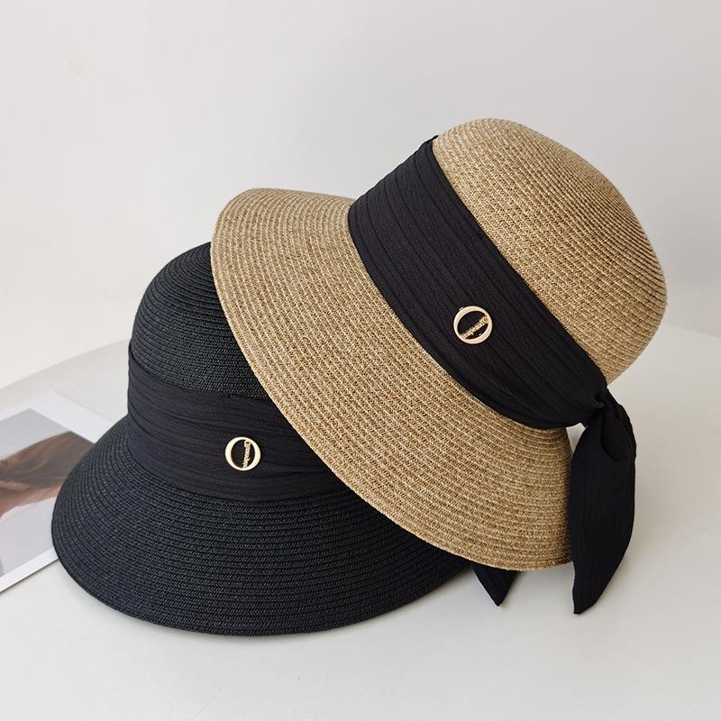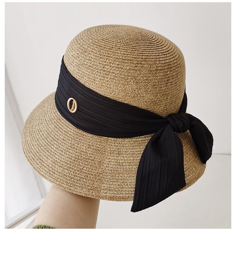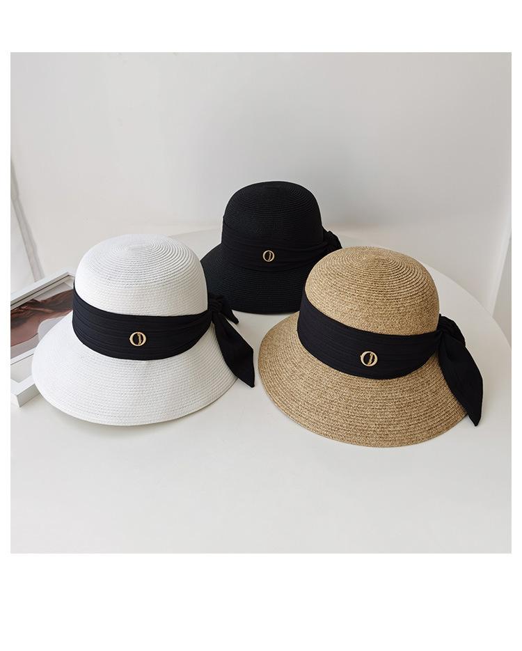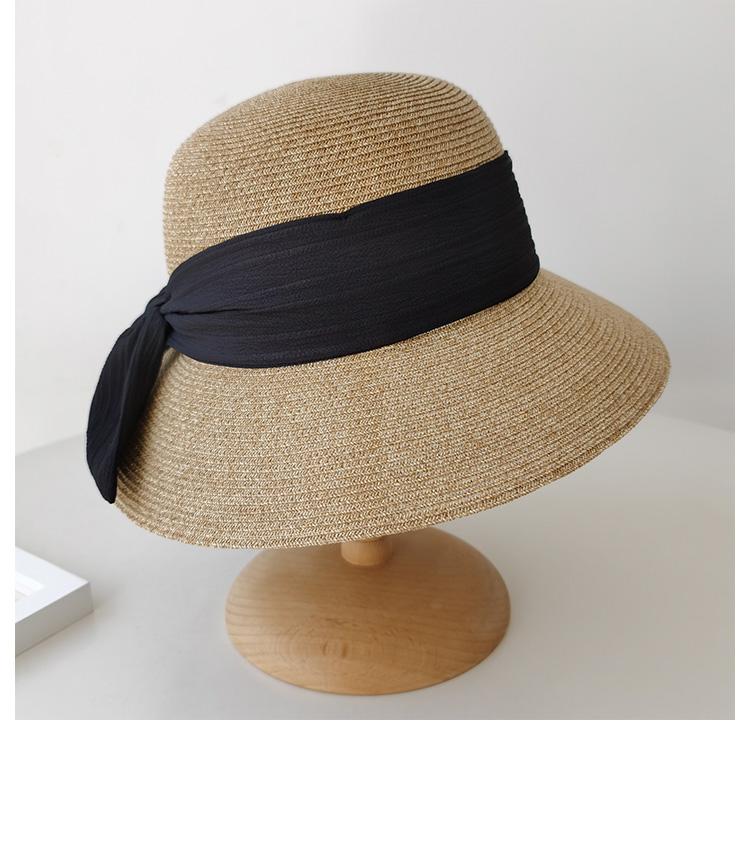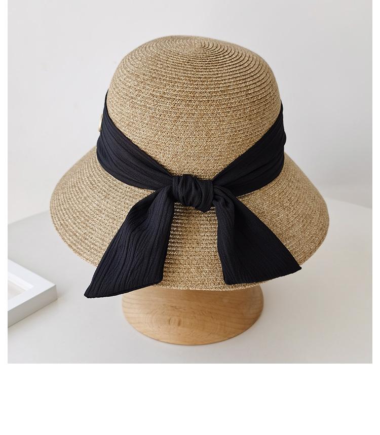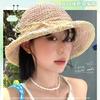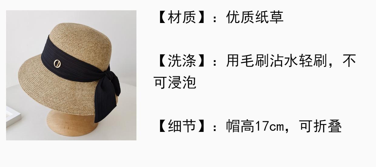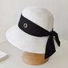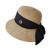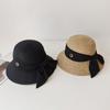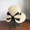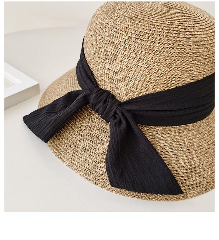 Sombrero de paja con lazo estilo Hepburn para mujer, sombrilla de verano, protector solar, sombrero de playa para vacaciones en la playa, sombrero de pescador de ala grande plegable