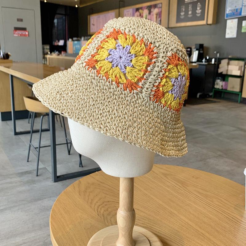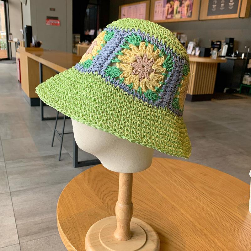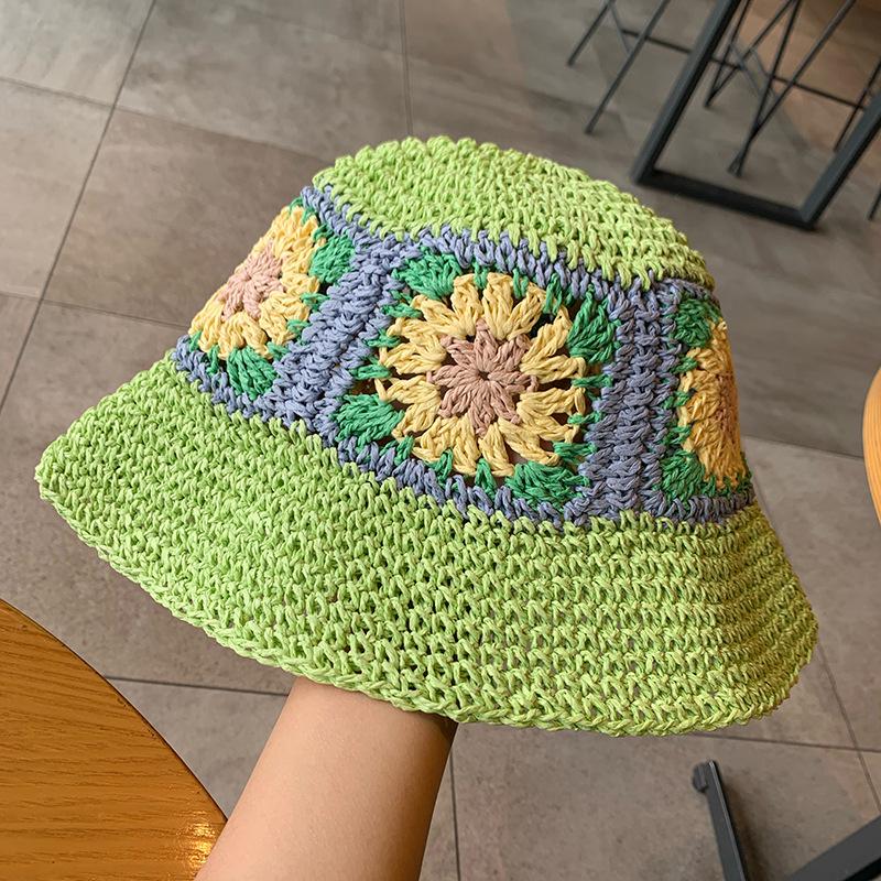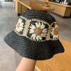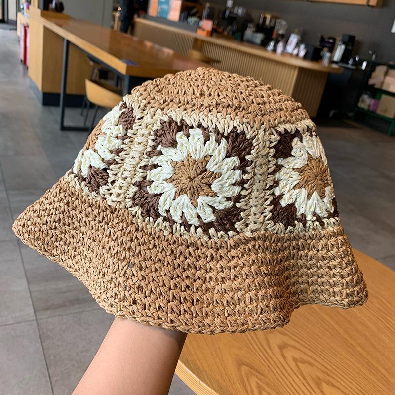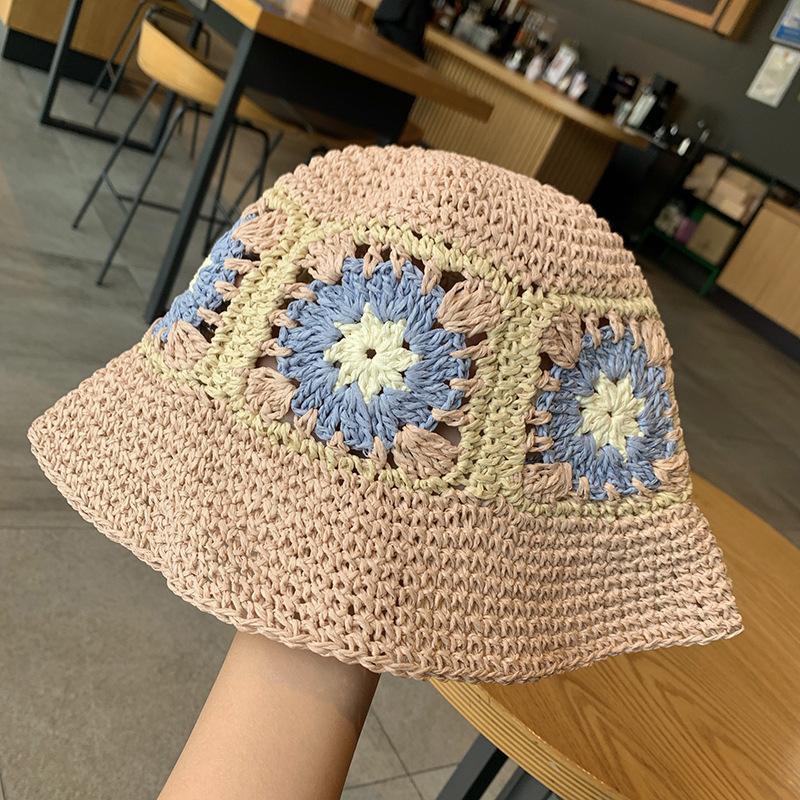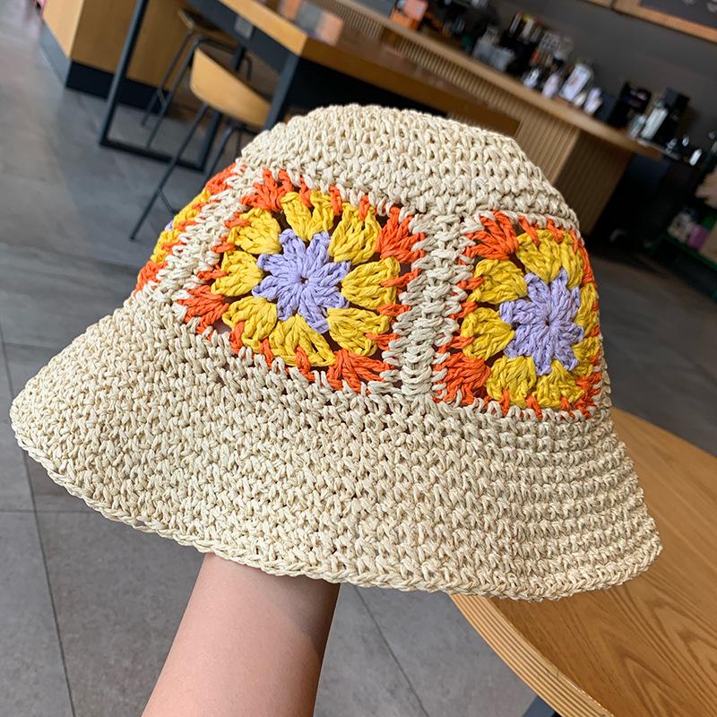 Sombrero de Paja de Viaje de Verano para Mujer Vacaciones de Playa Orilla del Mar Parasol Sombrero para el Sol Ala Ancha Tejido a Mano Sombrero de Cubeta de Paja