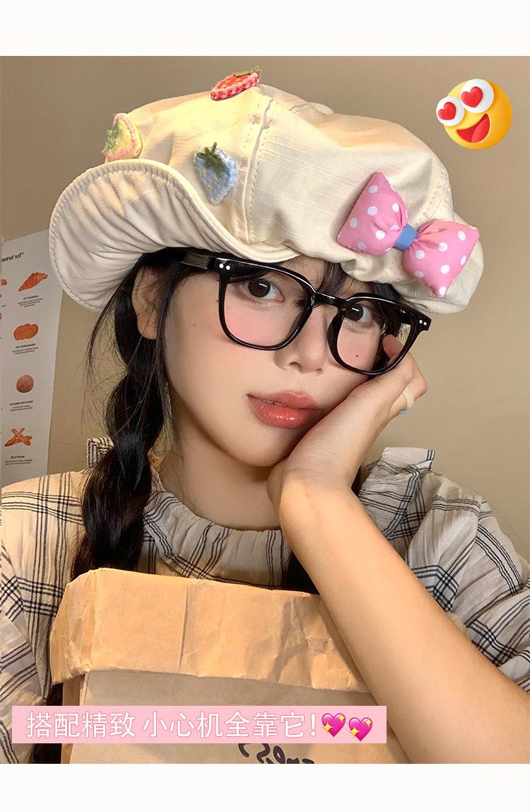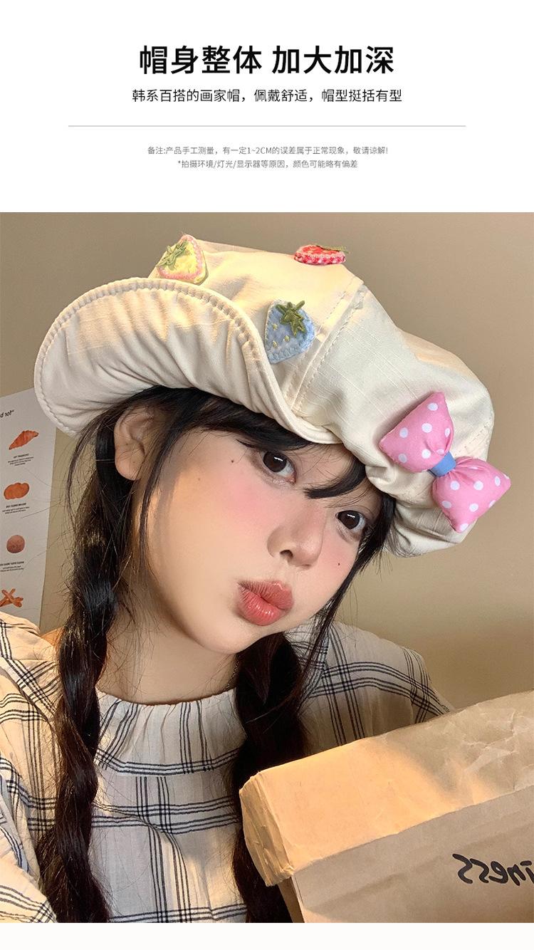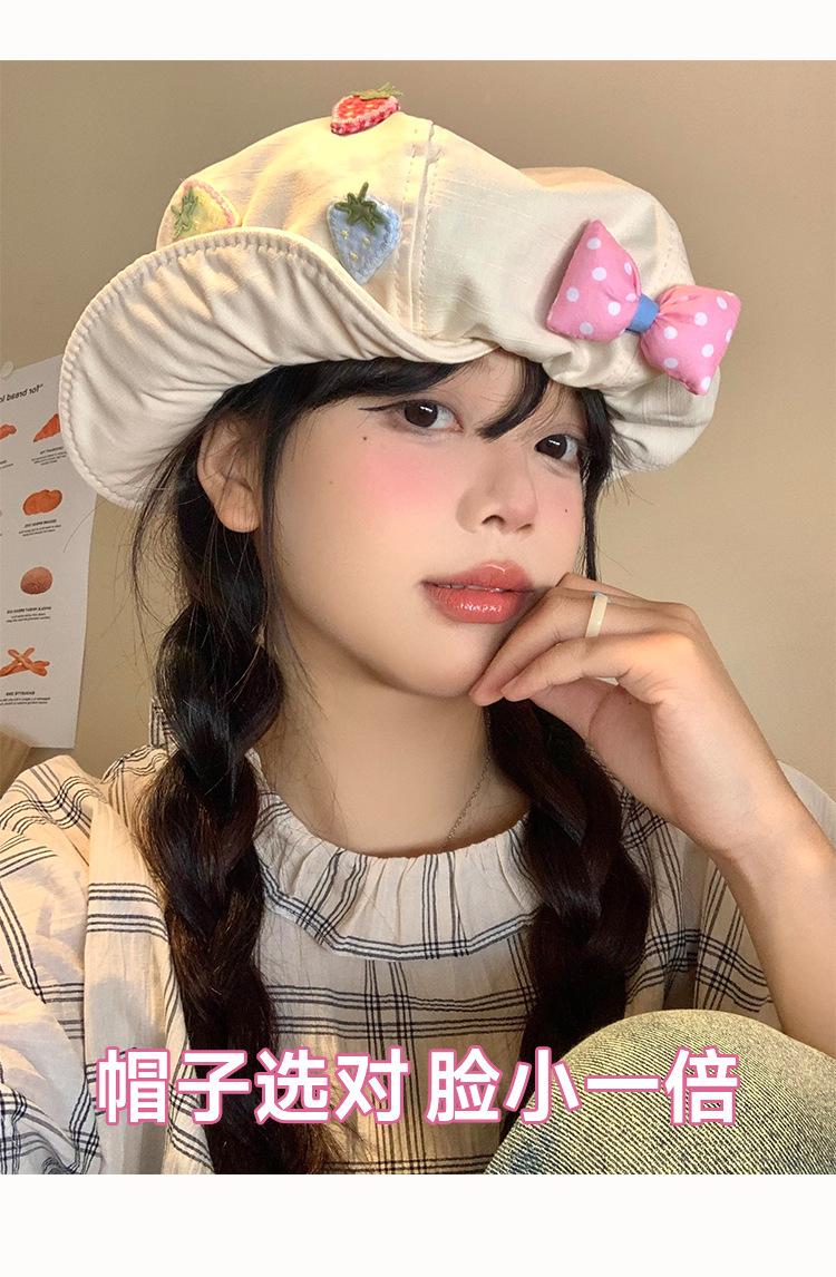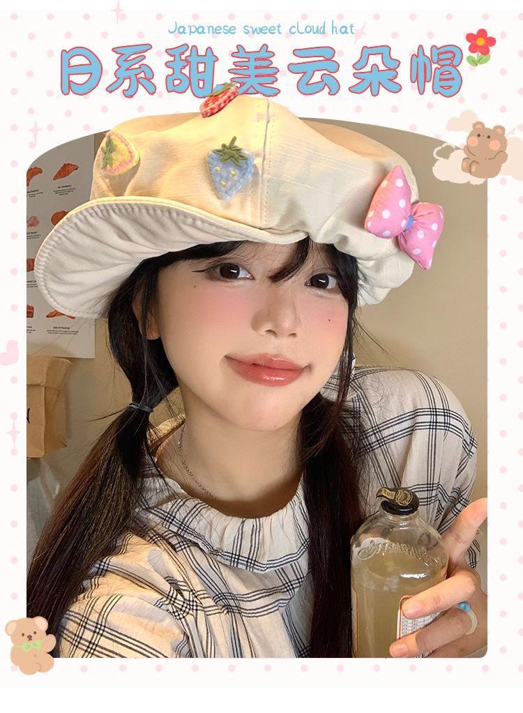 Boina con lazo de fresa para mujer, estilo coreano, de verano, con forma de nube grande y combinable, ideal para pintores pequeños.