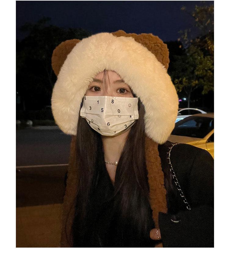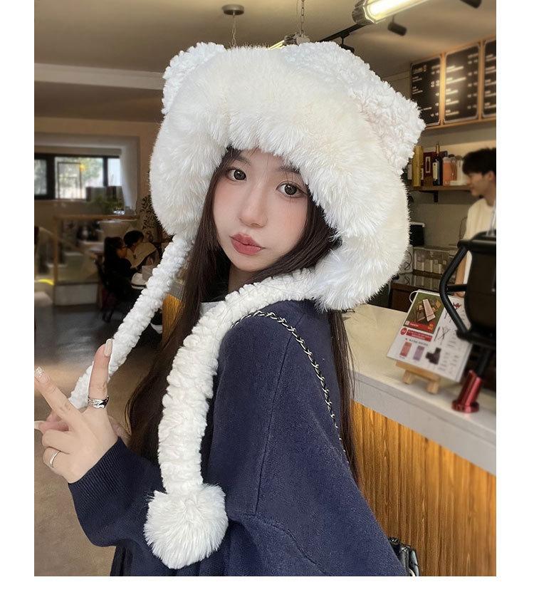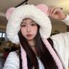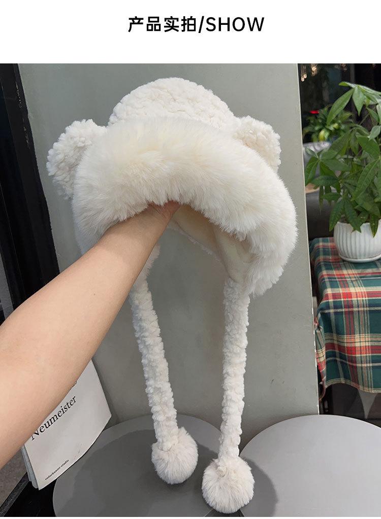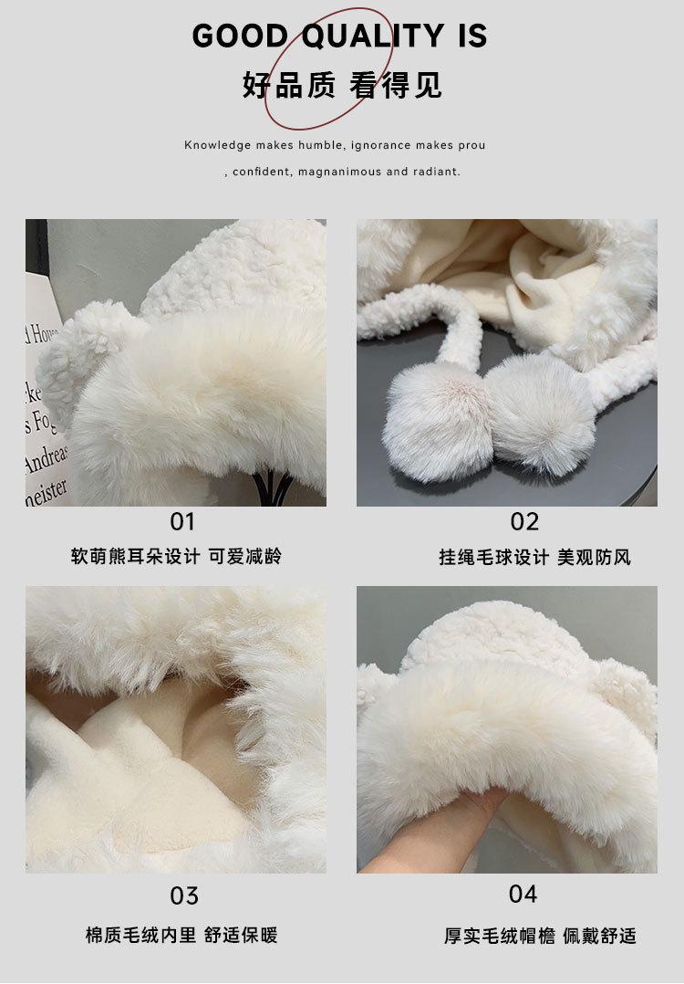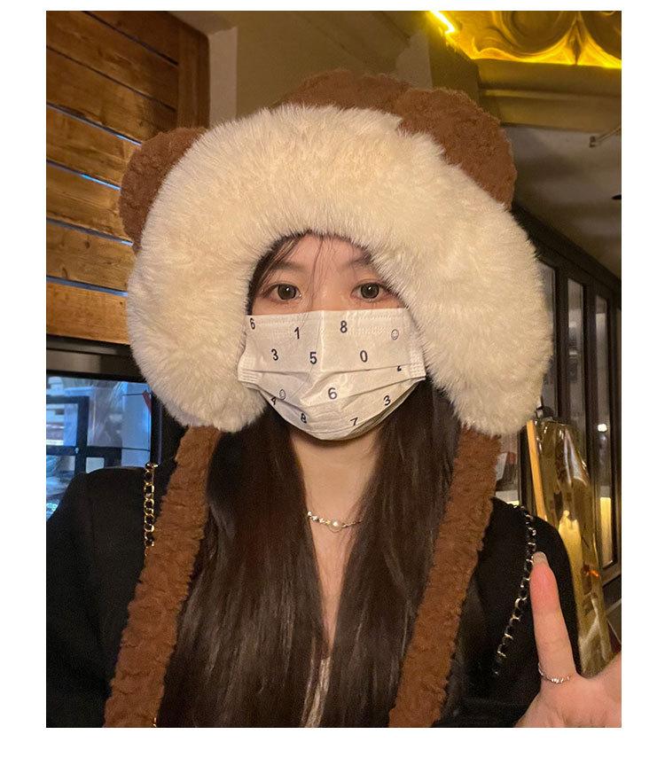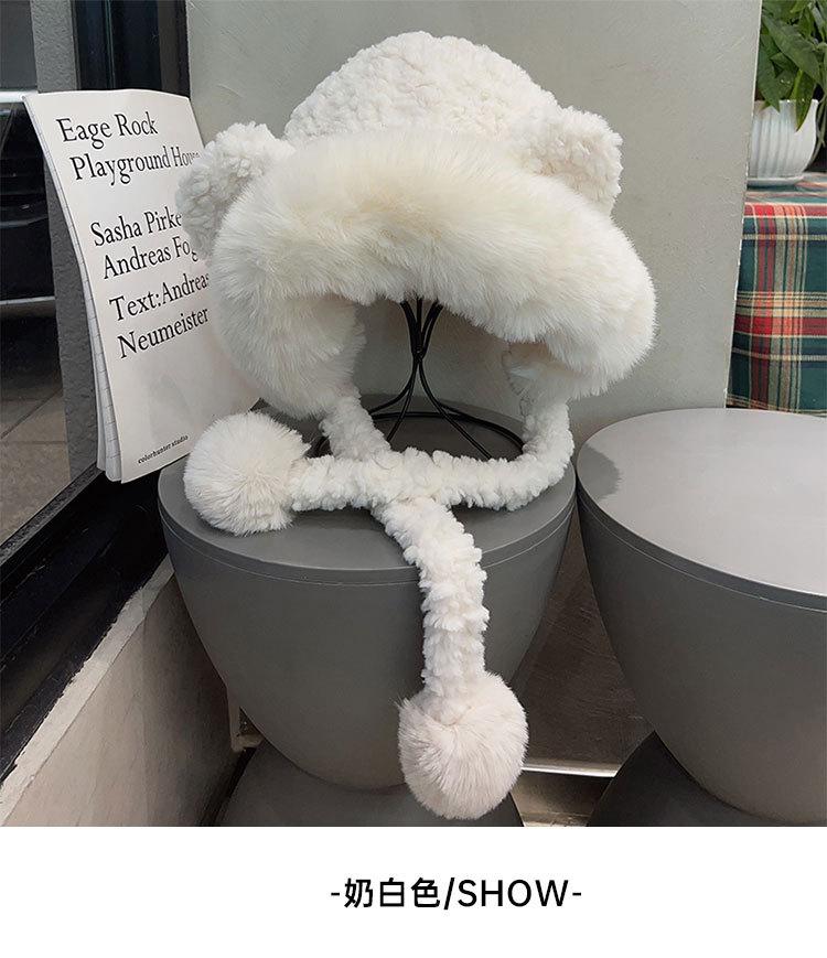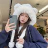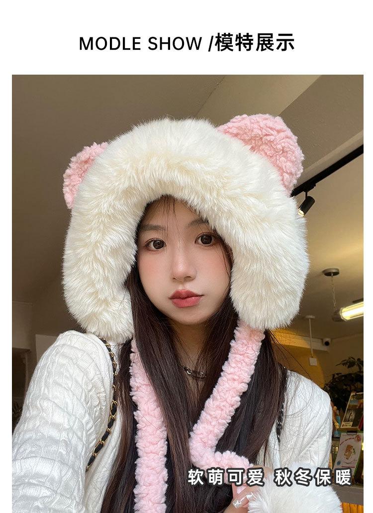 Lindo gorro de felpa de oso para mujer, invierno, forrado de polar, grueso y cálido, gorro Lei Feng con protección para los oídos a prueba de viento, gorro para la cabeza para estudiante