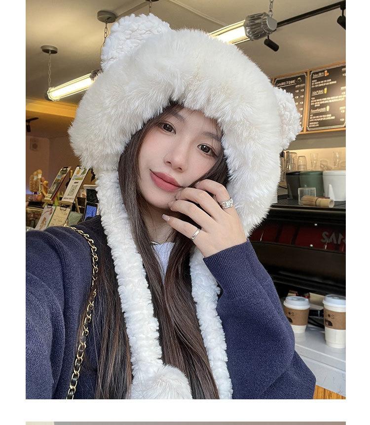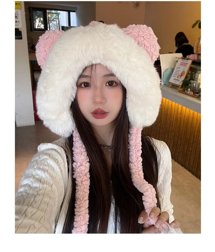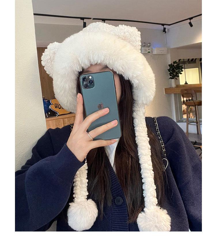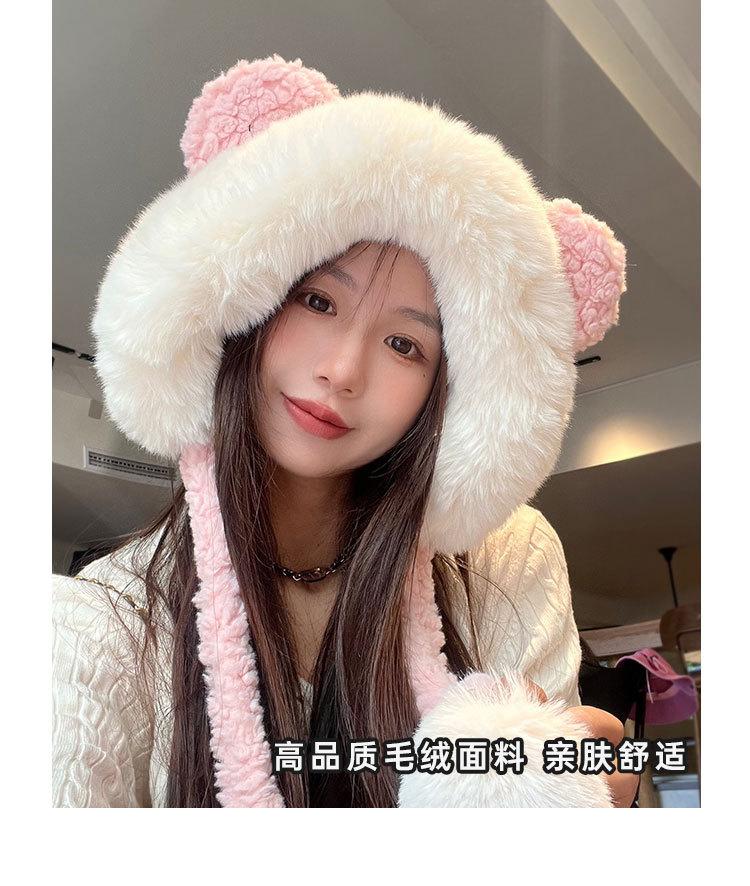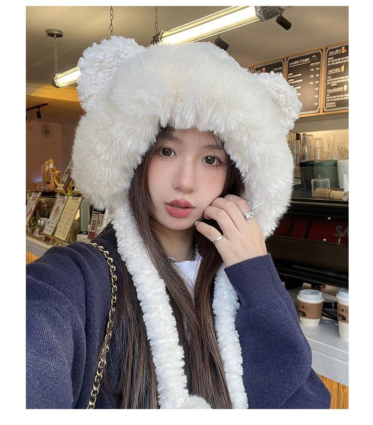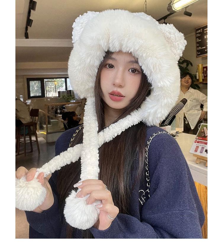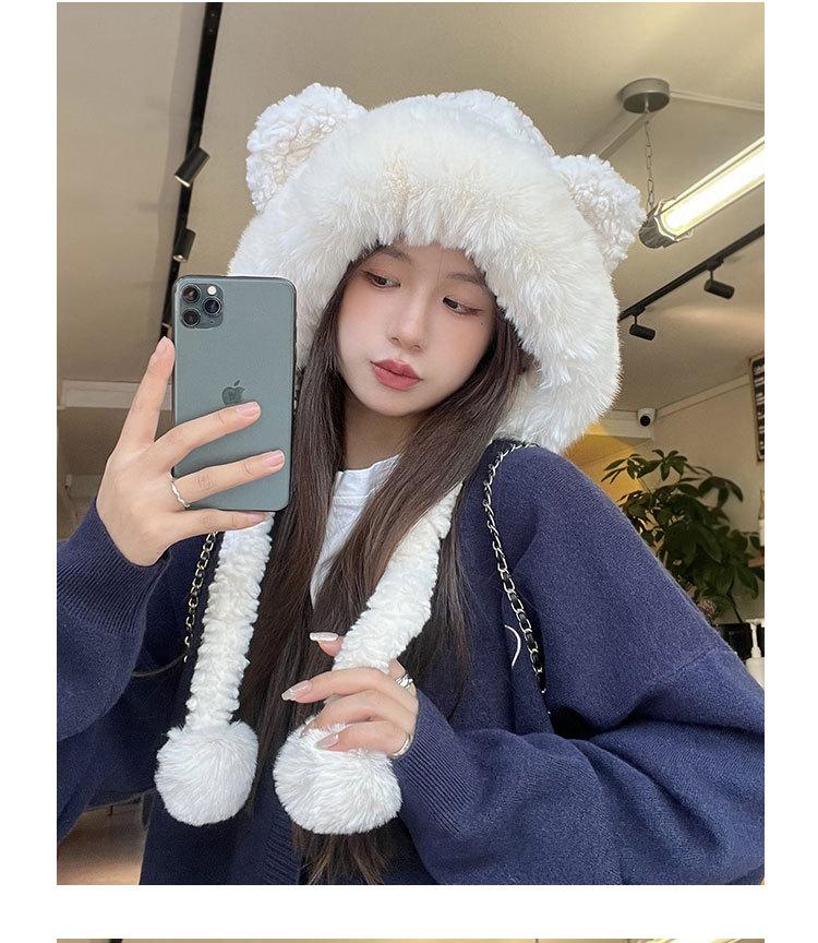 Lindo gorro de felpa de oso para mujer, invierno, forrado de polar, grueso y cálido, gorro Lei Feng con protección para los oídos a prueba de viento, gorro para la cabeza para estudiante