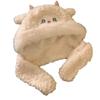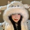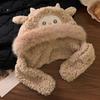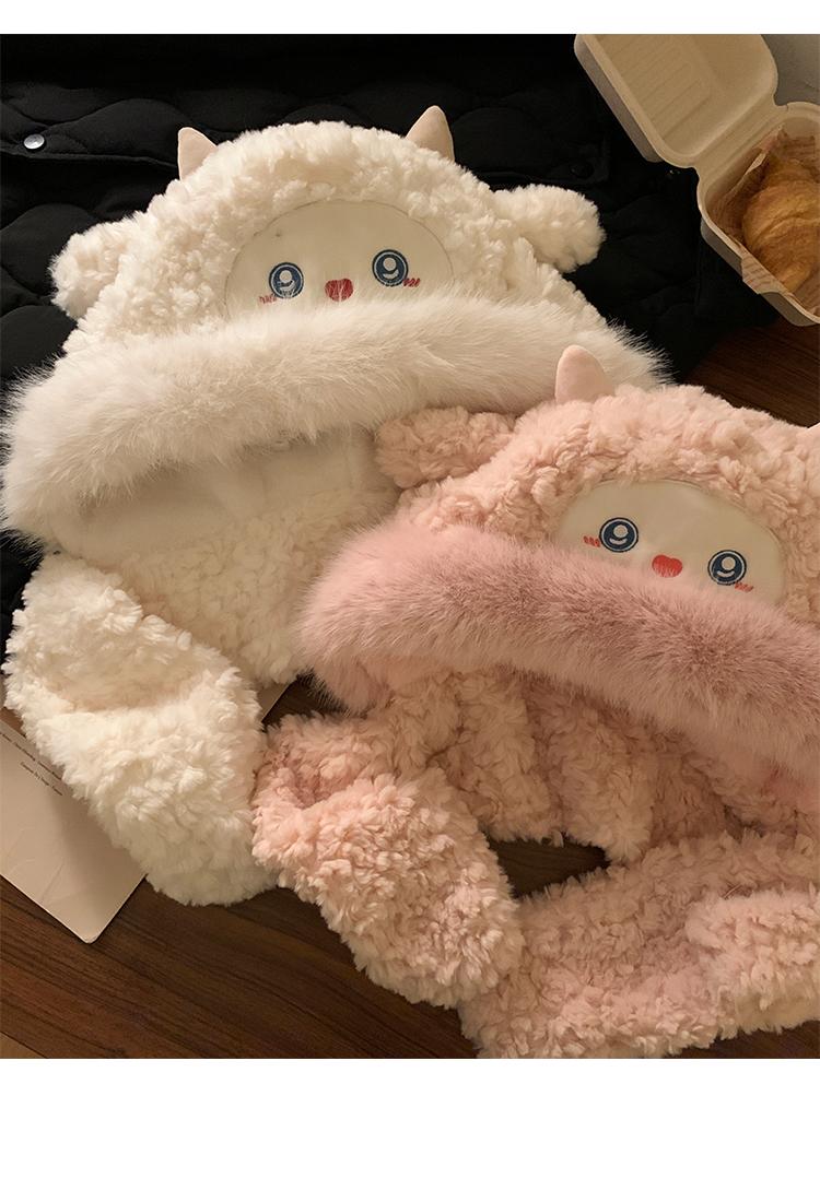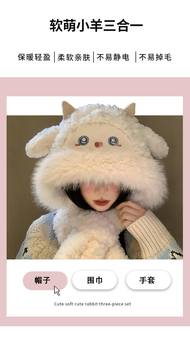 Gorro de oveja esponjoso para mujer, bonito gorro de invierno, cálido, resistente al frío, bufanda de una pieza, grueso, con protección para las orejas, gorro Lei Feng.