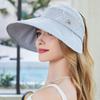 Sombrero de verano anti-ultravioleta para niños, de ala ancha, que cubre la cara, para viajes y paseos, con cola de caballo en la parte superior vacía.