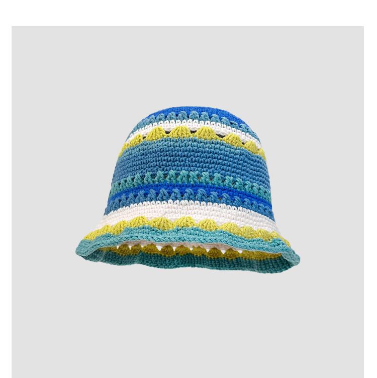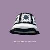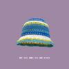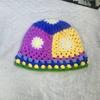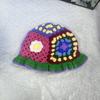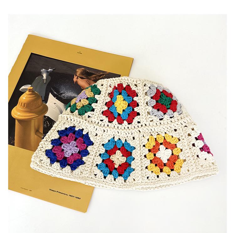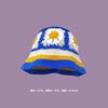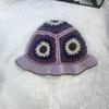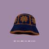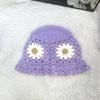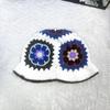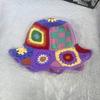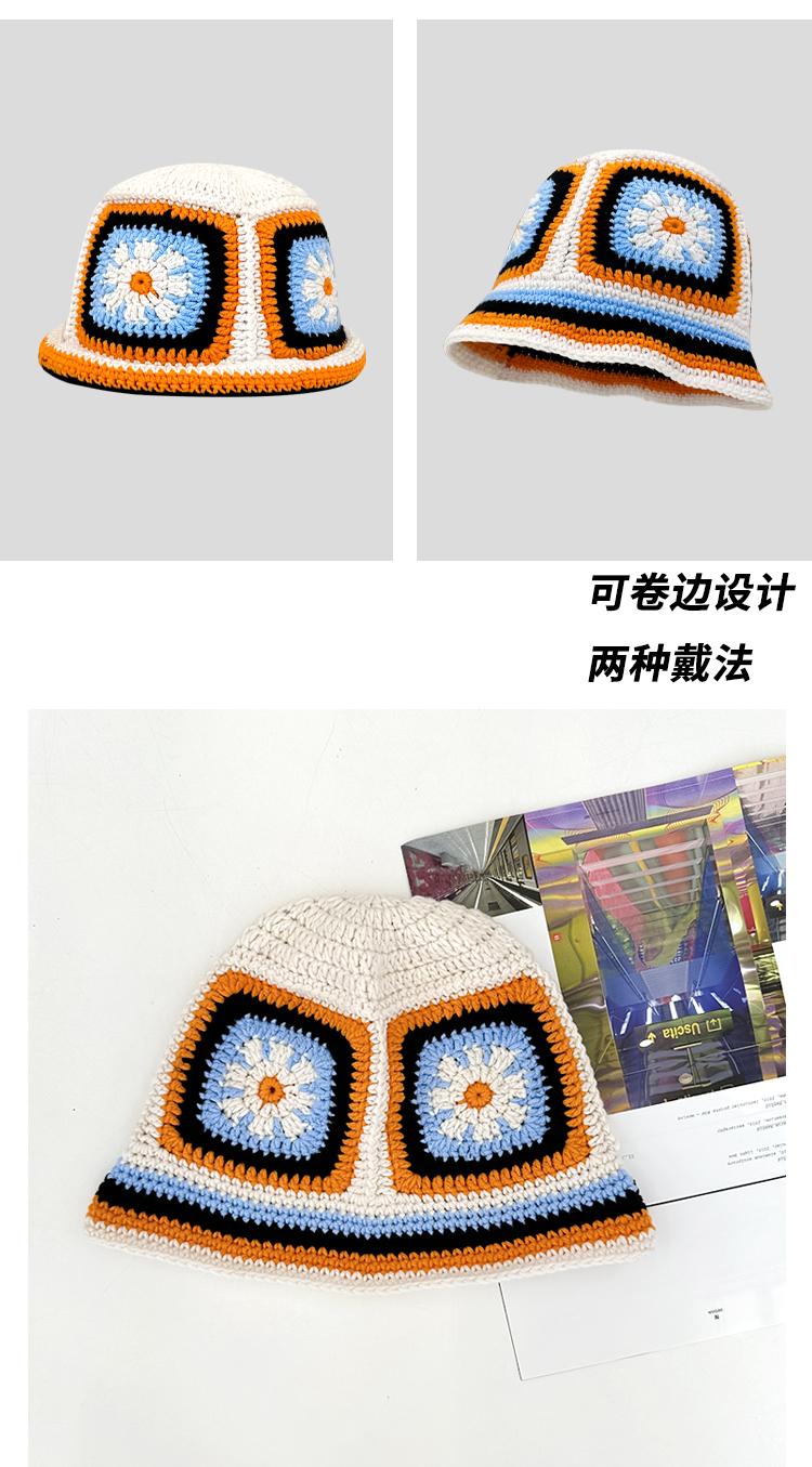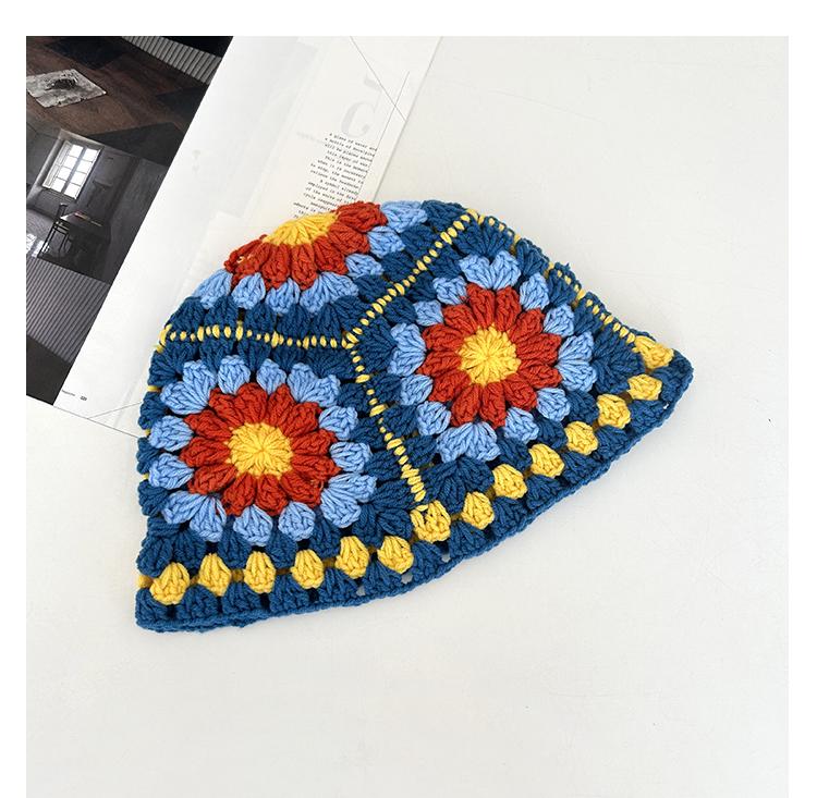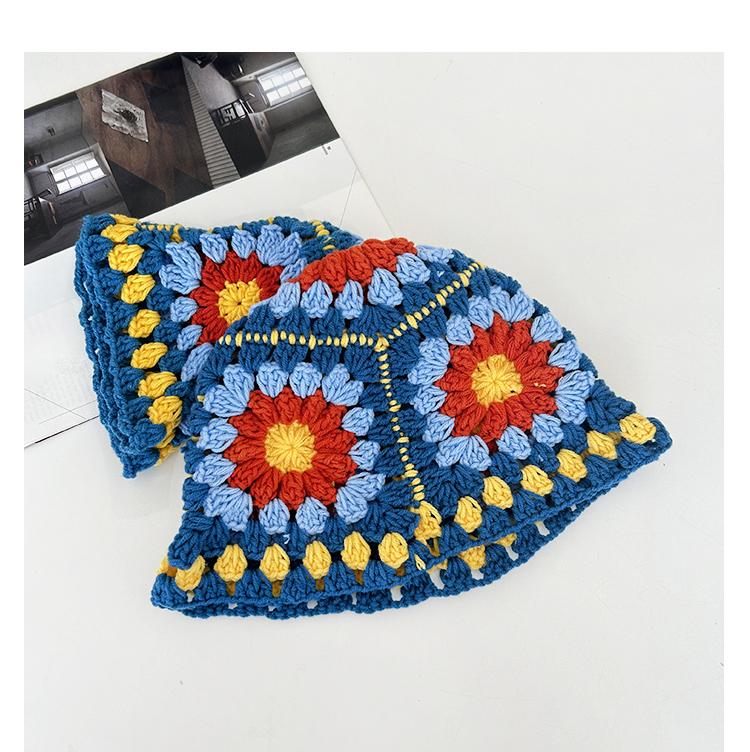 Contrast Plaid Flower Knitted Basin Hat-Deep Lake Blue