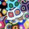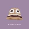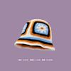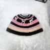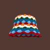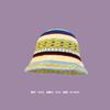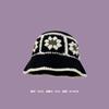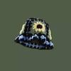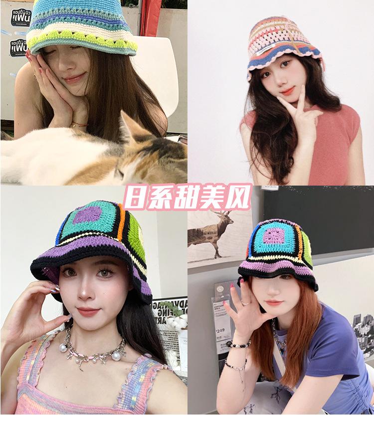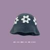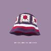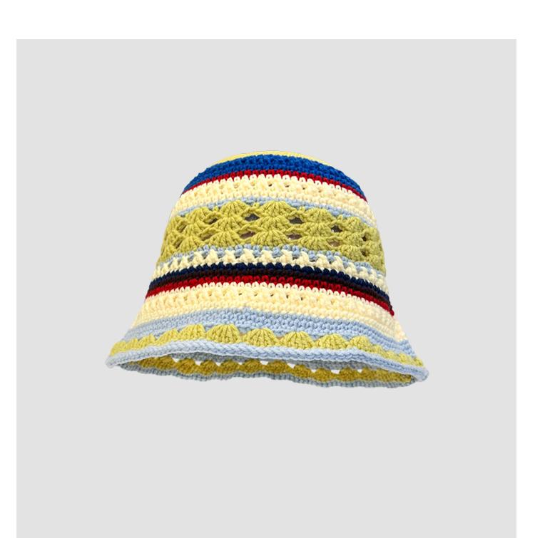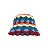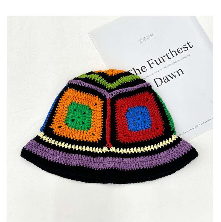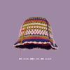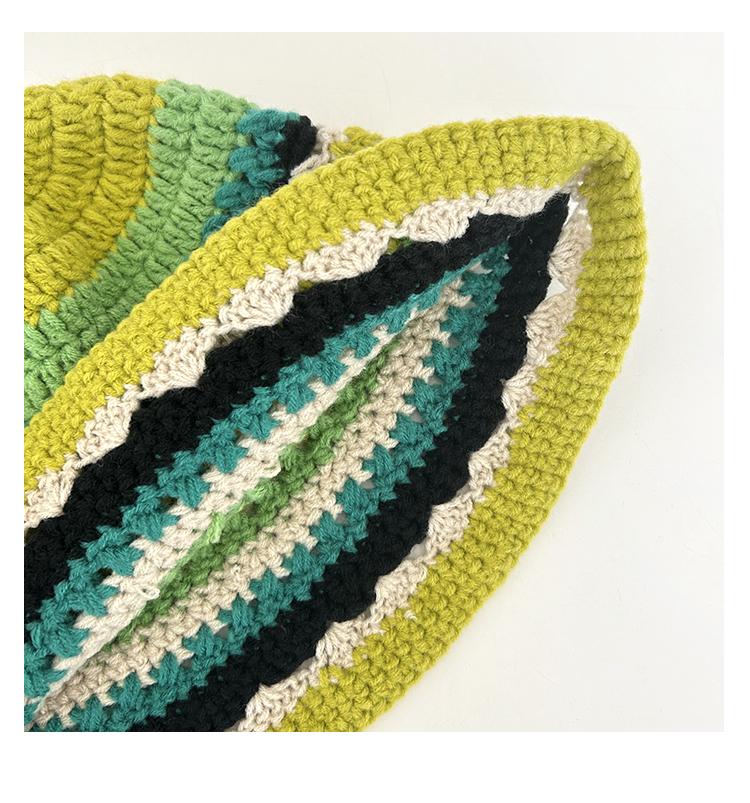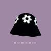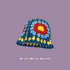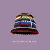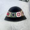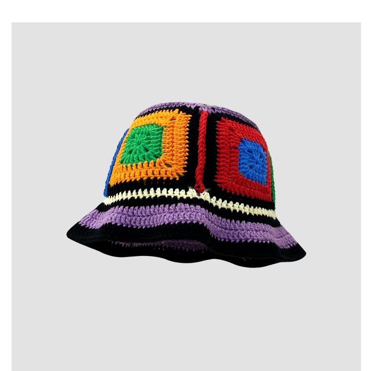 Contrast Plaid Flower Knitted Basin Hat-Deep Lake Blue