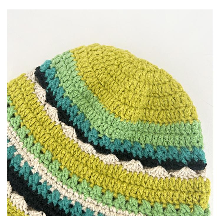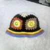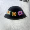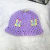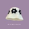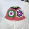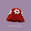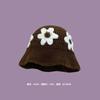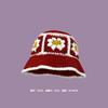 Sombrero de Cubo Tejido a Mano con Flor Hueca Vintage Japonés para Mujer Otoño e Invierno Dulce Combinable Sombrero de Lana para la Cara