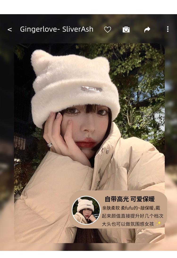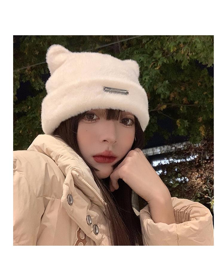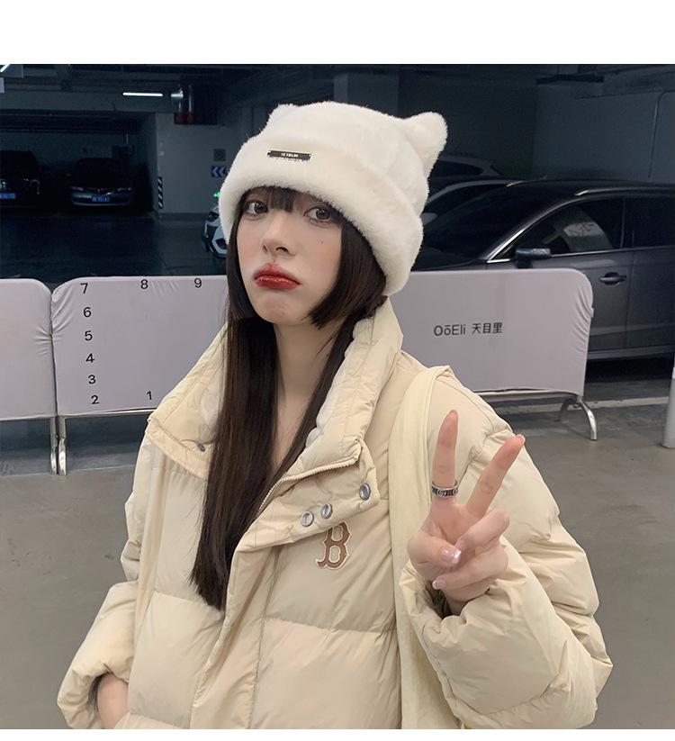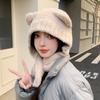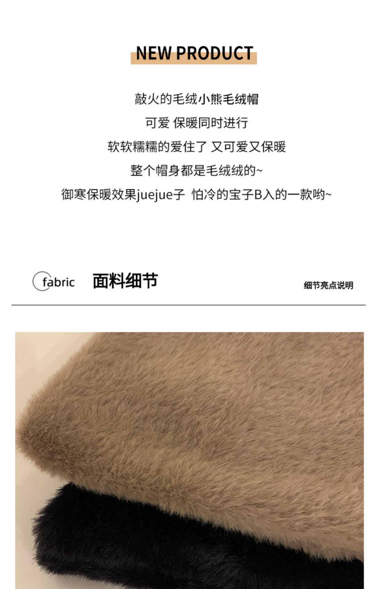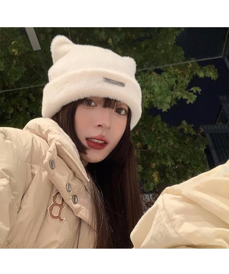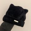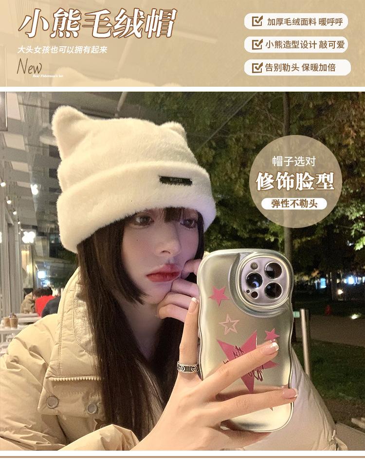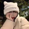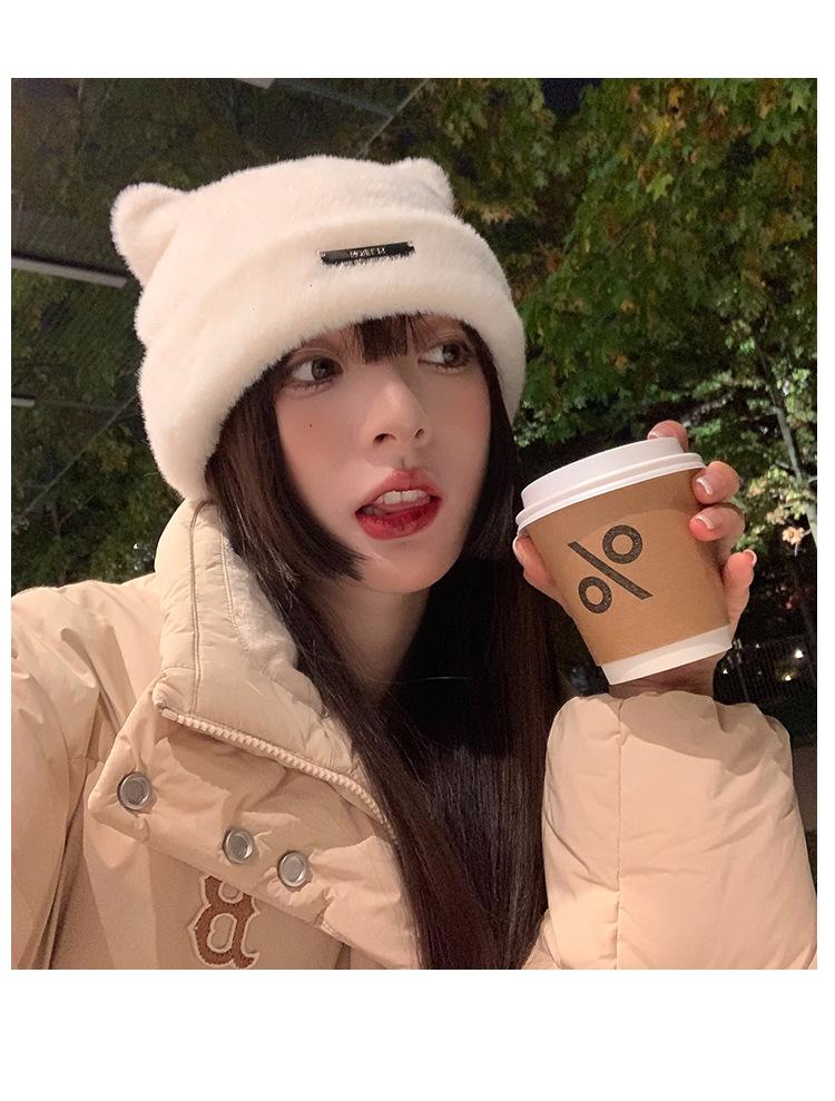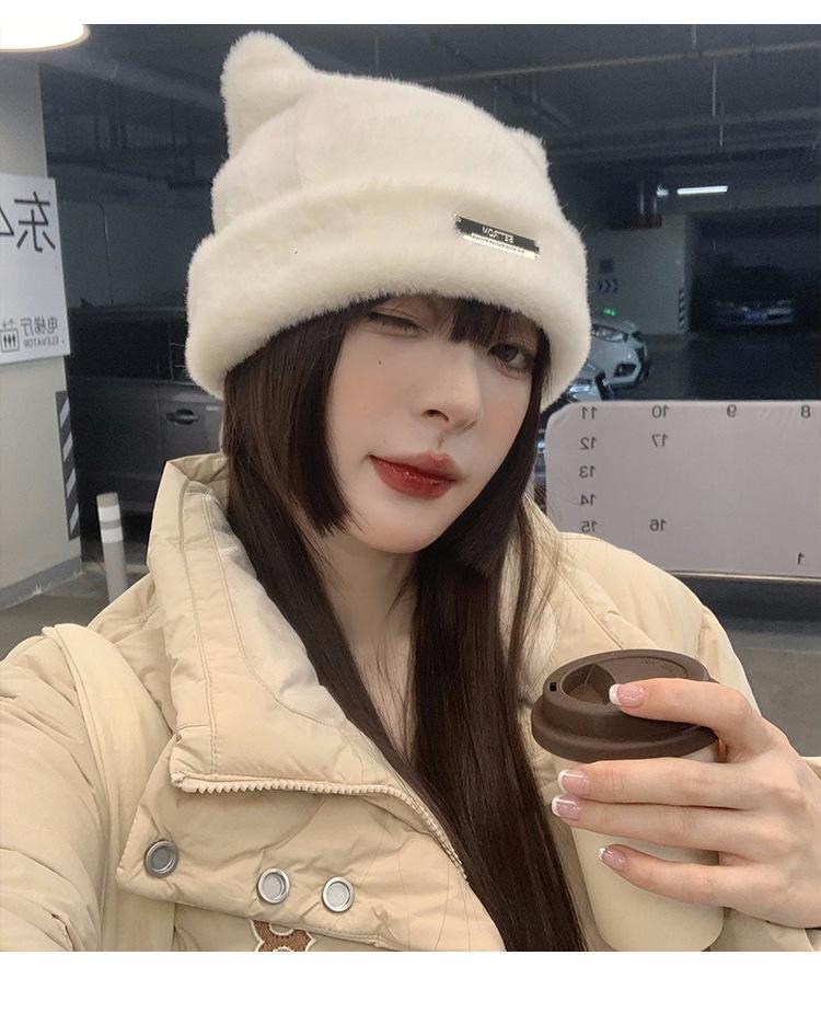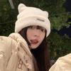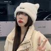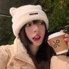 Lindo gorro de lana con orejas de oso para mujer, invierno, grueso, tipo visón, para el frío, moda, combinable con todo, protección para las orejas, gorro con pompón