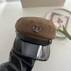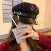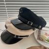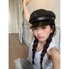 Gorra octogonal de marinero estilo japonés retro de cuero sintético estilo punk azul marino para niños, boina de pintor retro estilo americano pequeña
