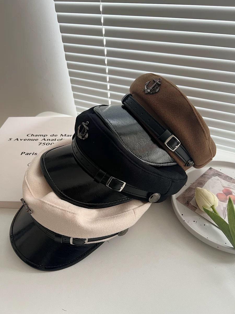 Anchor navy hat wool-black, Anchor navy hat woolen-beige, Anchor navy hat wool-coffee, Anchor beret wool-black