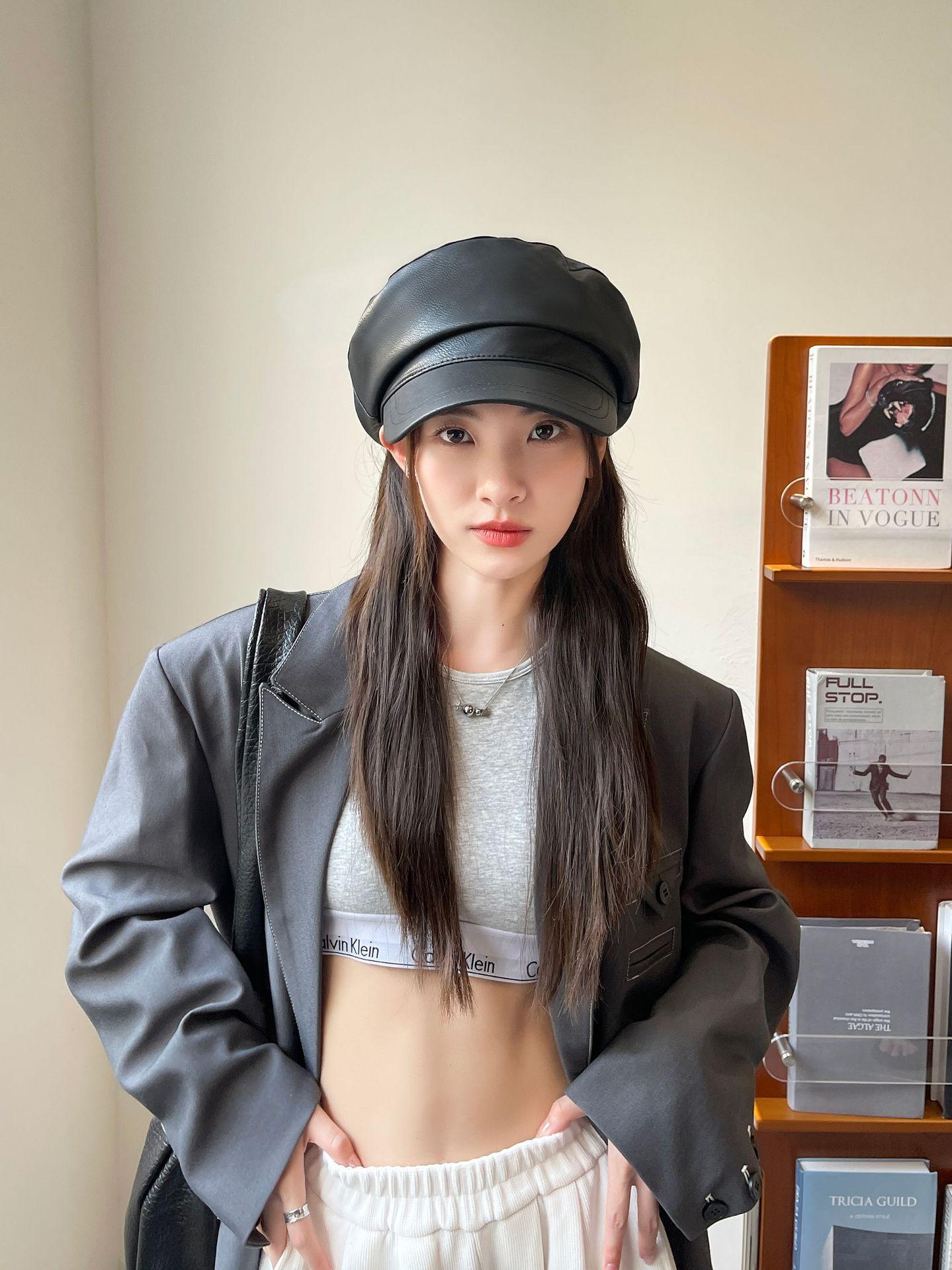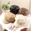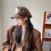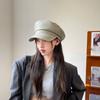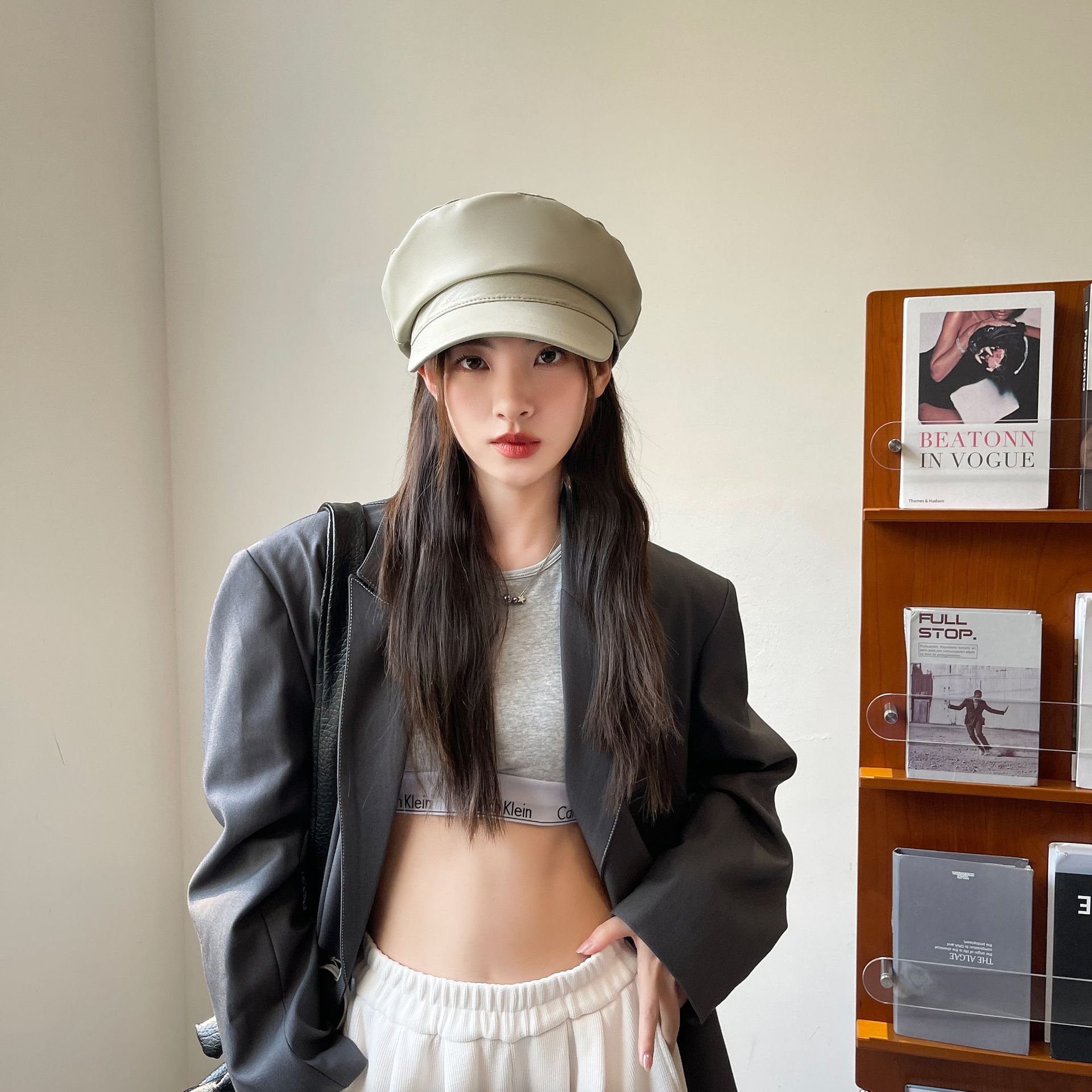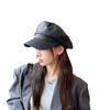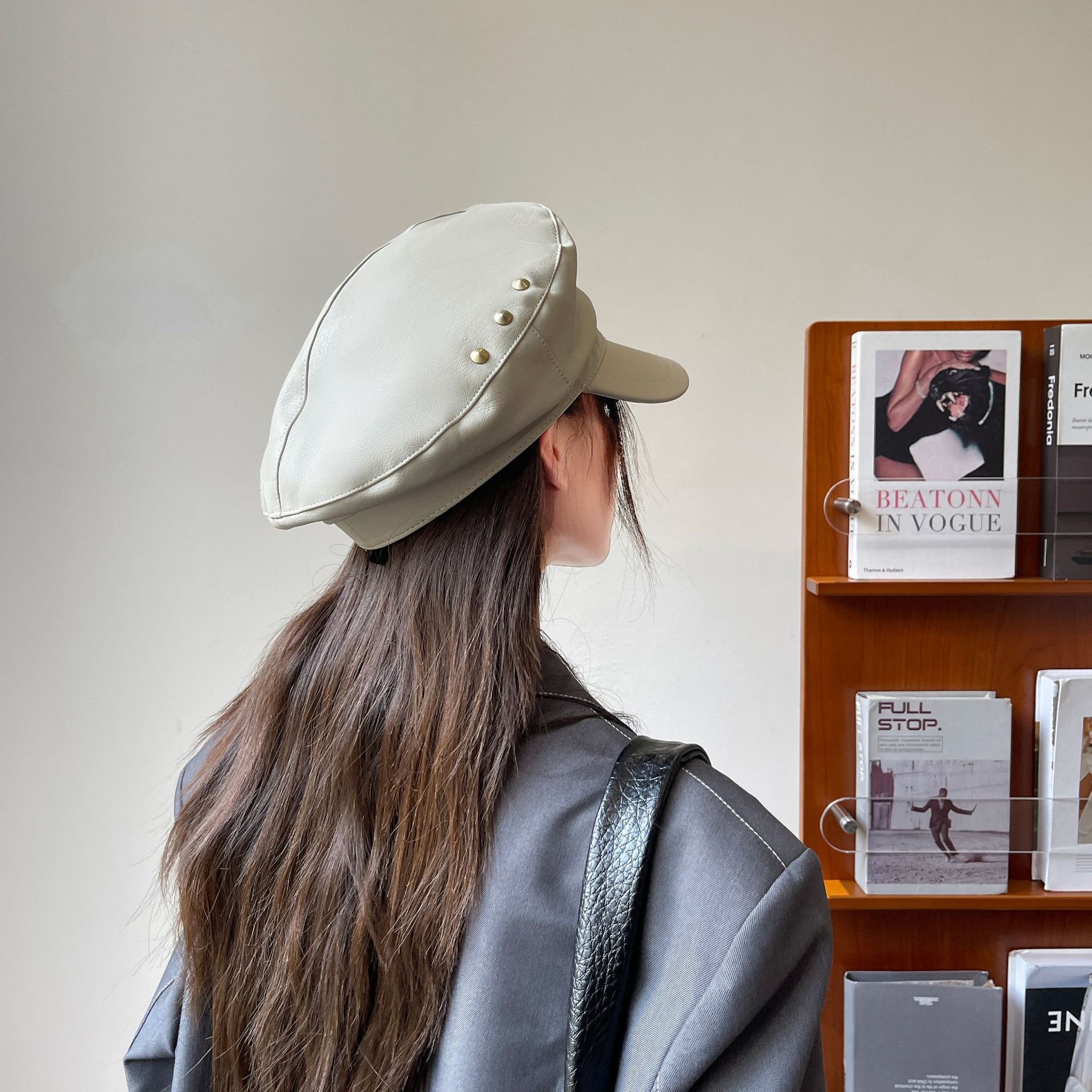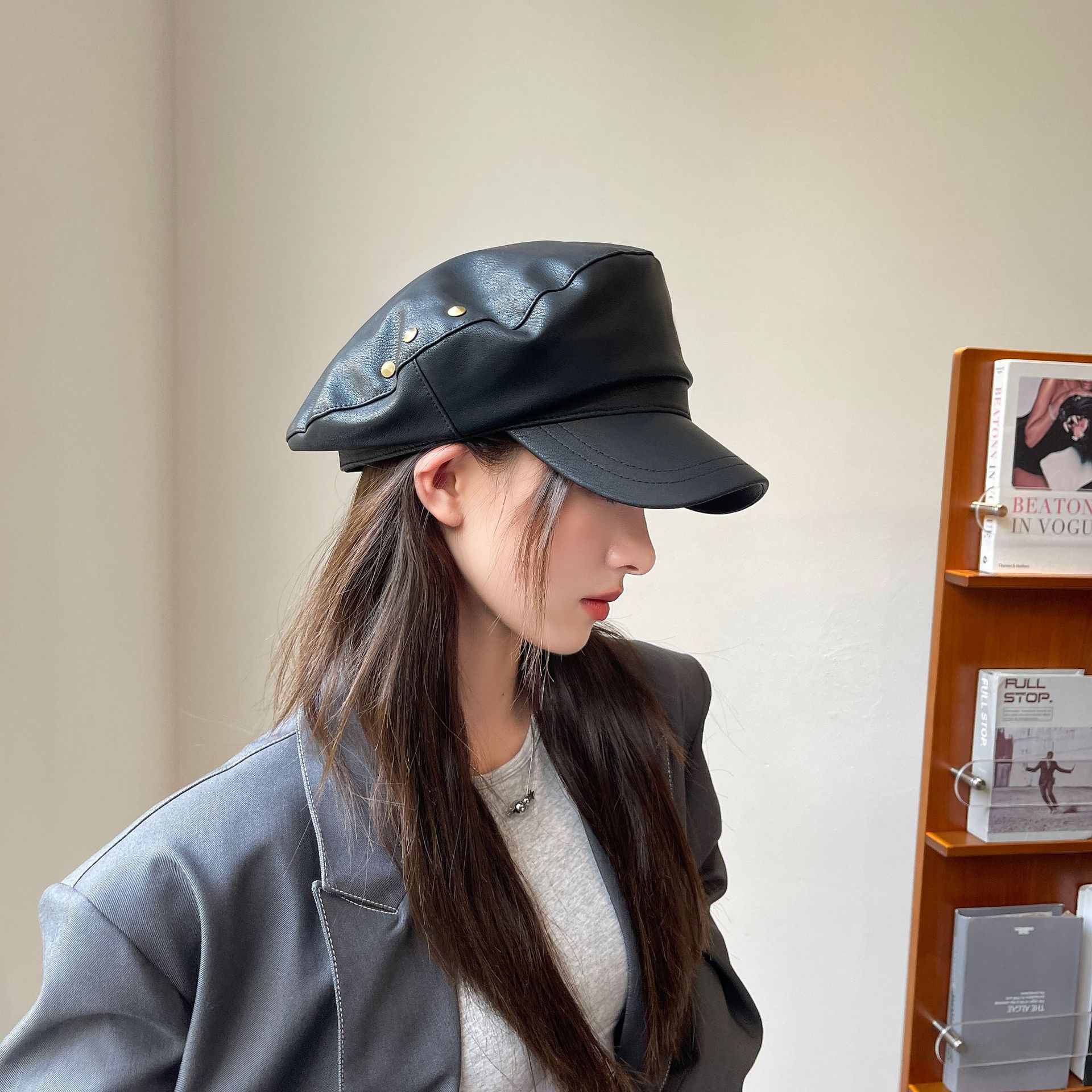 Boina de cuero sintético retro de otoño e invierno para mujer, nueva gorra con estampado coreano, gorra frontal, gorra octogonal para todo tipo de combinaciones, gorra de cuero