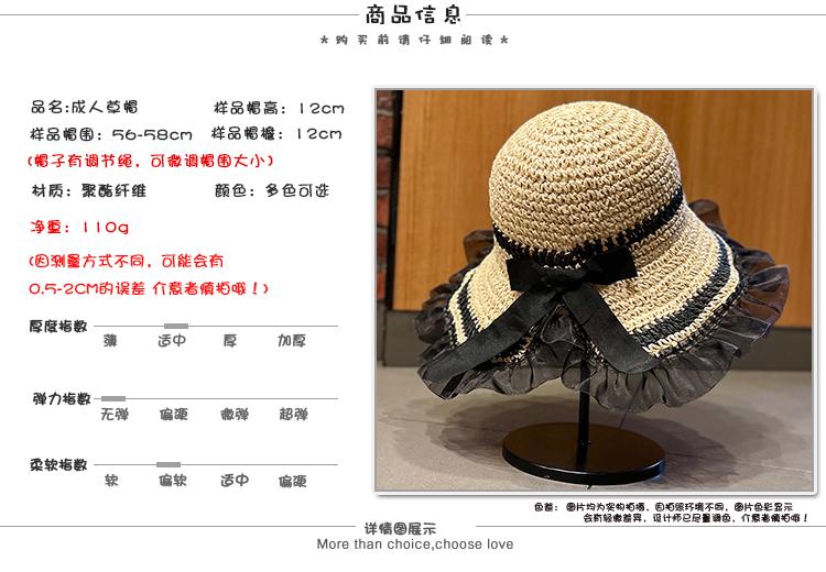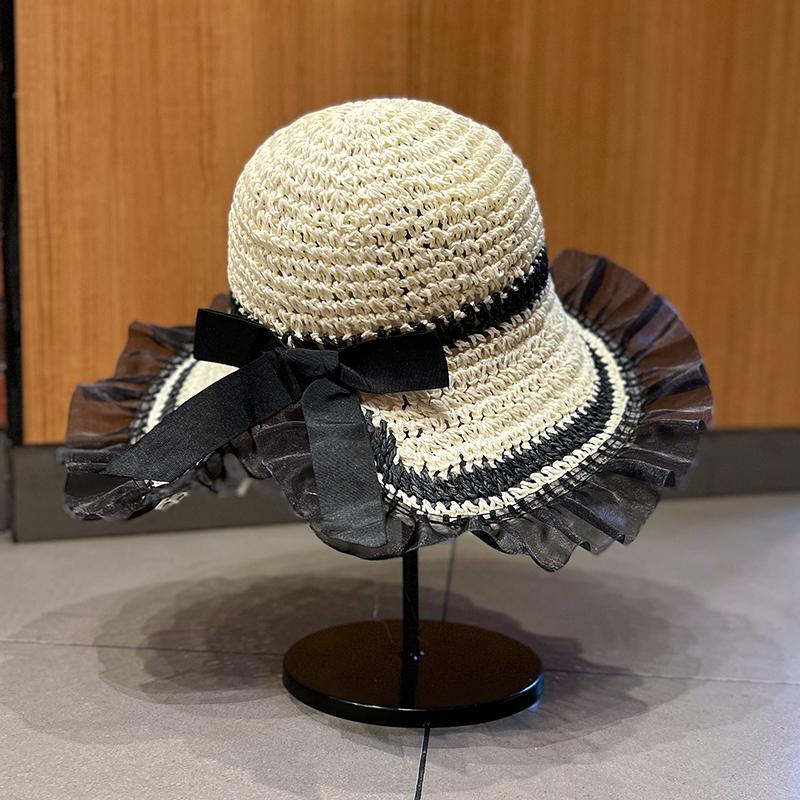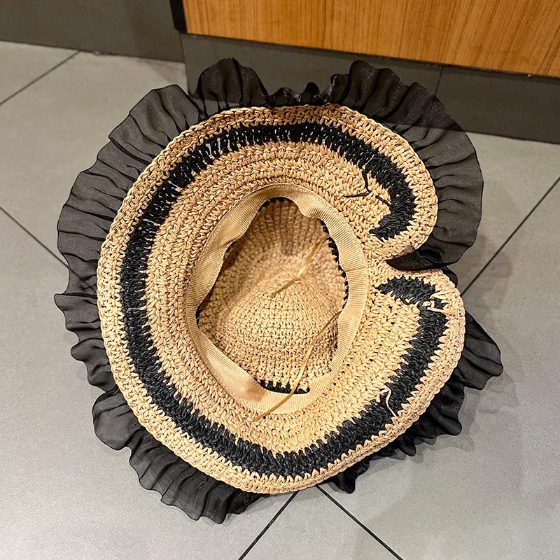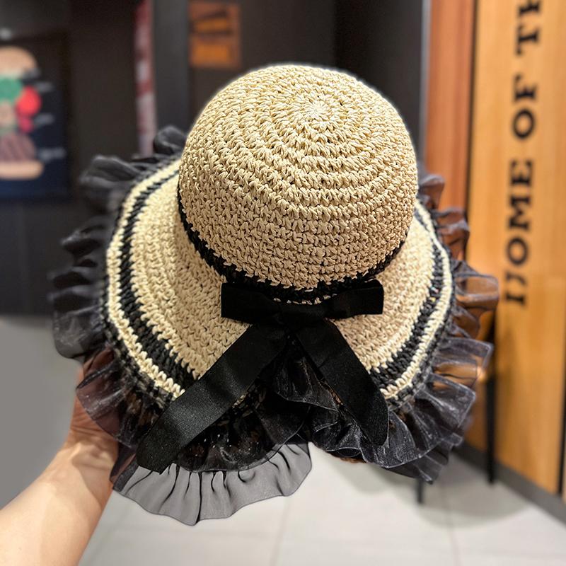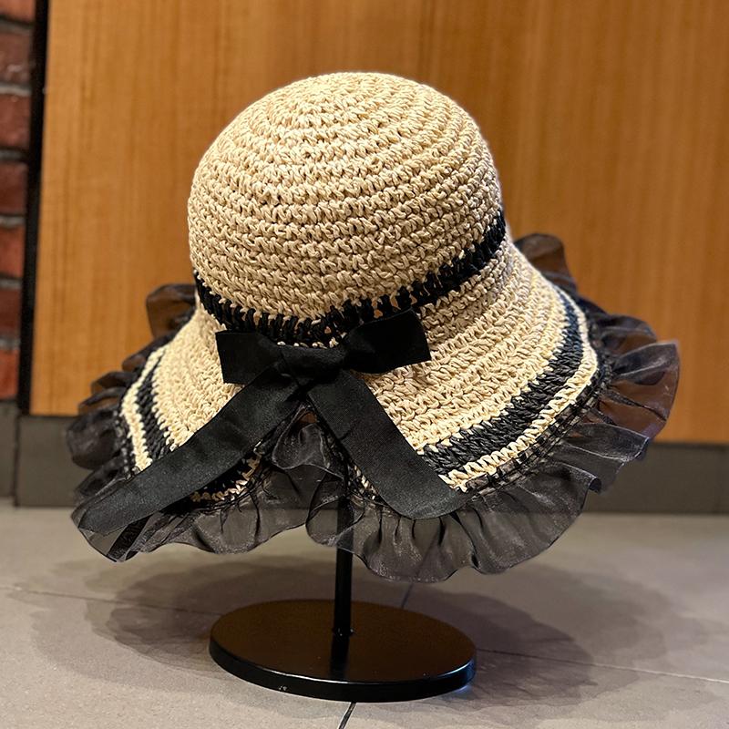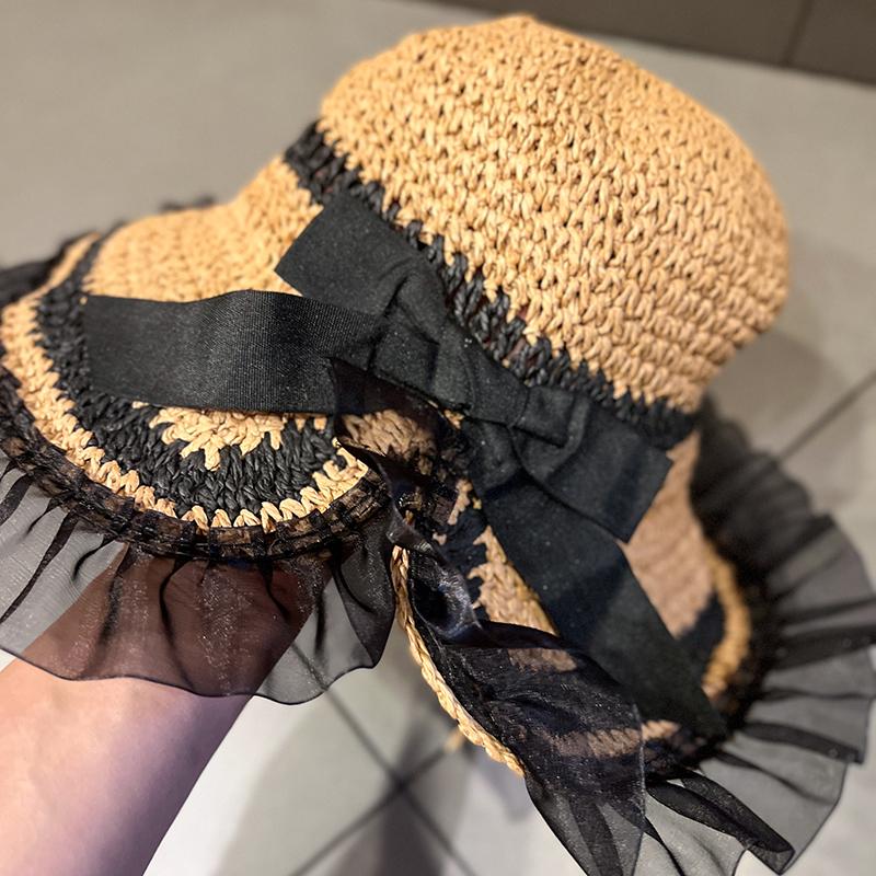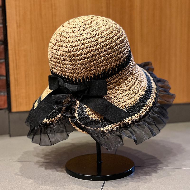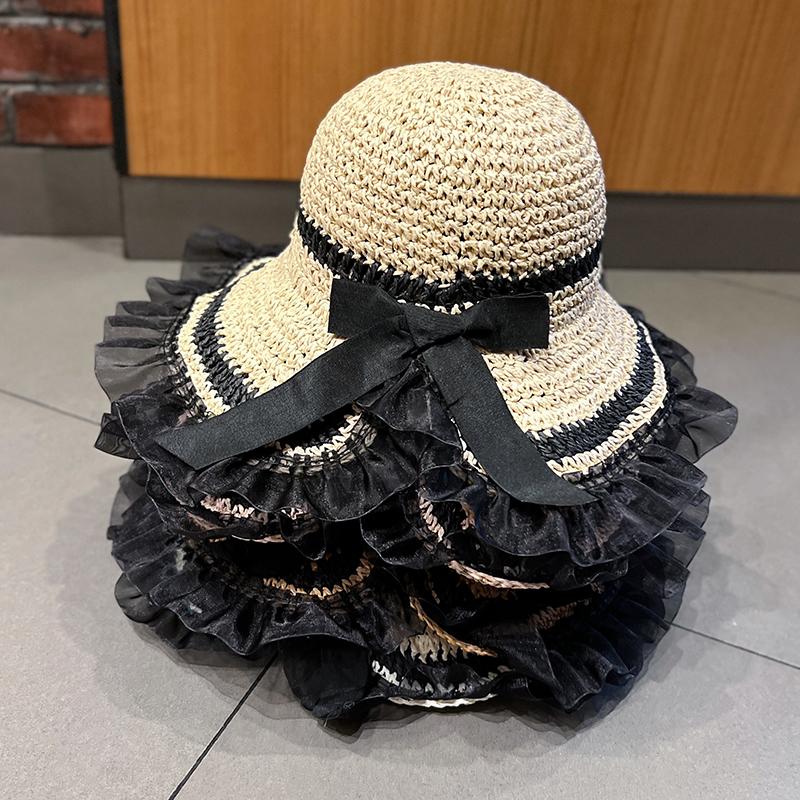White/Lace-edged Straw Hat, Beige/Lace Straw Hat, Khaki/Lace Straw Hat, Pink/Lace Straw Hat