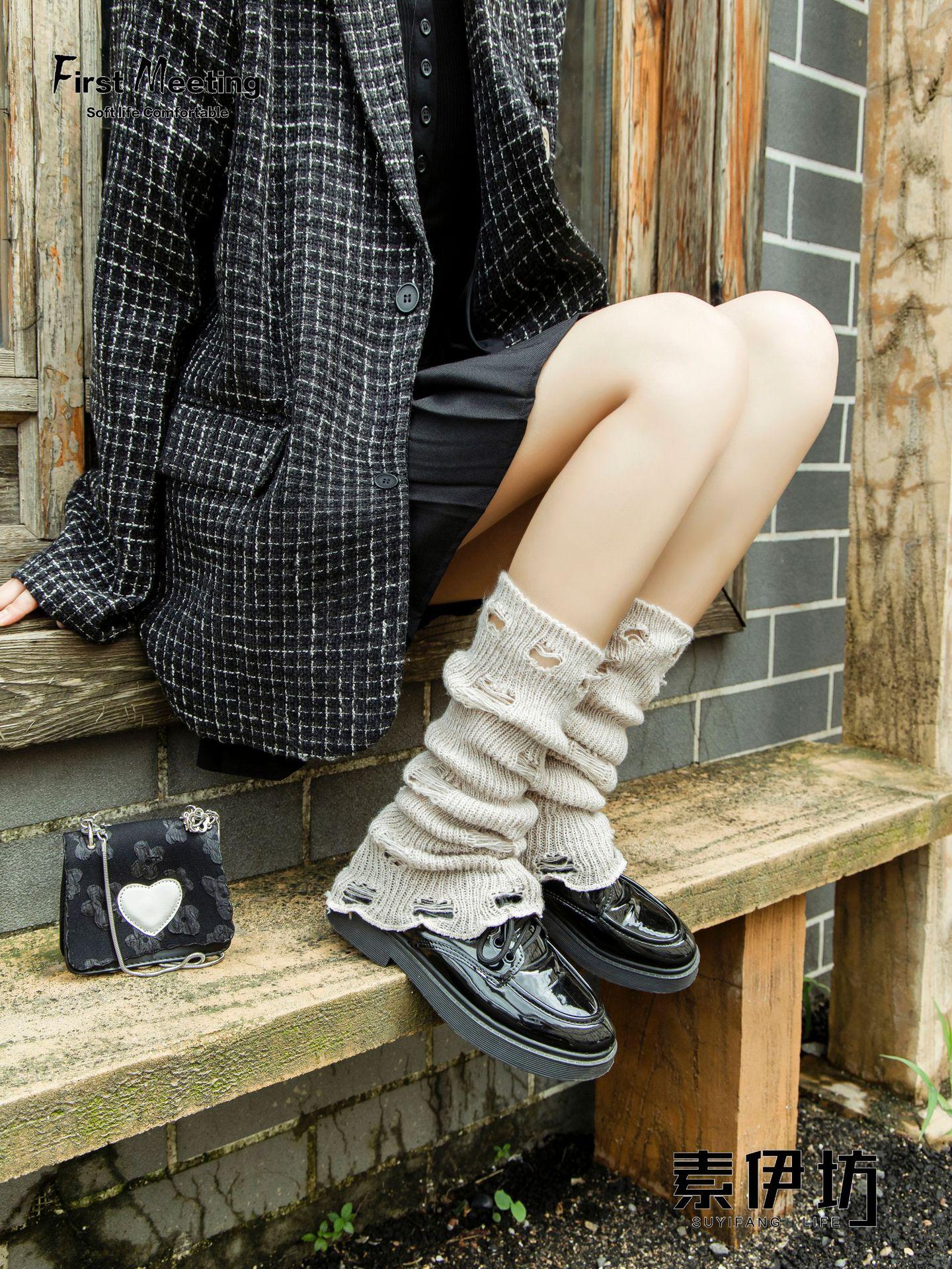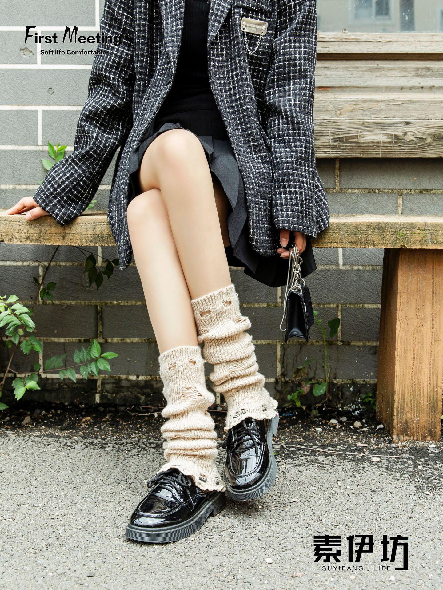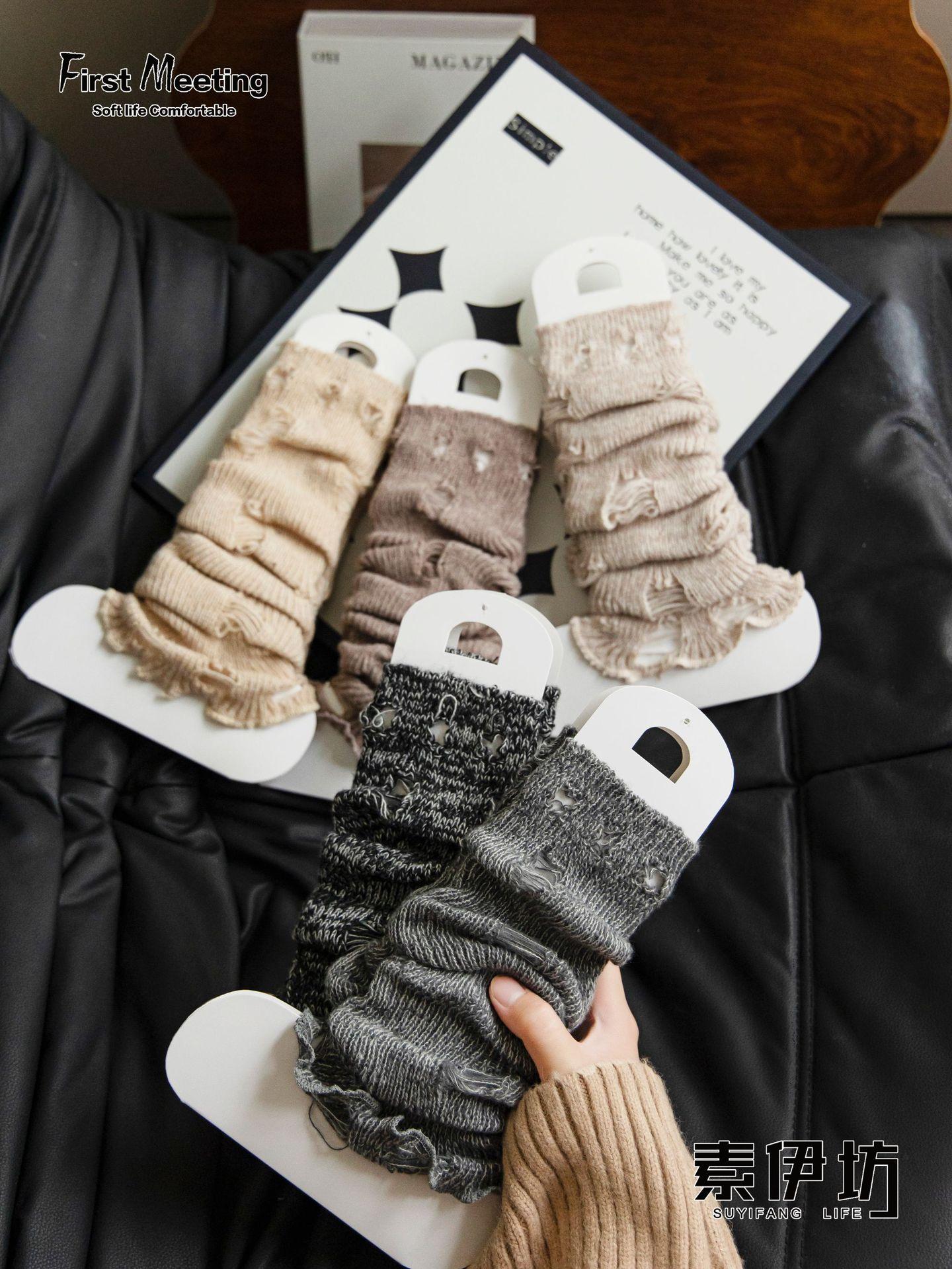 Cubrepiernas blanco de punto para mujer, calcetines cálidos de otoño e invierno para niñas, botas de nieve, calcetines apilados, calcetines de pantorrilla de invierno