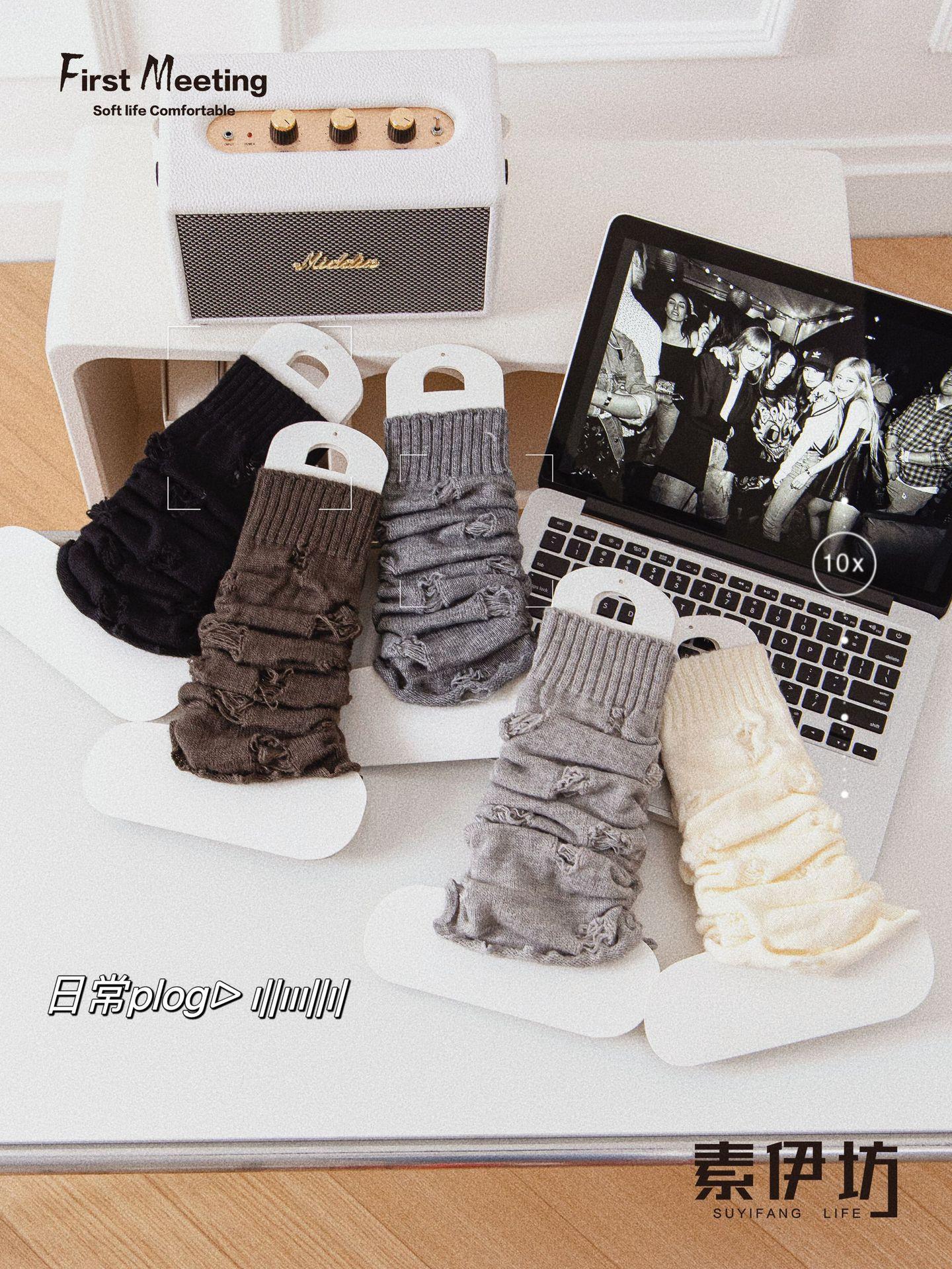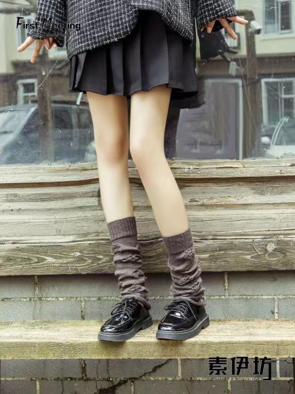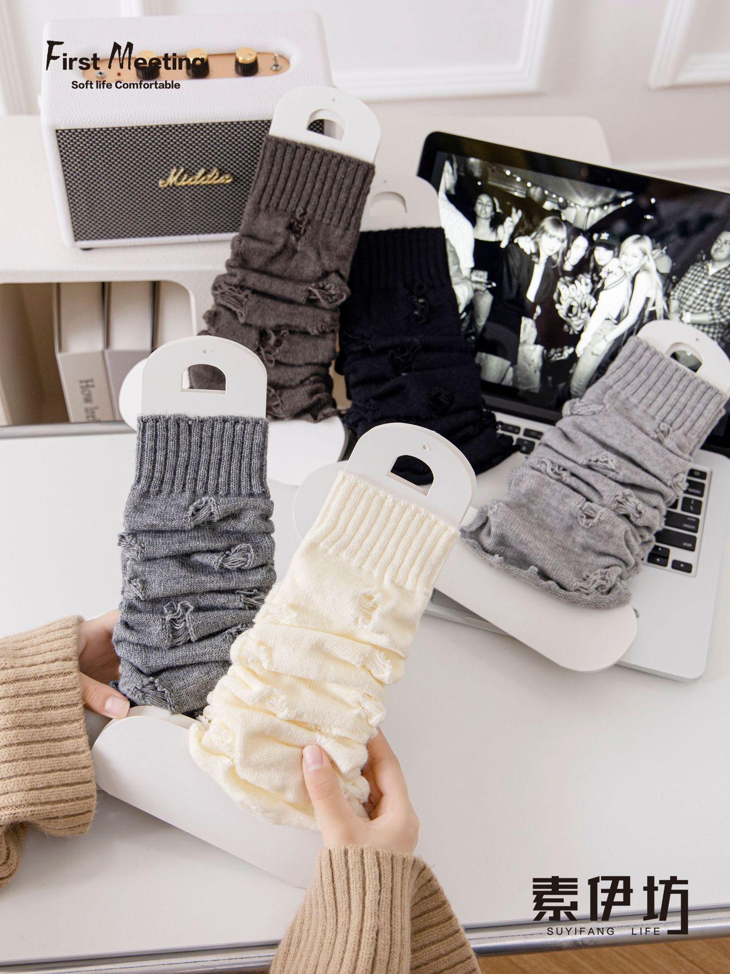 Cubrepiernas blanco de punto para mujer, calcetines cálidos de otoño e invierno para niñas, botas de nieve, calcetines apilados, calcetines de pantorrilla de invierno