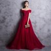 Off-shoulder wine red