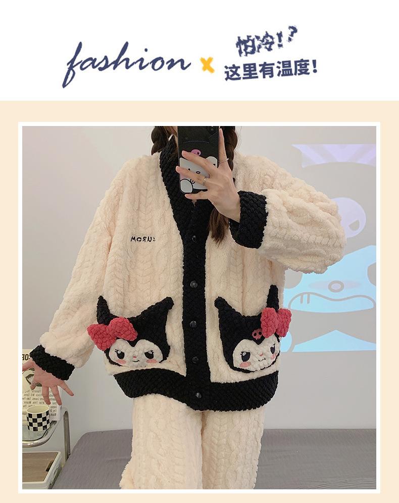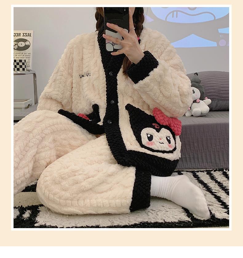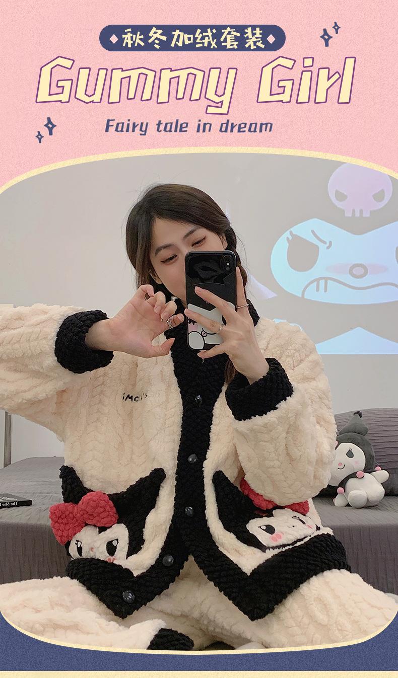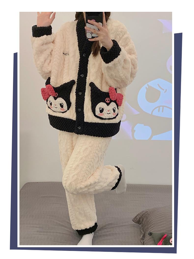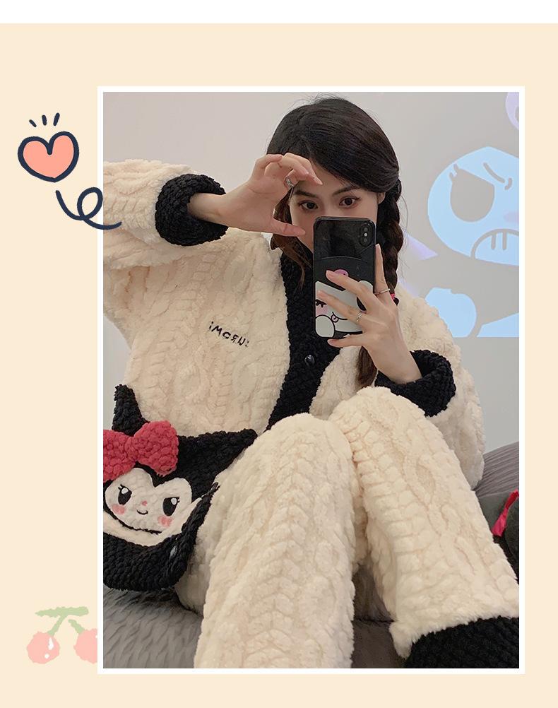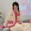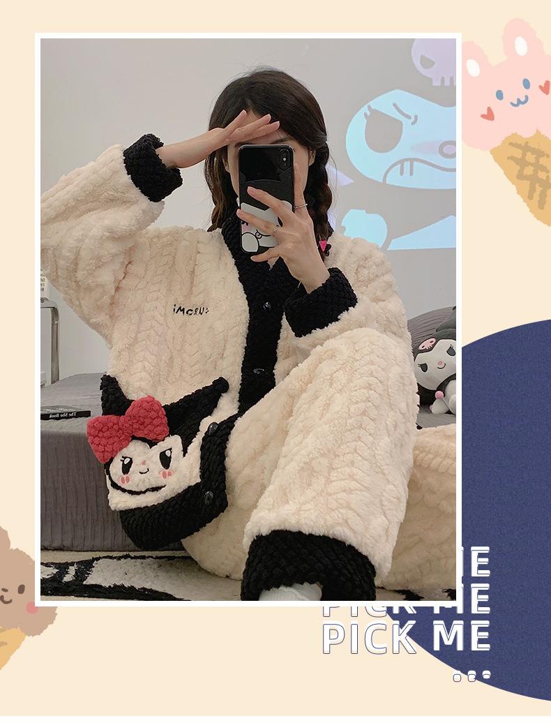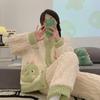 Pijamas de Forro Polar de Coral de Estilo Japonés para Mujer Invierno Manga Larga Forrado Grueso Cálido Franela Talla Grande Otoño e Invierno Ropa para el Hogar
