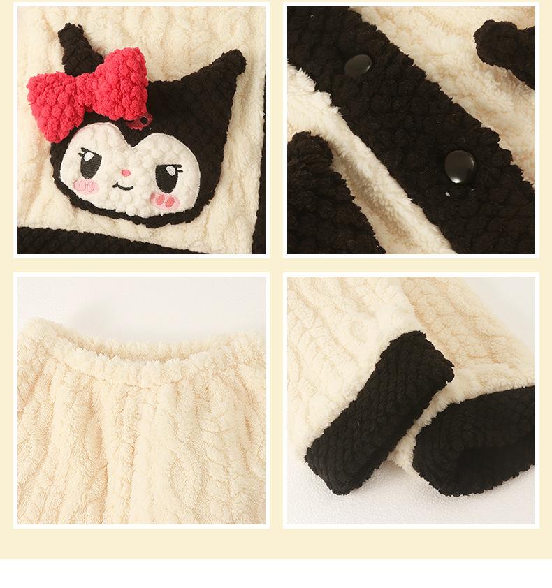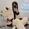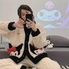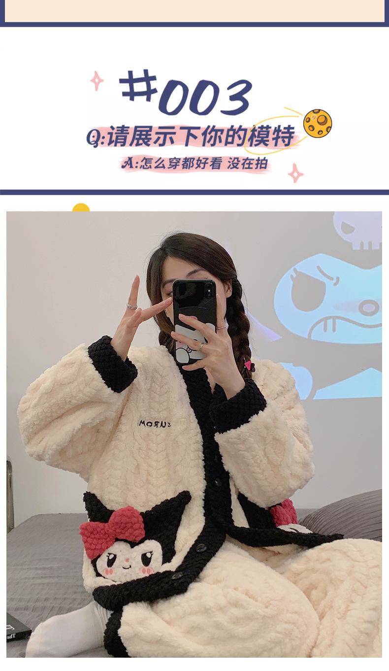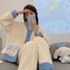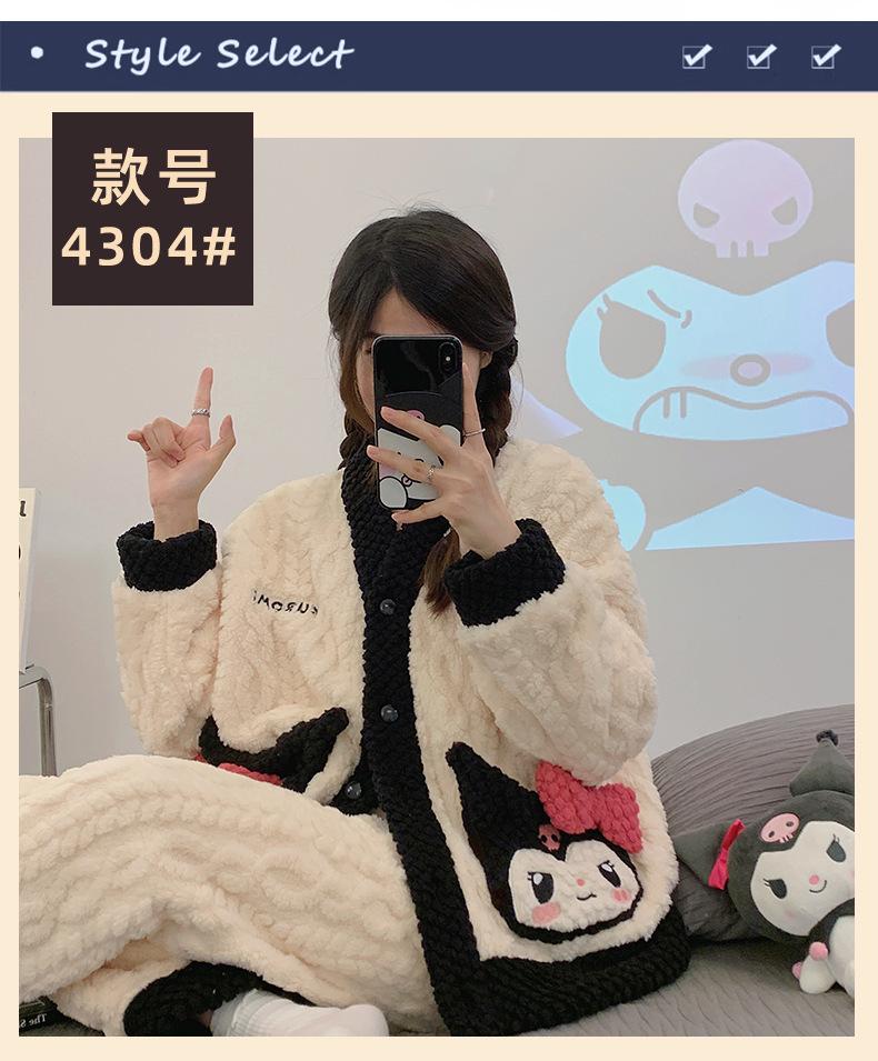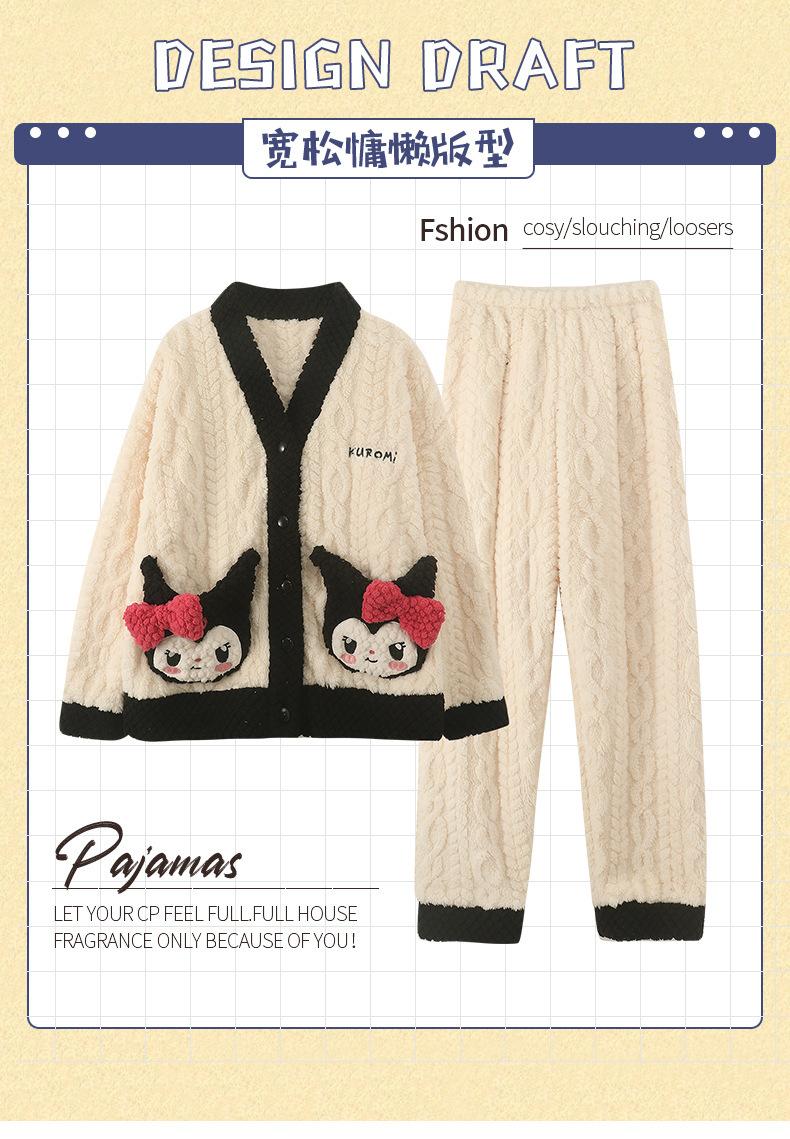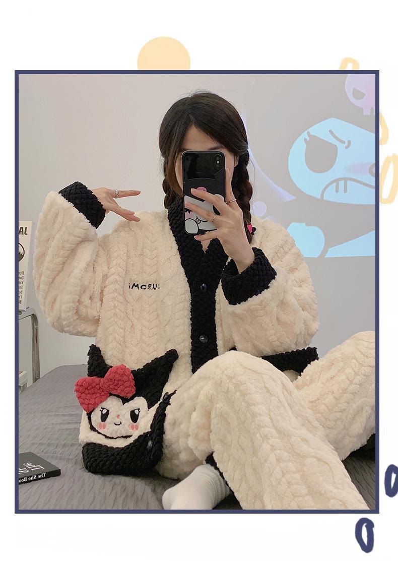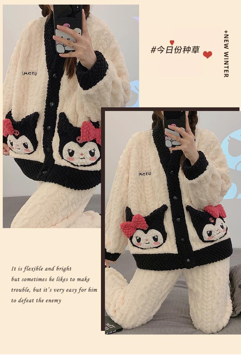 Pijamas de Forro Polar de Coral de Estilo Japonés para Mujer Invierno Manga Larga Forrado Grueso Cálido Franela Talla Grande Otoño e Invierno Ropa para el Hogar