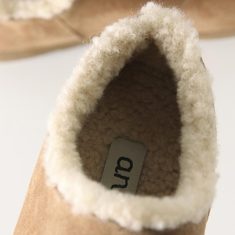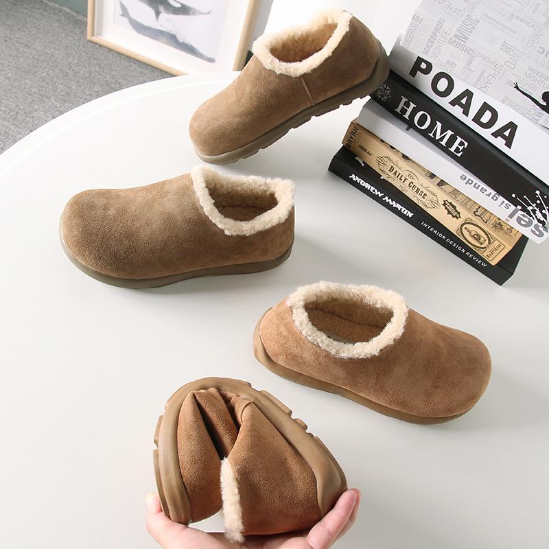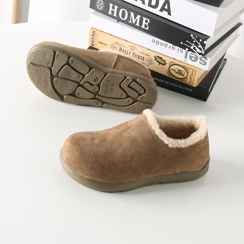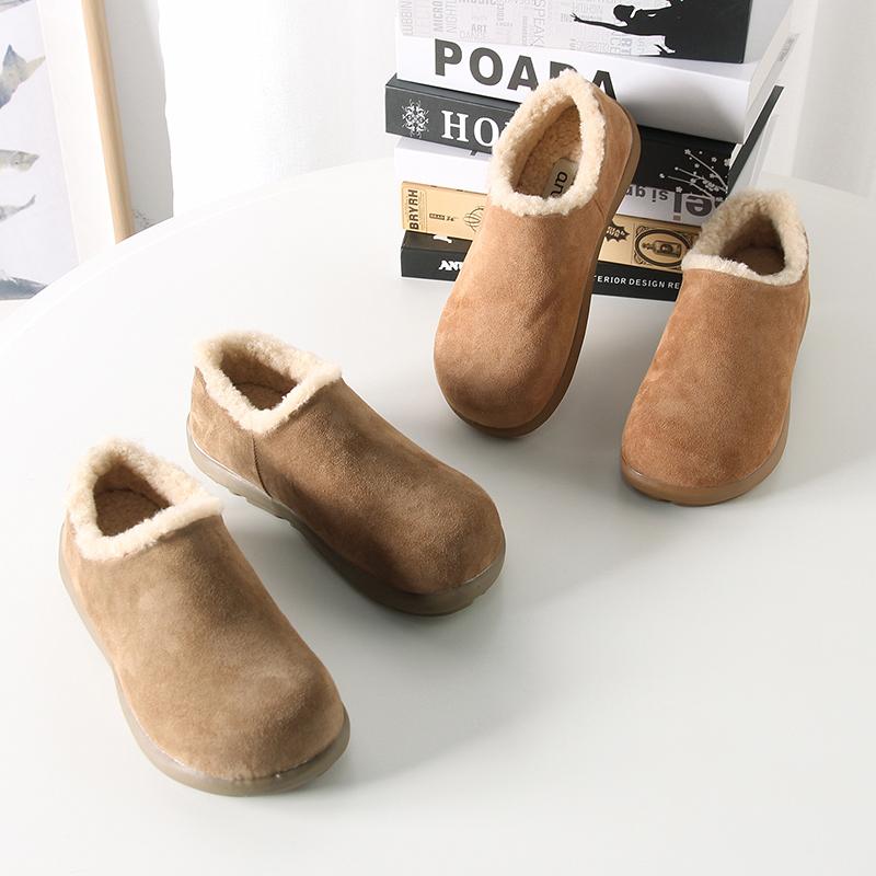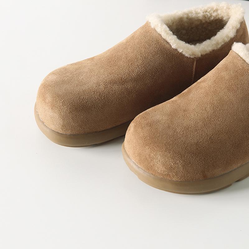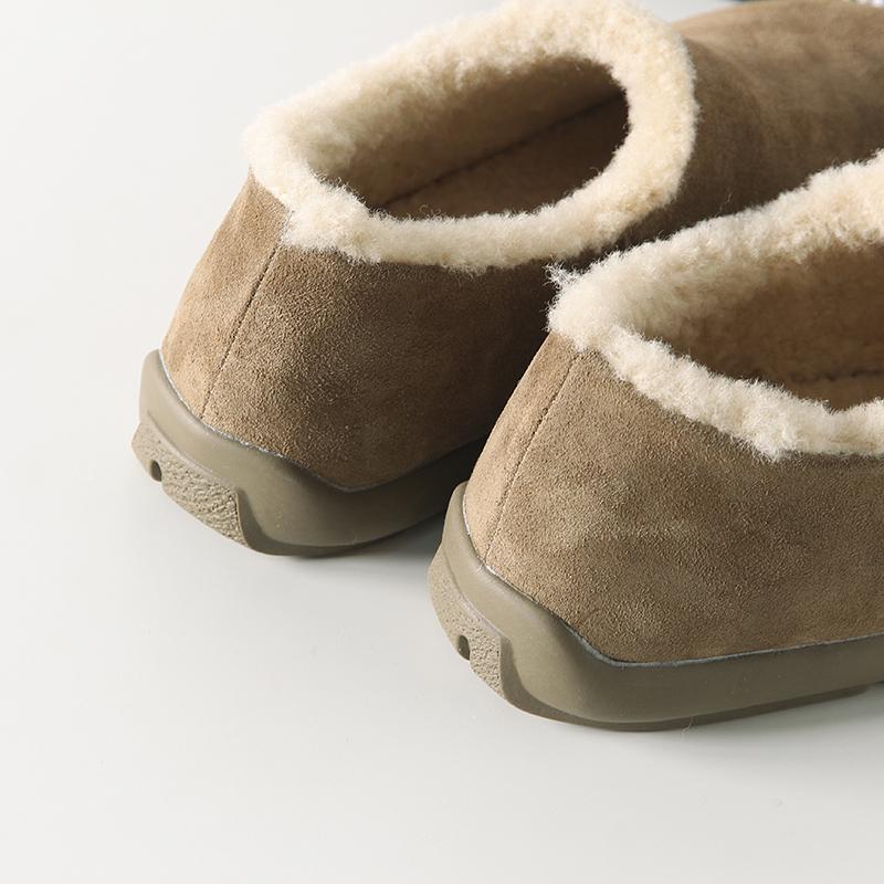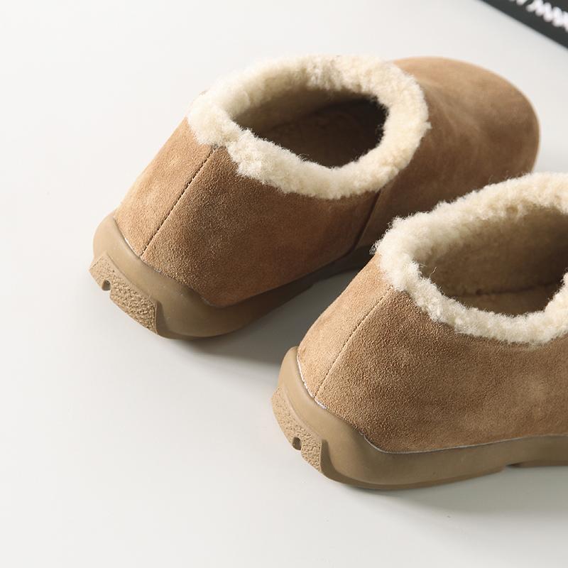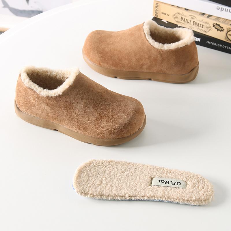 Fuera de K sencillo ~ otoño e invierno 2024 esmerilado zapatos Burken forrado de vellón cálido suela plana un pedal zapatos de algodón mujer