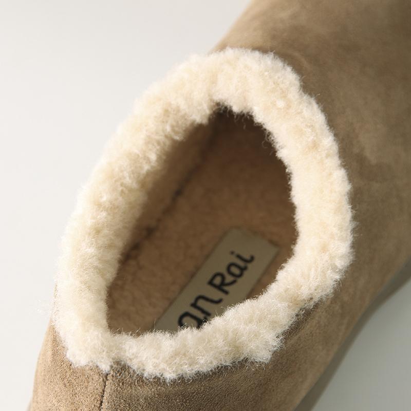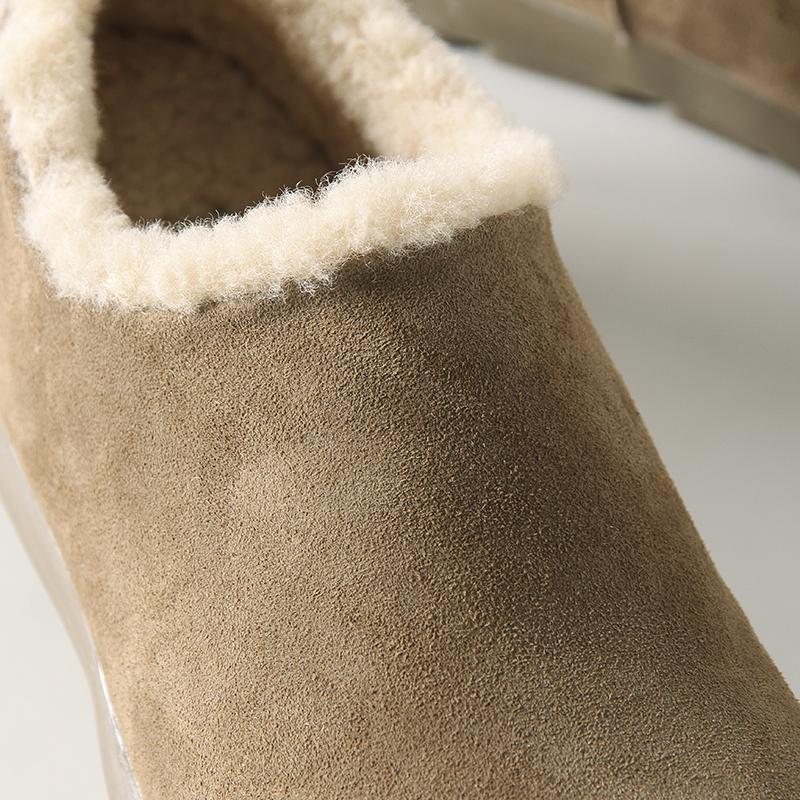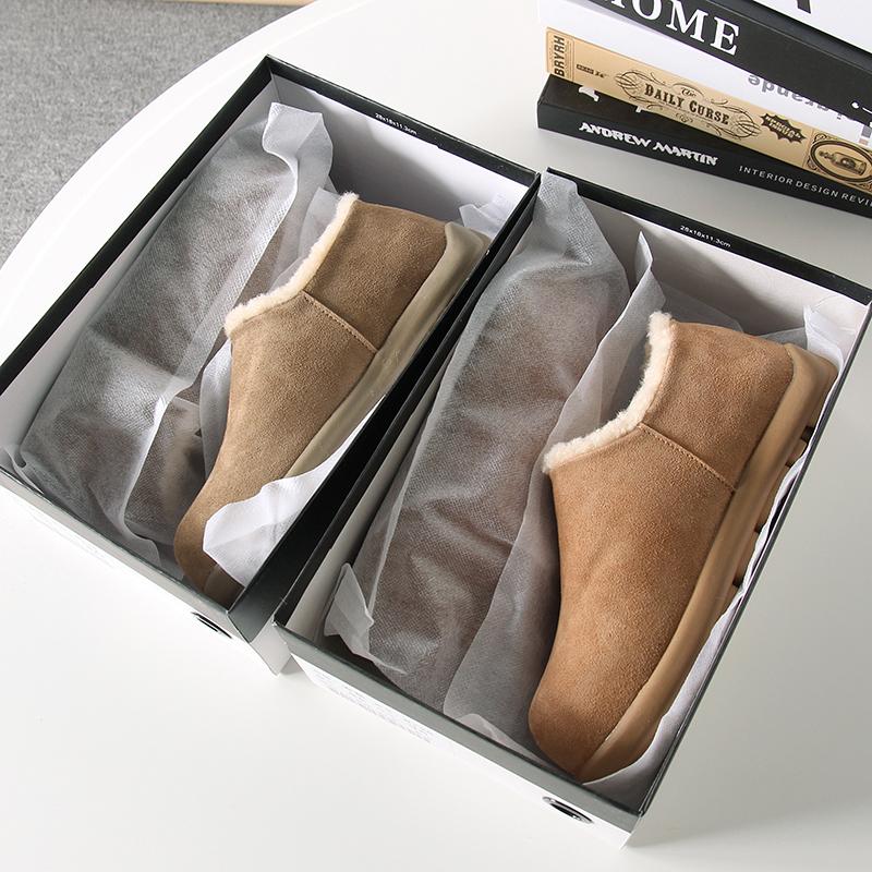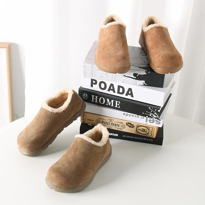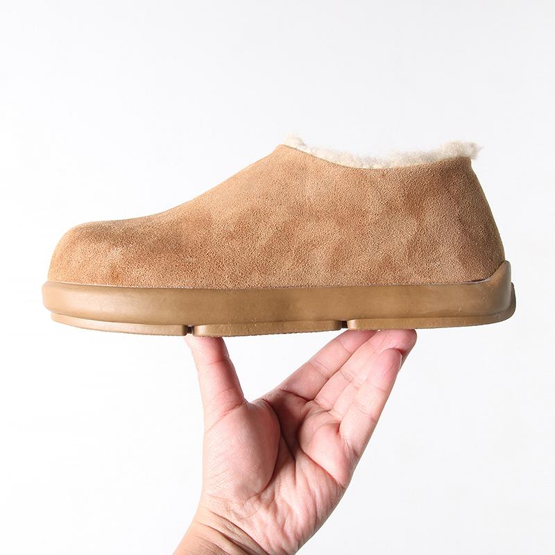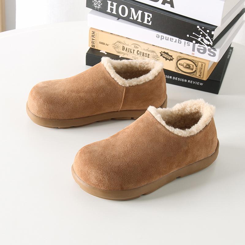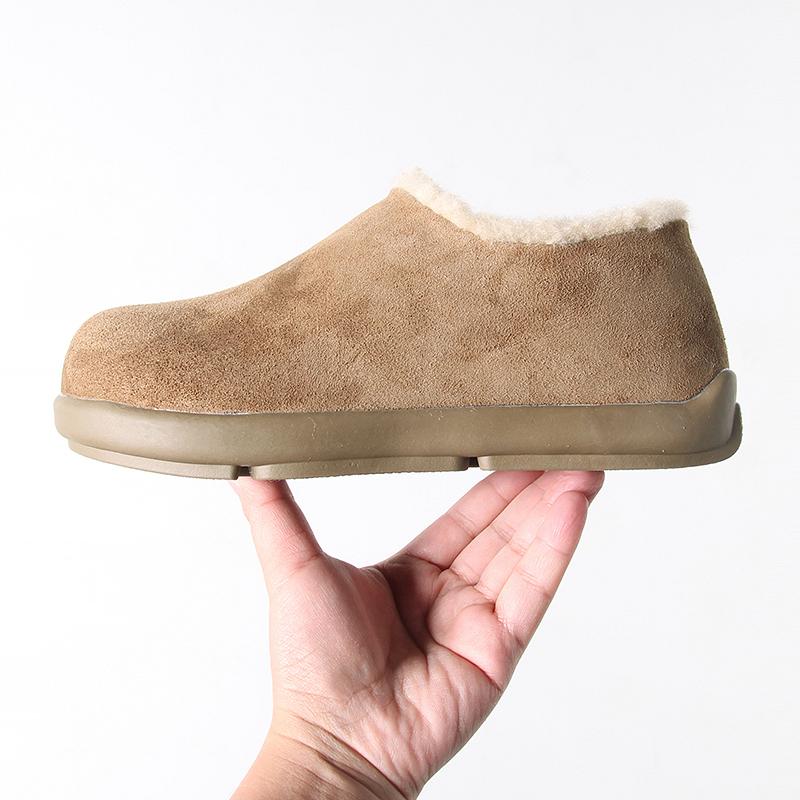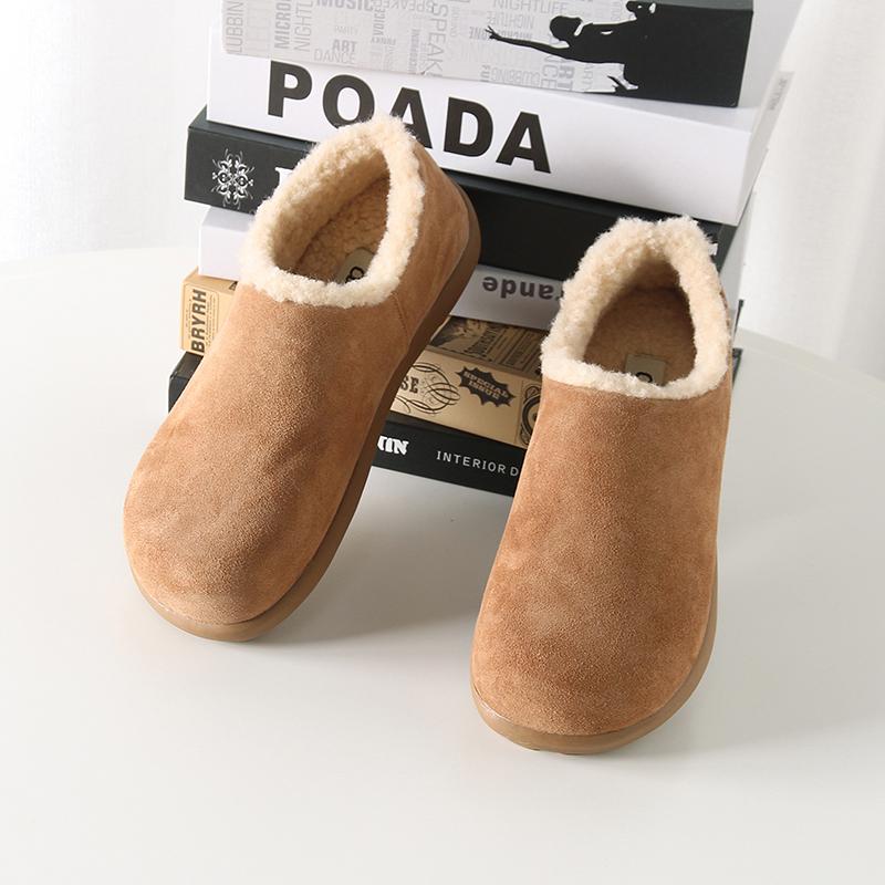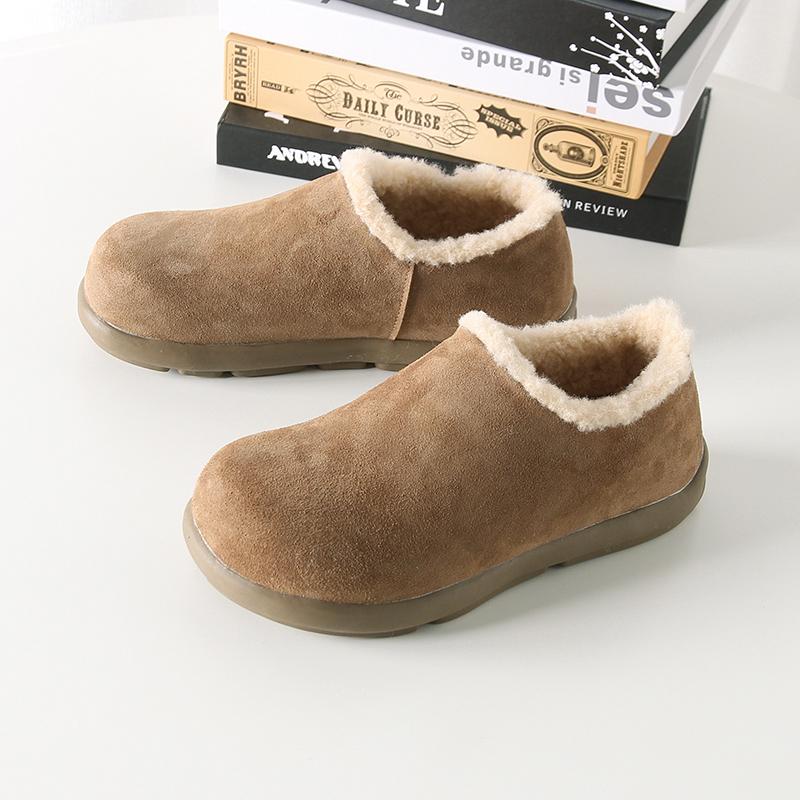 Fuera de K sencillo ~ otoño e invierno 2024 esmerilado zapatos Burken forrado de vellón cálido suela plana un pedal zapatos de algodón mujer