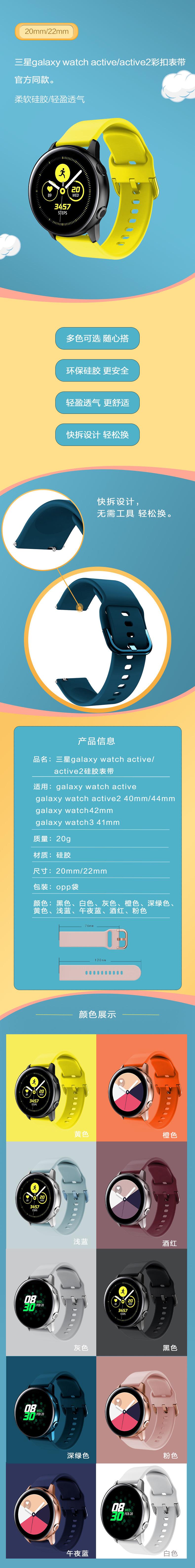 Adecuado para Samsung Galaxy Watch Active/Active2 Correa de Silicona con Hebilla de Color Correa de 20/22mm