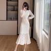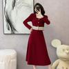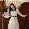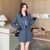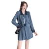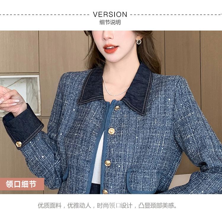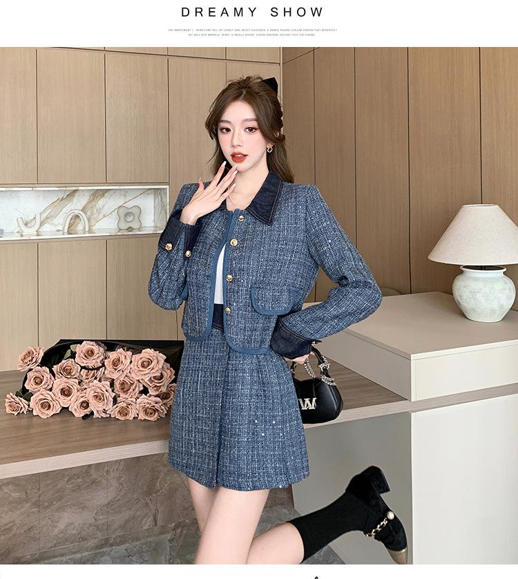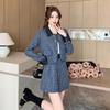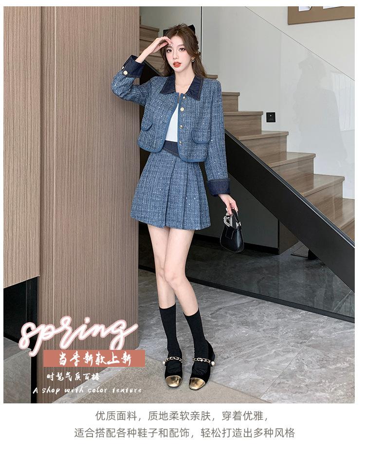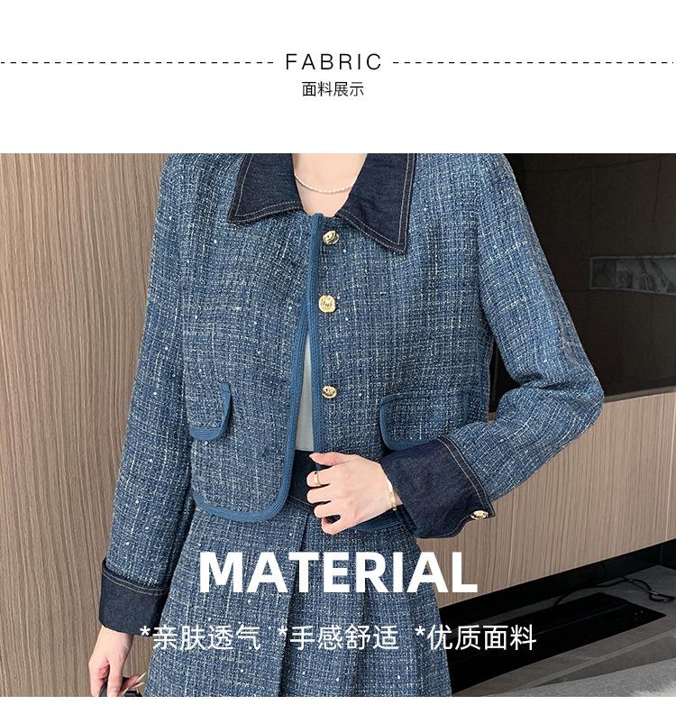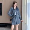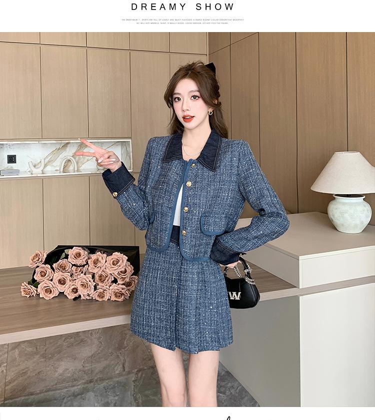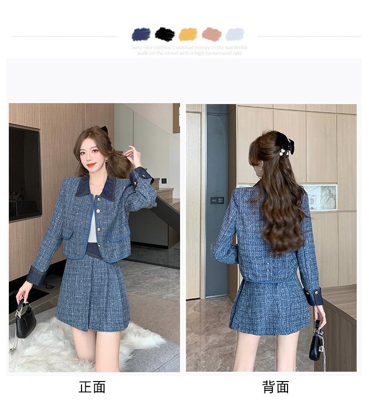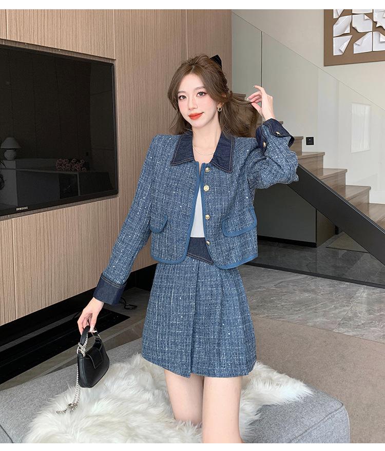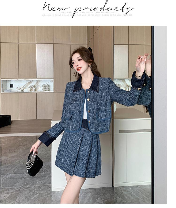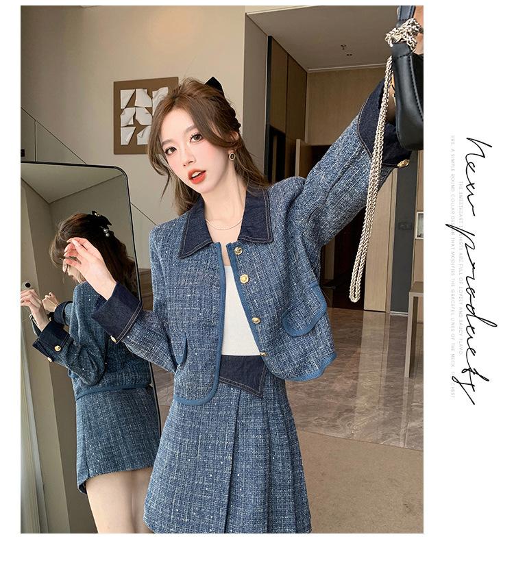 Conjunto de dos piezas con falda y top de tweed, estilo francés azul pequeño y fragante, de otoño, de tiro real