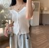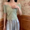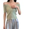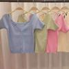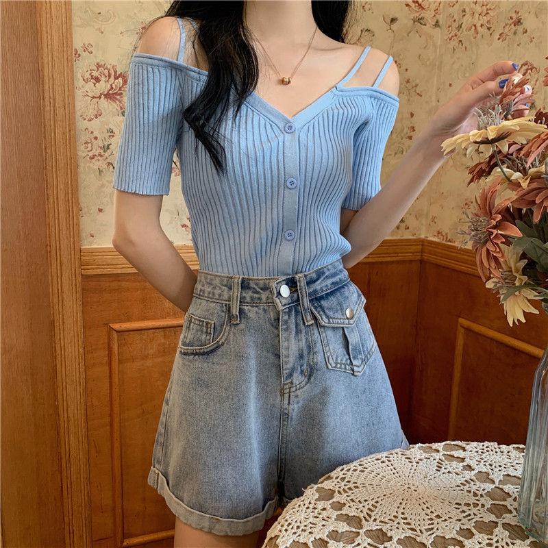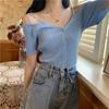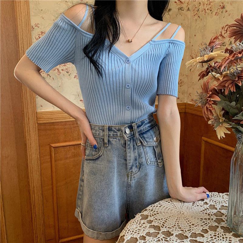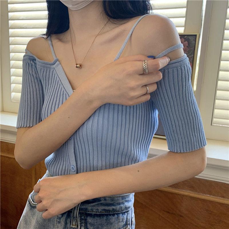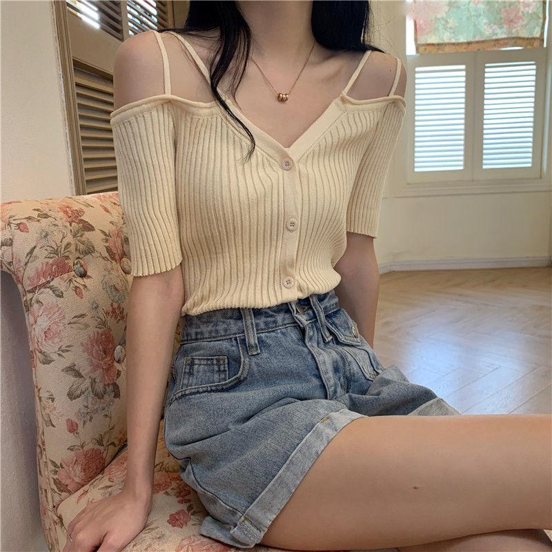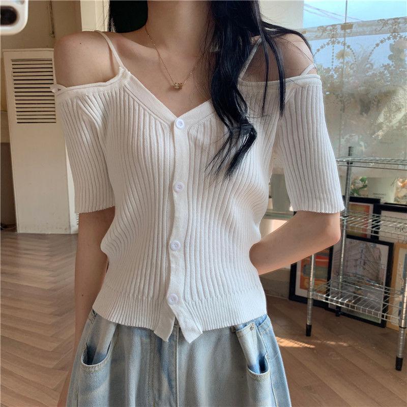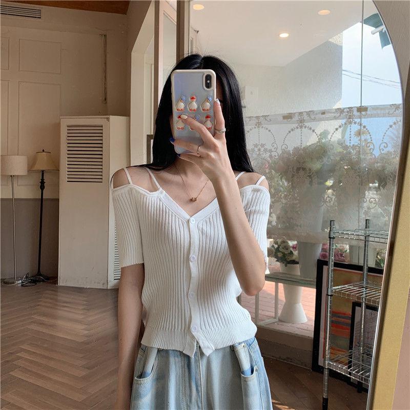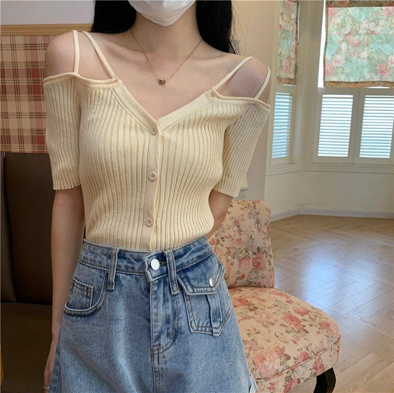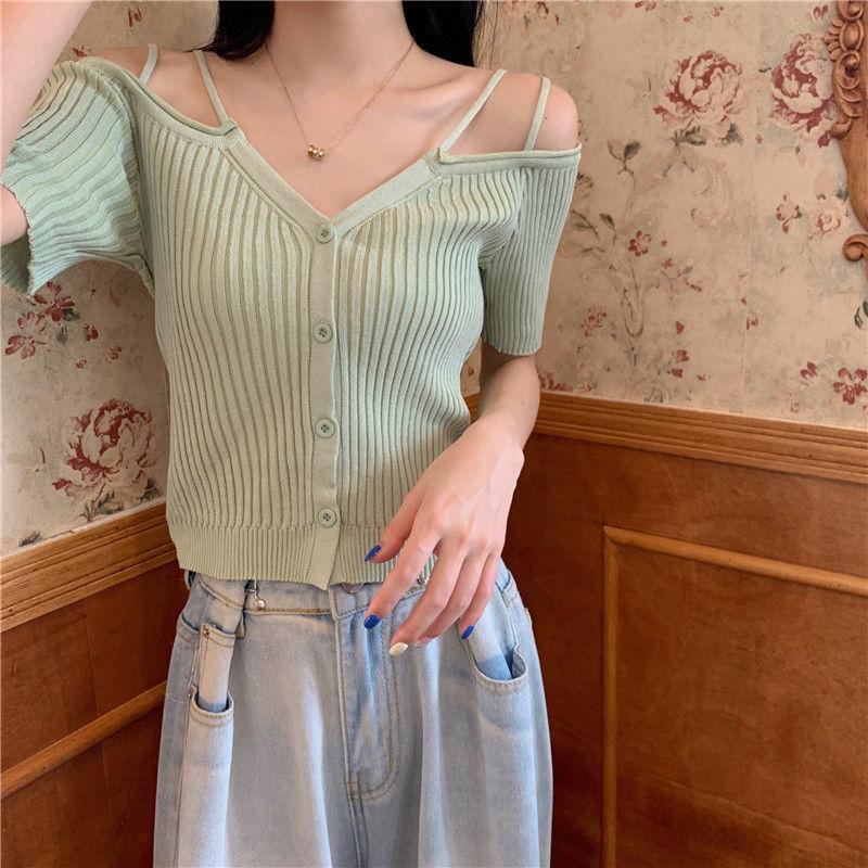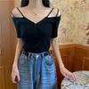 Camiseta corta de verano con escote en V y tirantes para mujer, de color liso, sexy, de punto