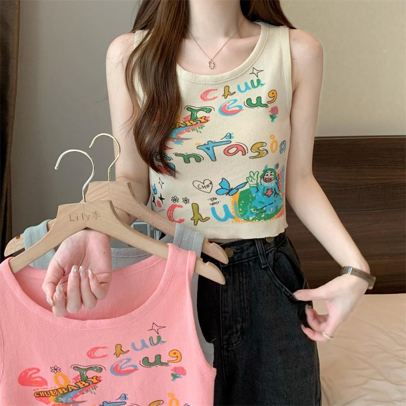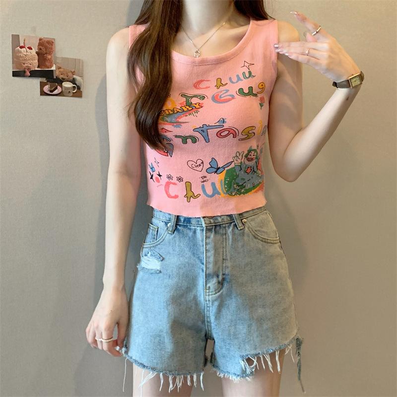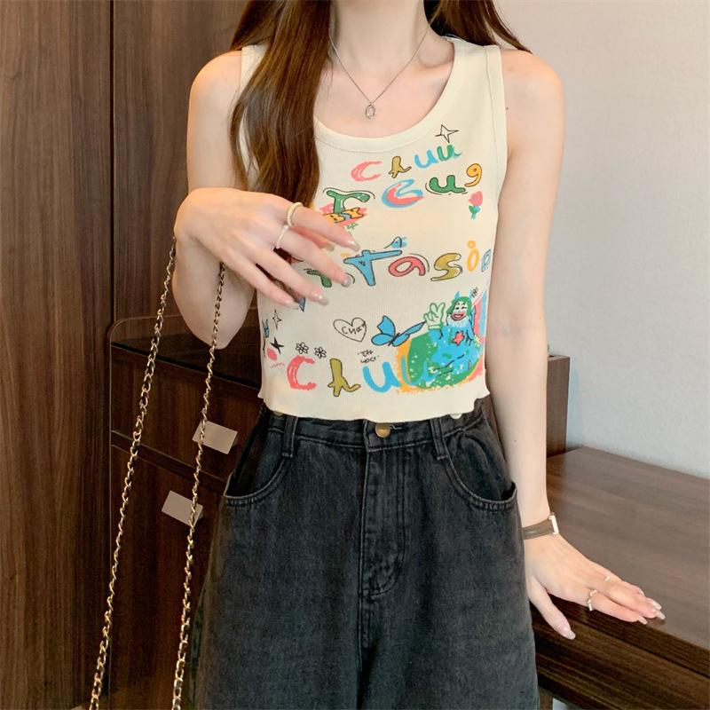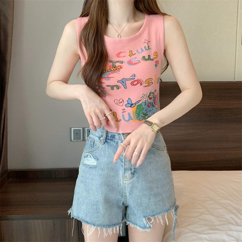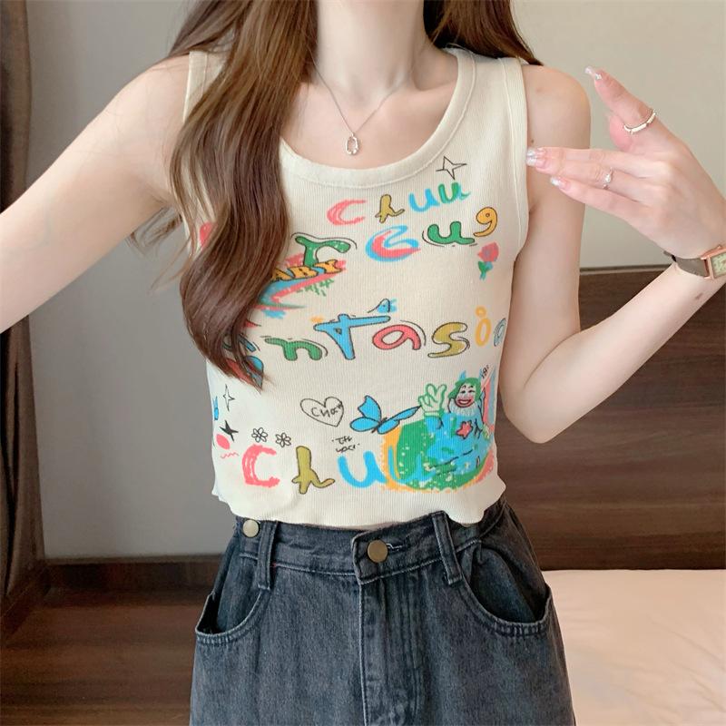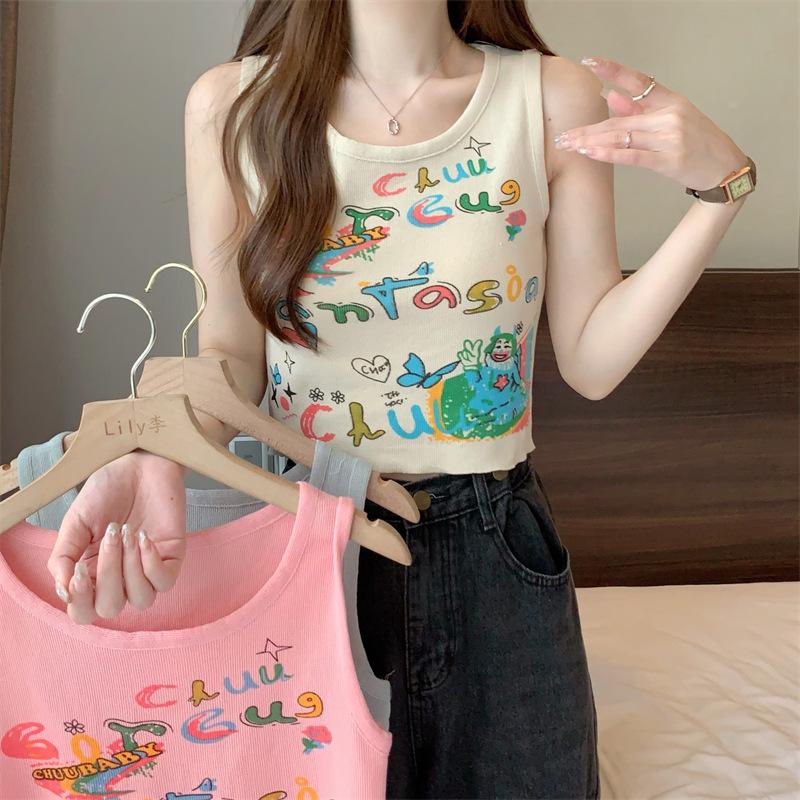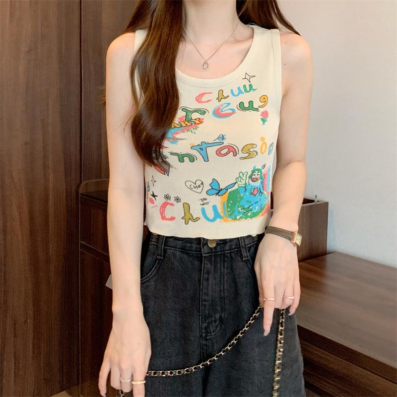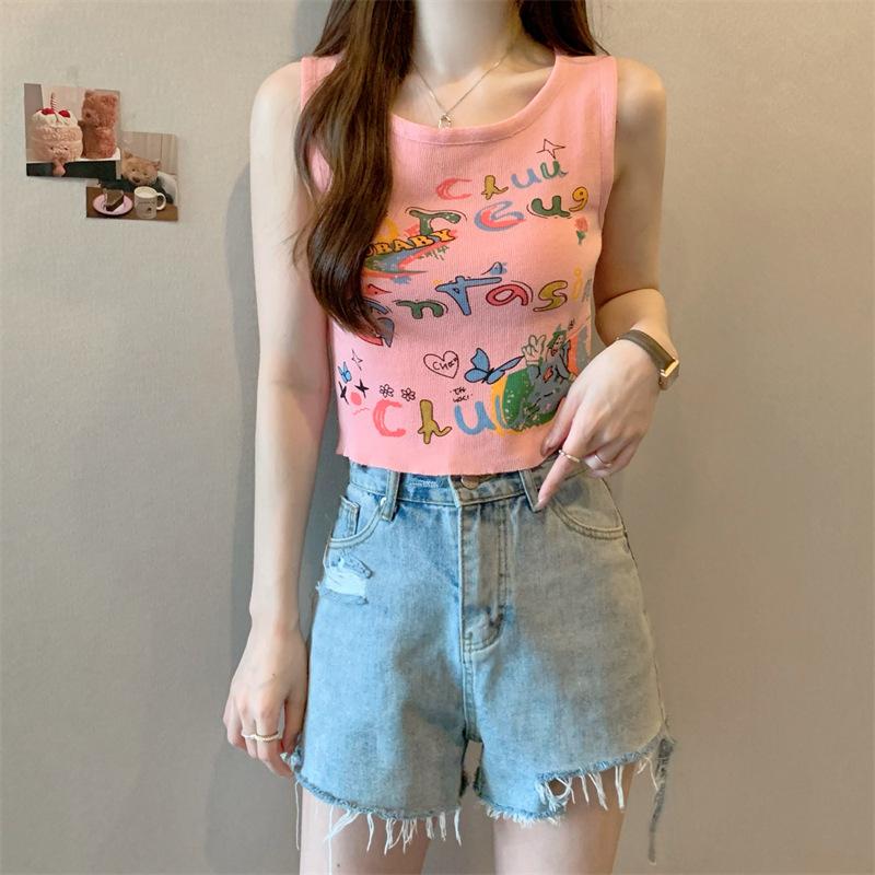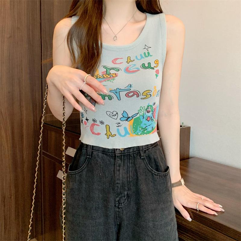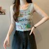 Chaleco pequeño retro de estilo americano para mujer, prenda exterior elegante, estampada, entallada, adelgazante, sin mangas, de punto, novedad de verano