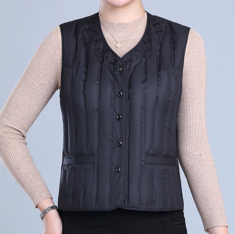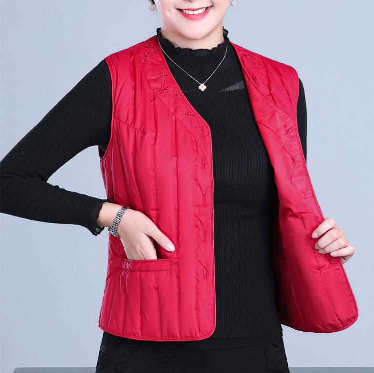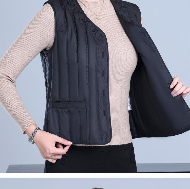 Chaleco ligero de plumón para mujer, novedad de otoño e invierno de 2024, chaleco interior para mujeres de mediana edad y mayores, chaleco con clip de caballo para madre de talla grande