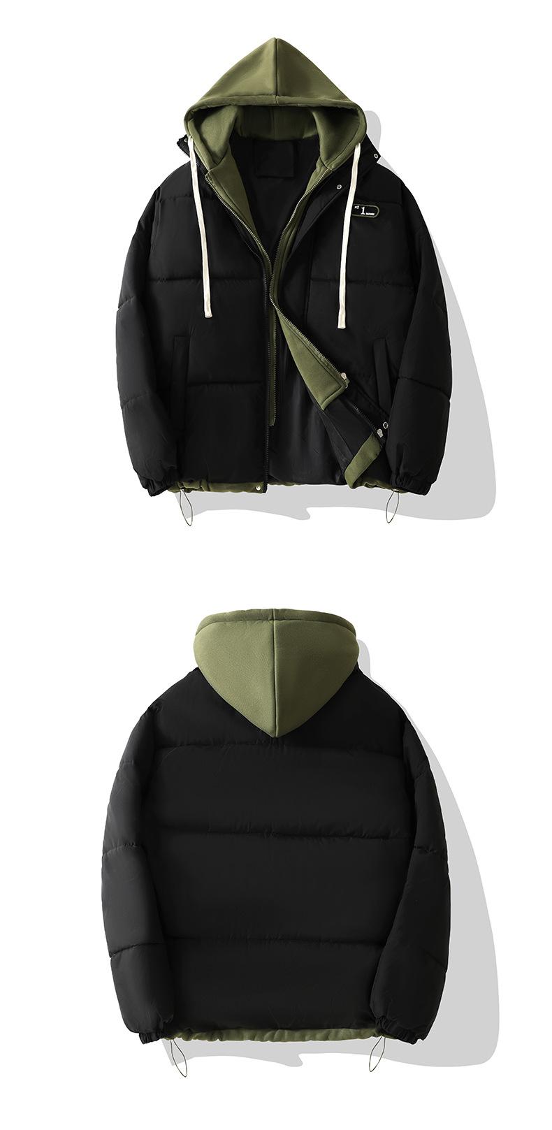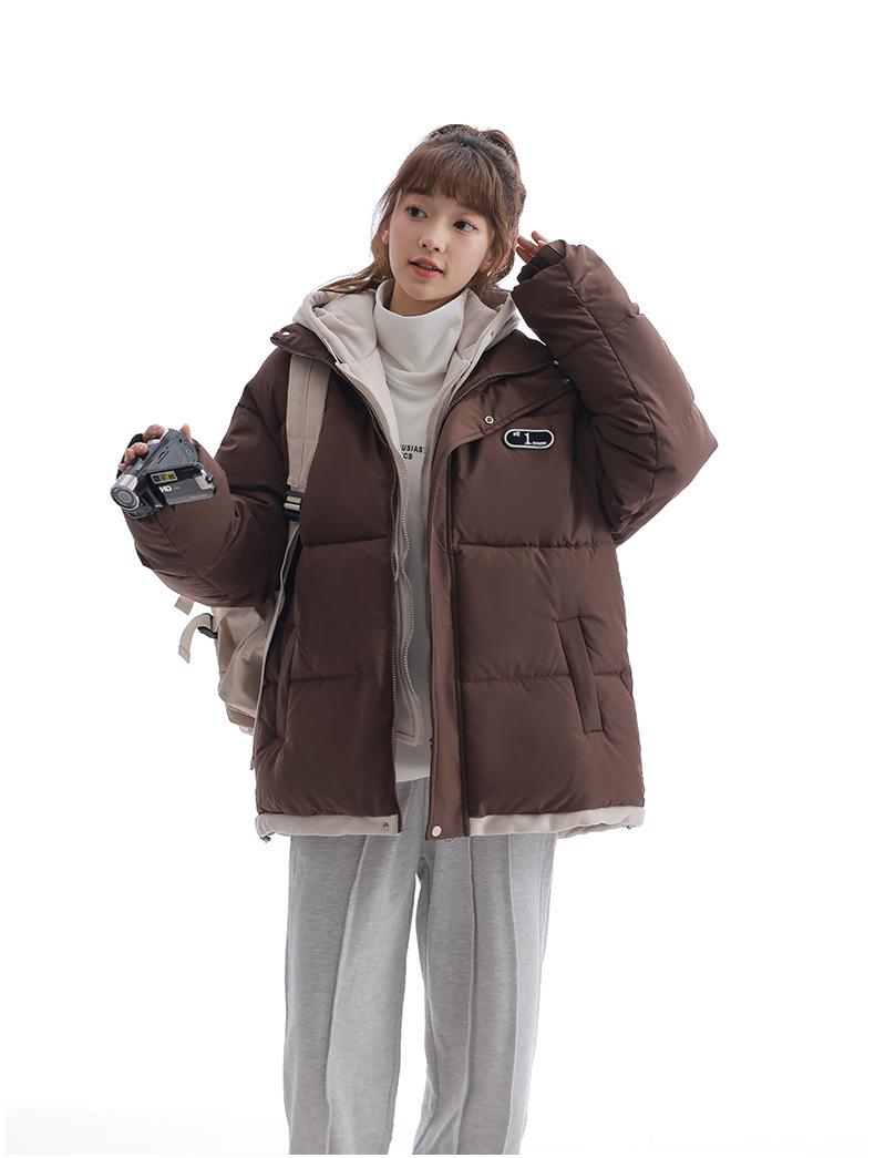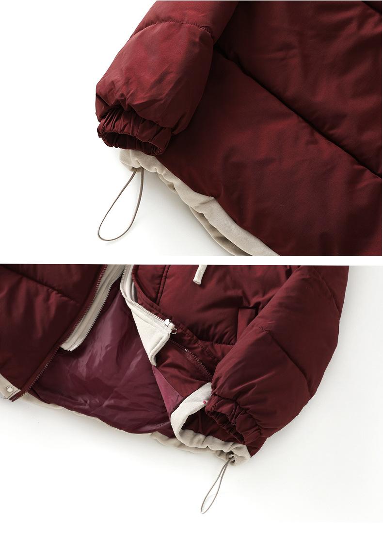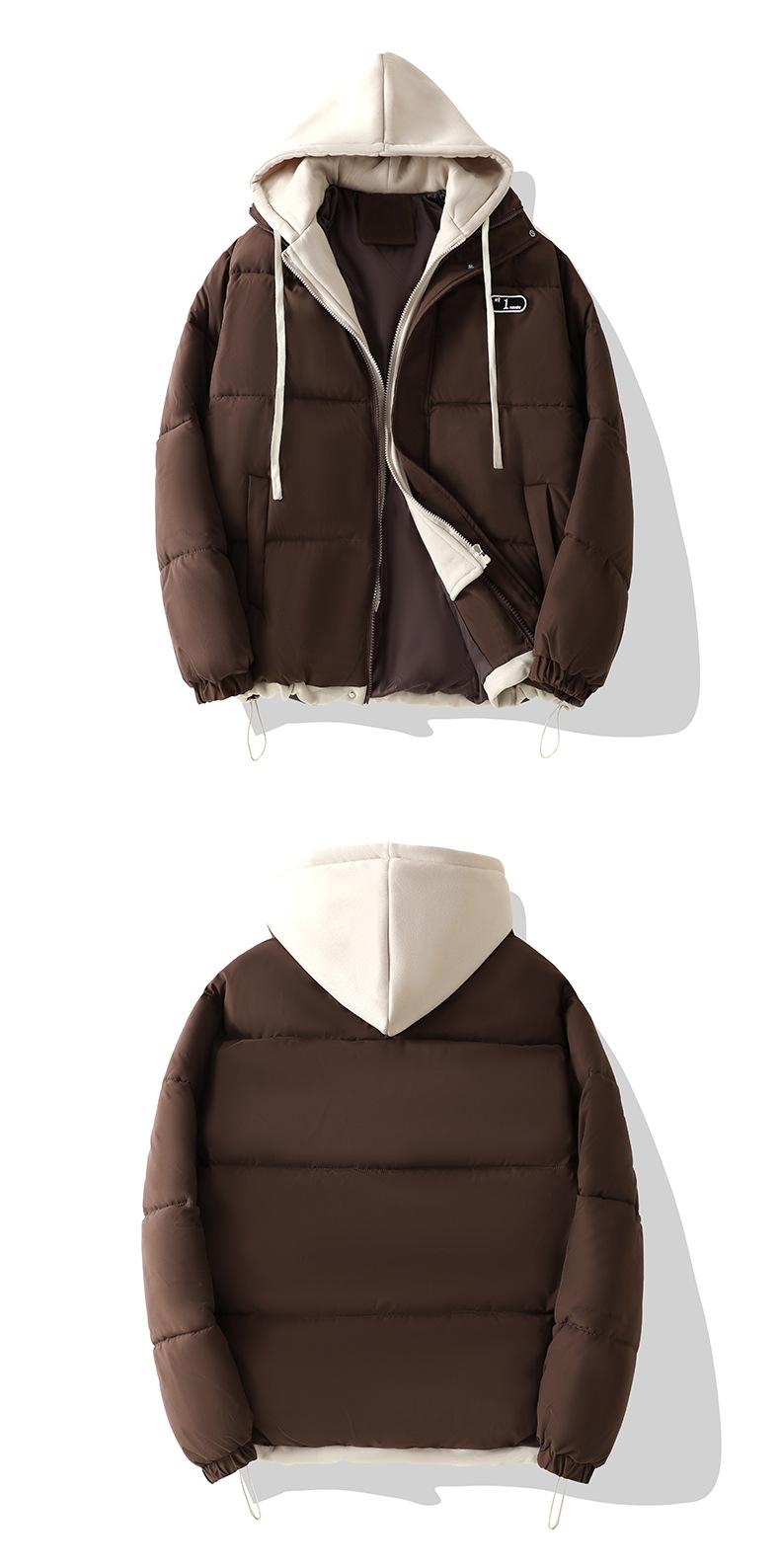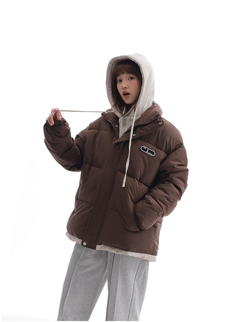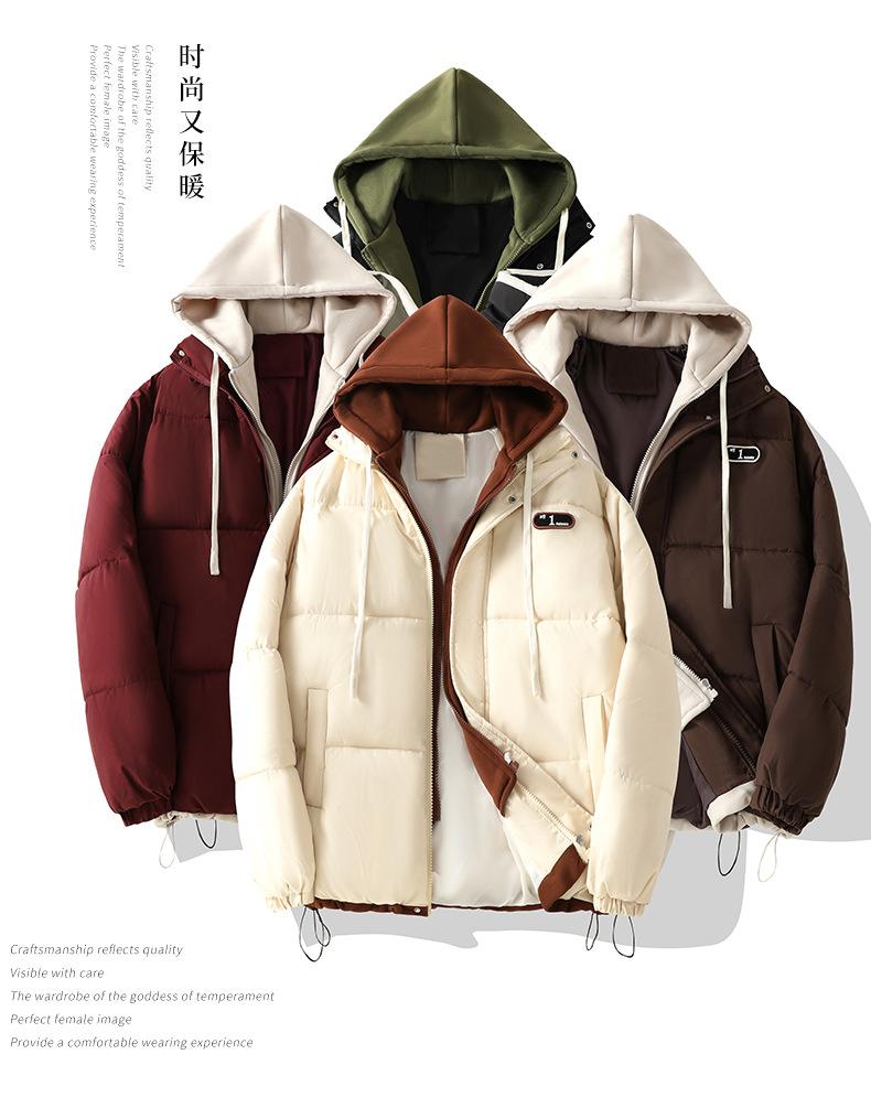 Chaqueta acolchada de algodón con capucha de dos piezas, falsa, transfronteriza, para mujer, corta, de invierno, con costuras sueltas y contraste, 2024