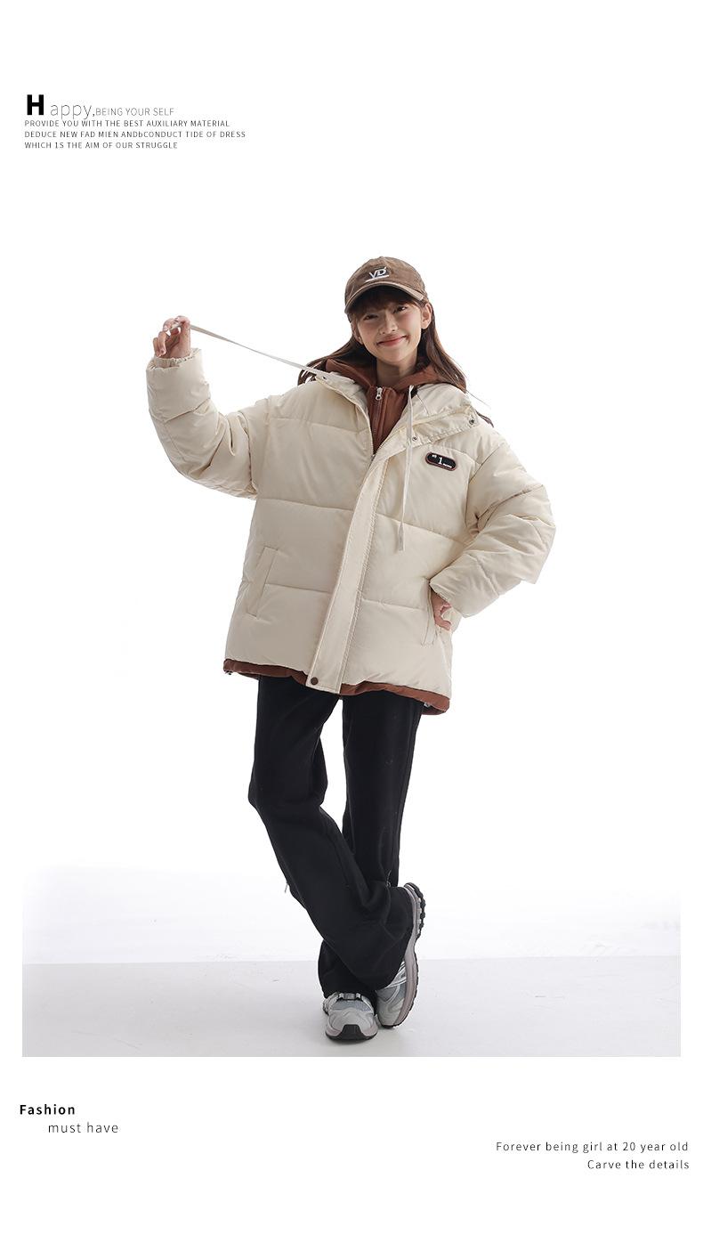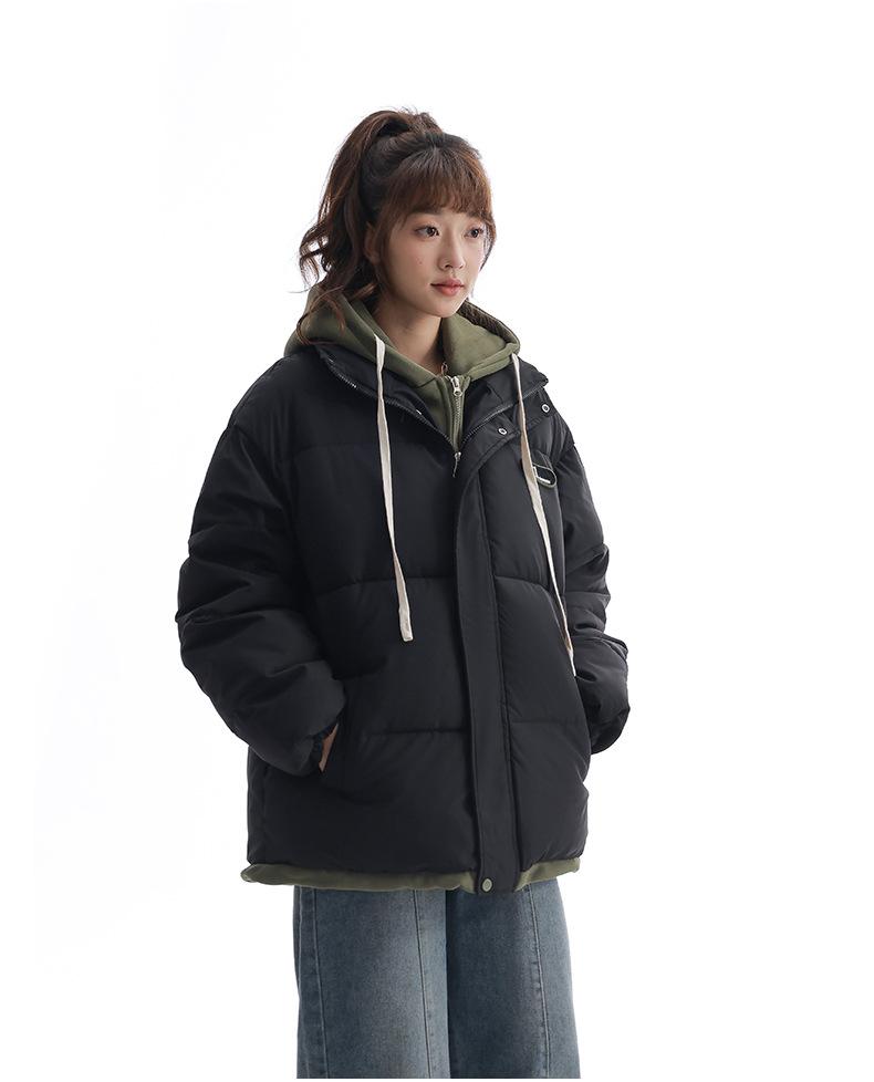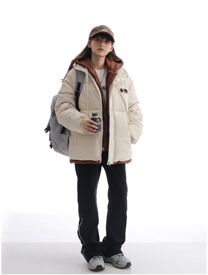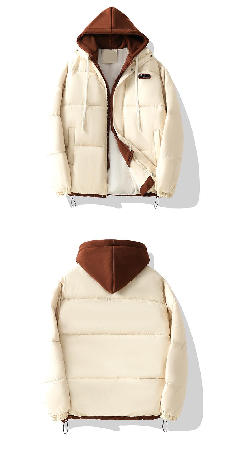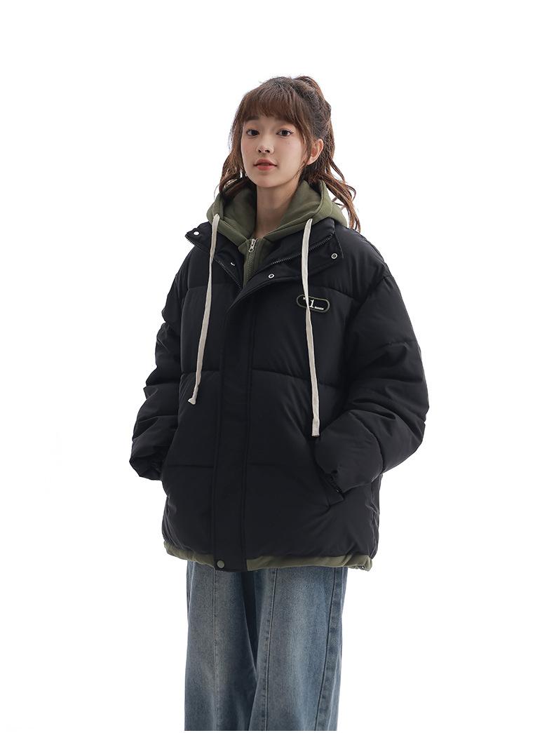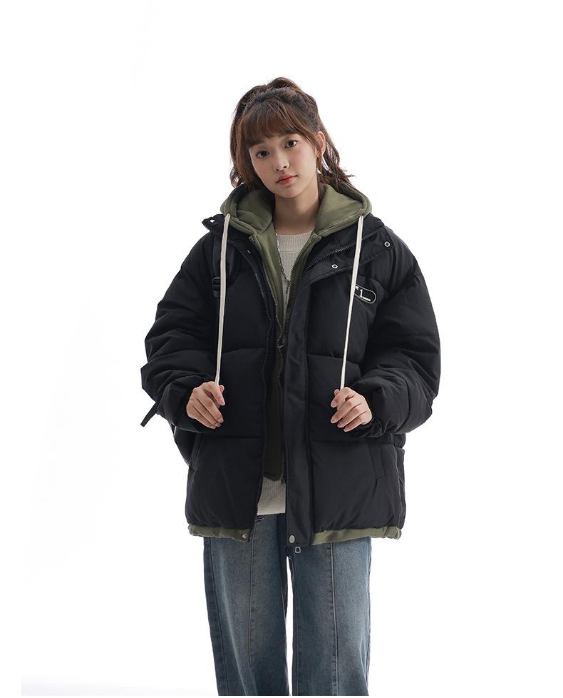 Chaqueta acolchada de algodón con capucha de dos piezas, falsa, transfronteriza, para mujer, corta, de invierno, con costuras sueltas y contraste, 2024