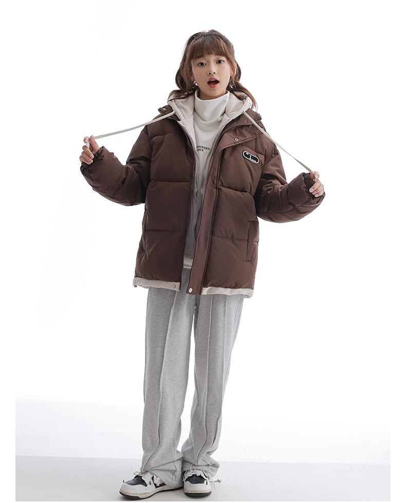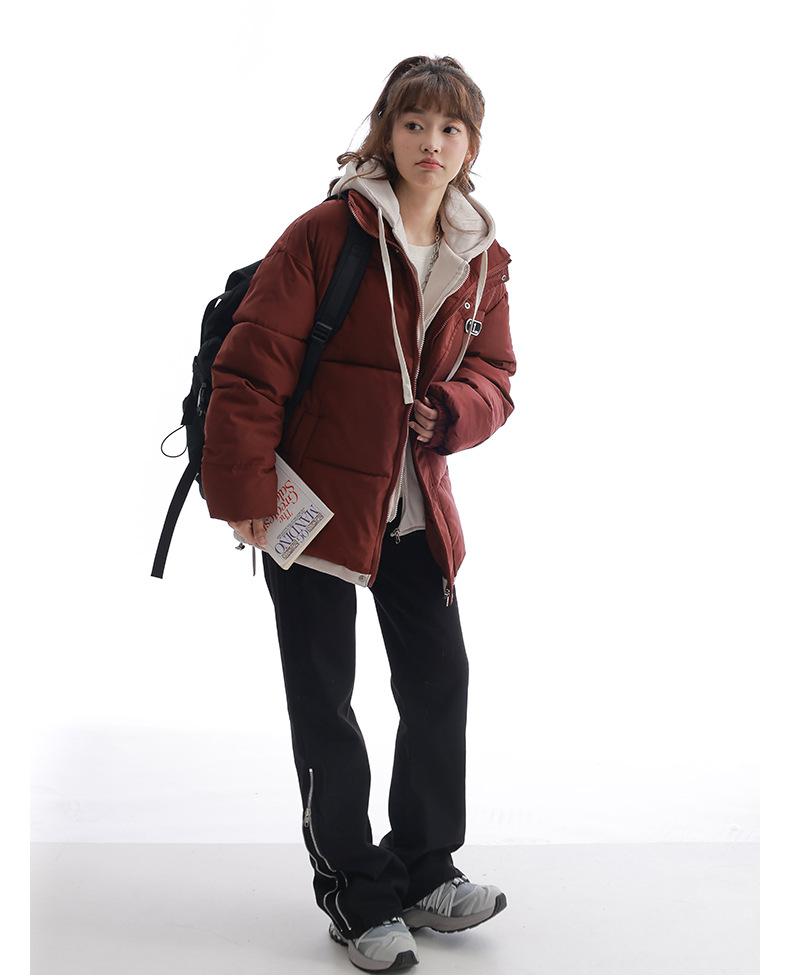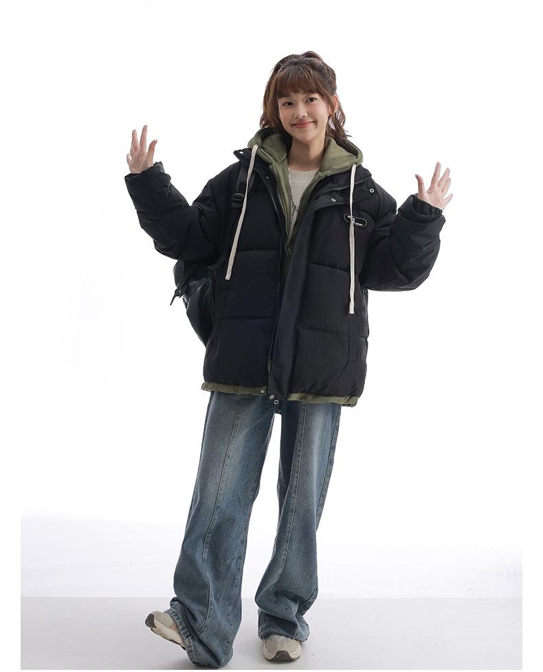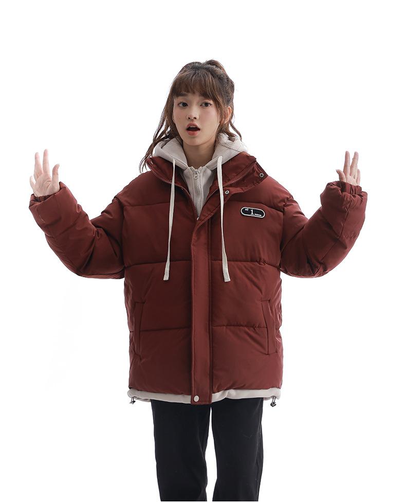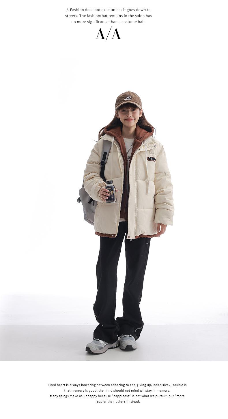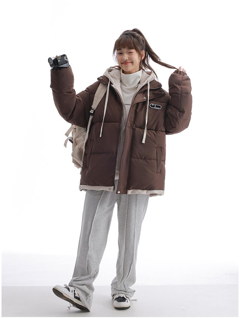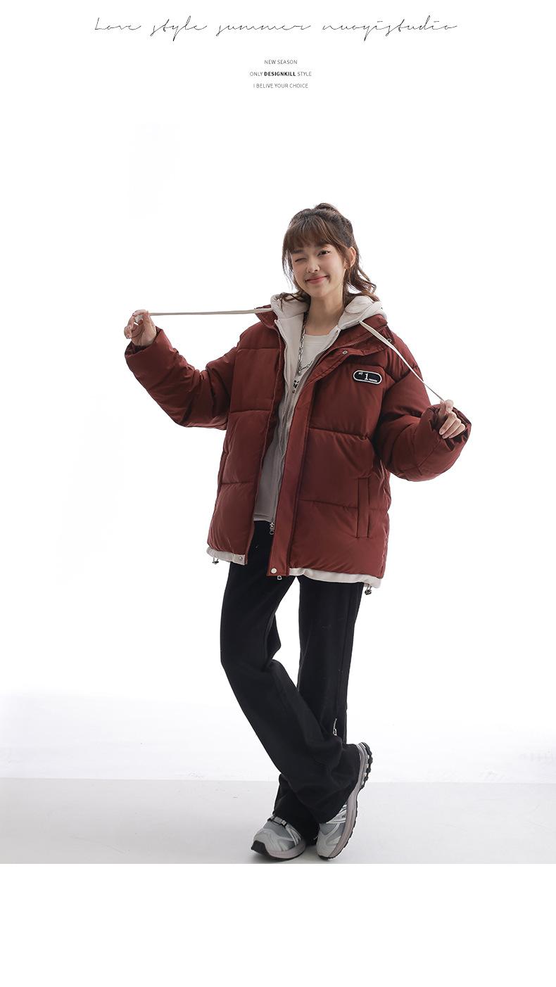 Chaqueta acolchada de algodón con capucha de dos piezas, falsa, transfronteriza, para mujer, corta, de invierno, con costuras sueltas y contraste, 2024