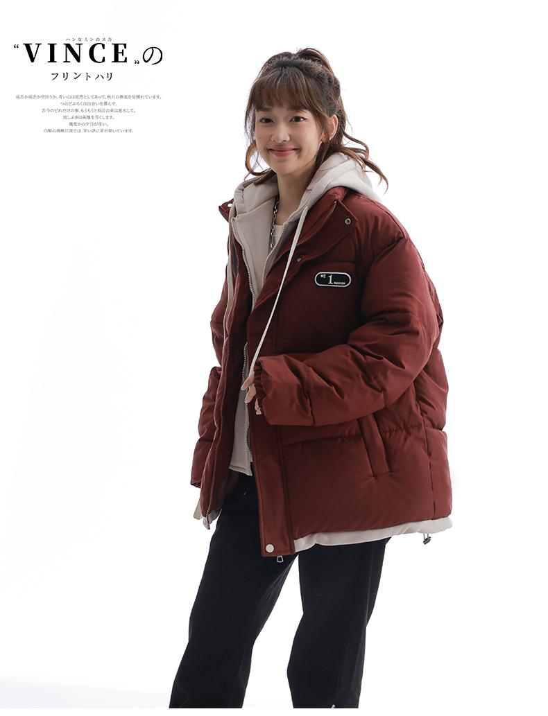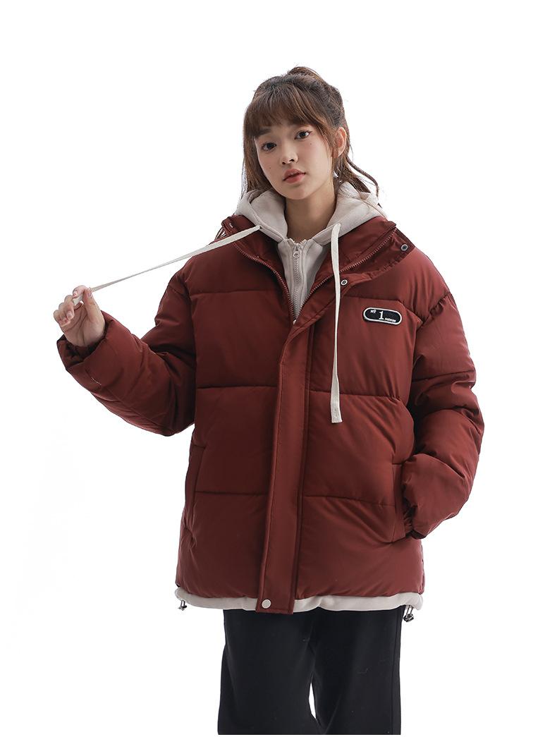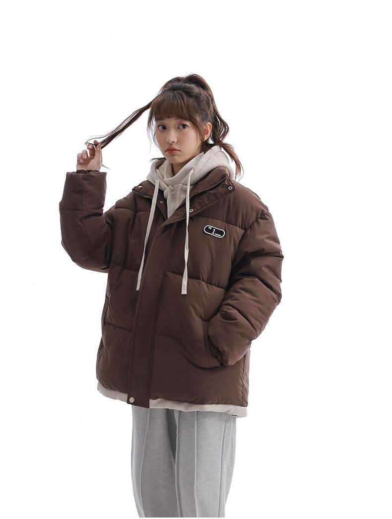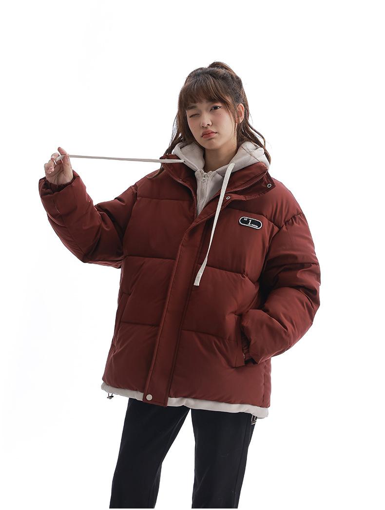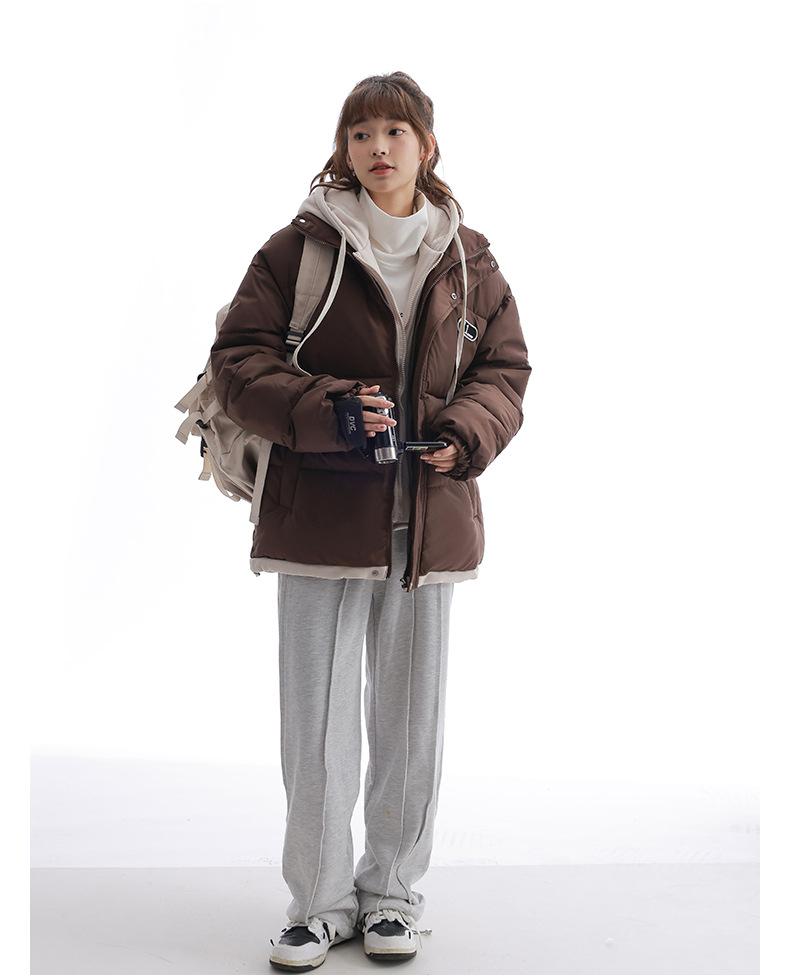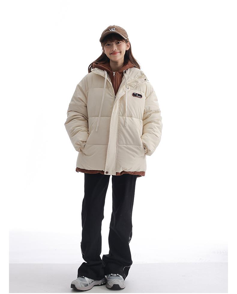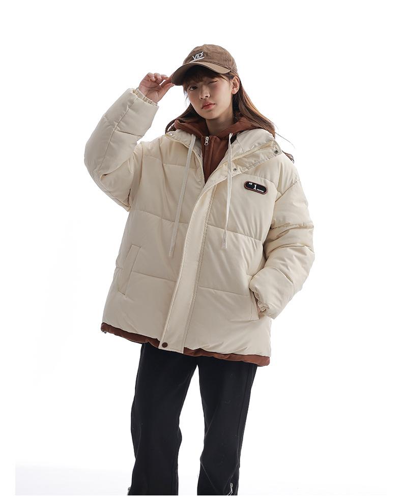 Chaqueta acolchada de algodón con capucha de dos piezas, falsa, transfronteriza, para mujer, corta, de invierno, con costuras sueltas y contraste, 2024