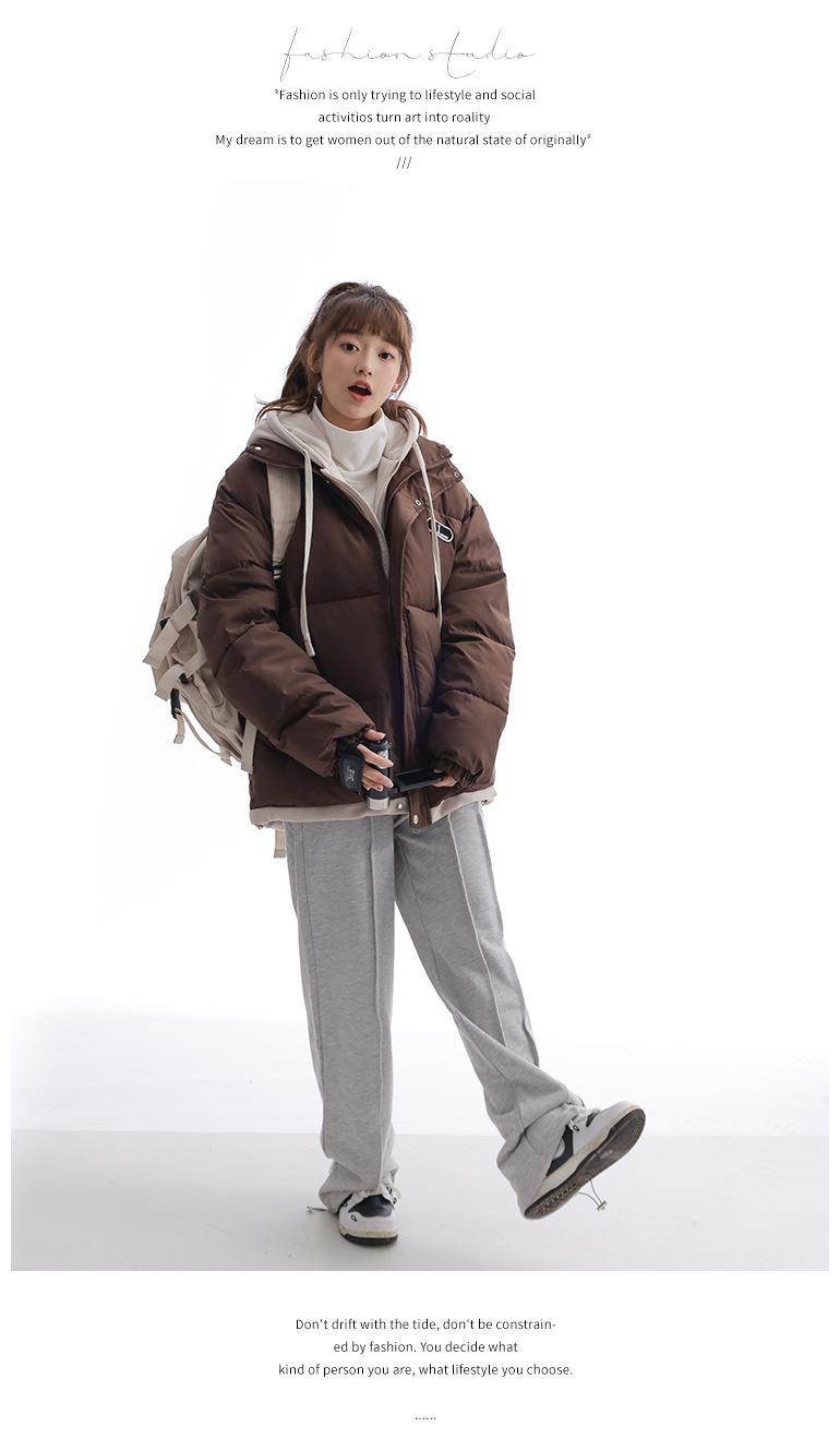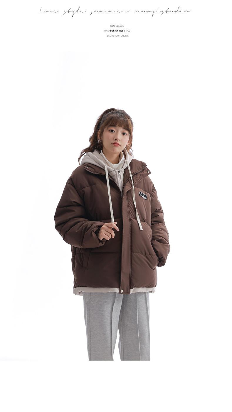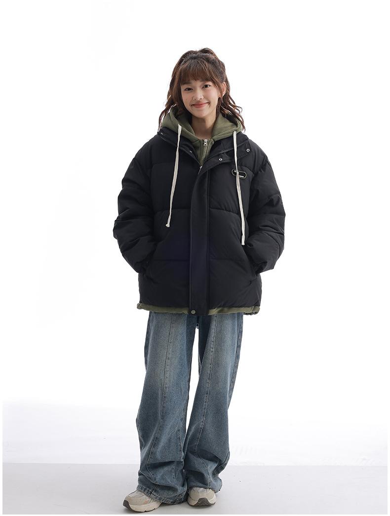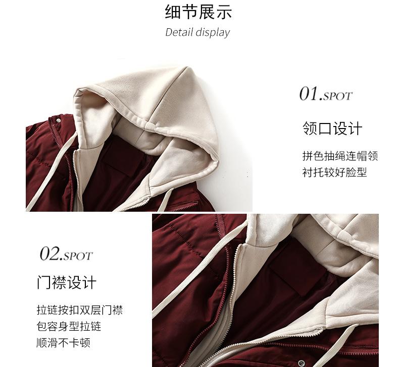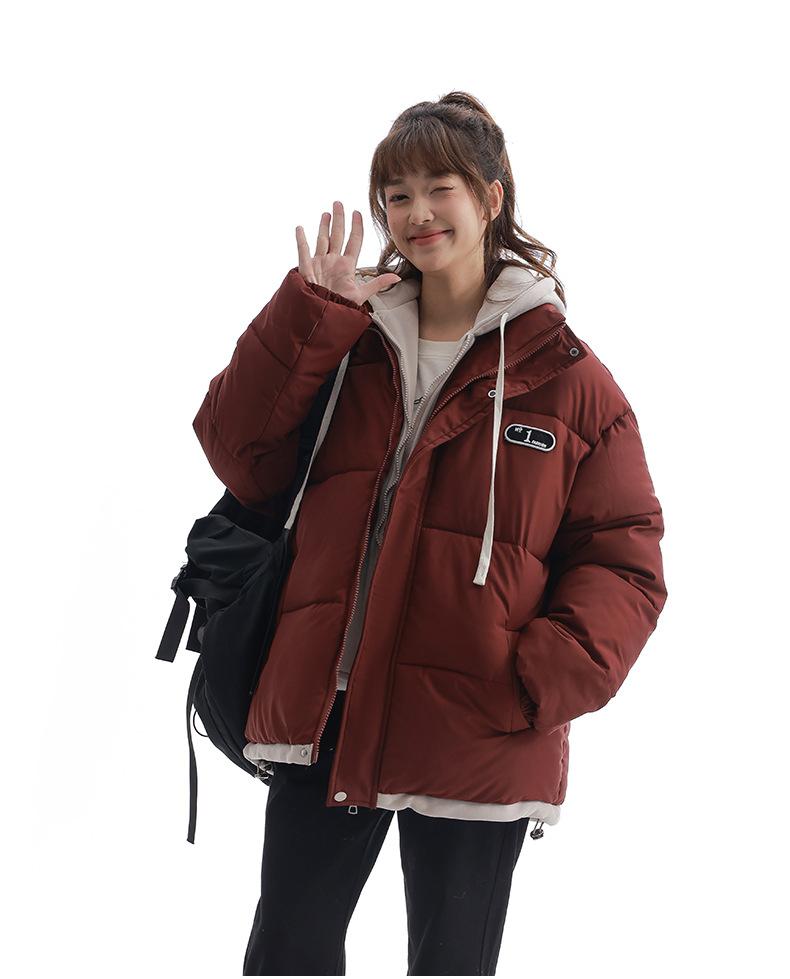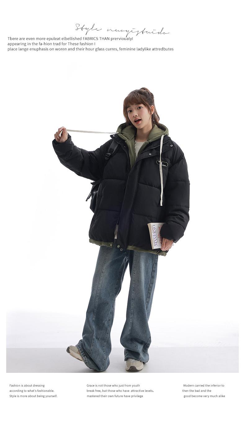 Chaqueta acolchada de algodón con capucha de dos piezas, falsa, transfronteriza, para mujer, corta, de invierno, con costuras sueltas y contraste, 2024