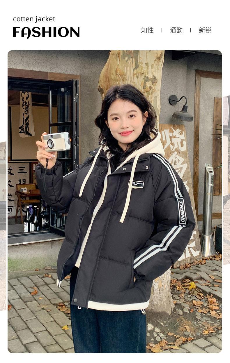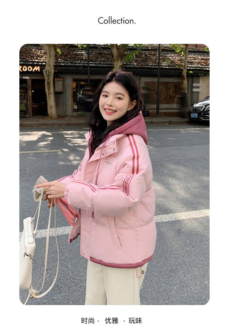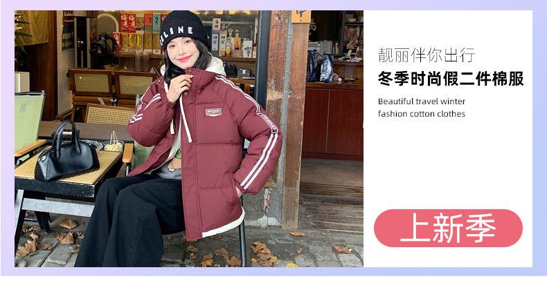 Chaqueta acolchada de algodón con capucha de dos piezas, falsa, transfronteriza, de invierno, para mujer, de talla grande, holgada, informal, para adolescentes, 2024