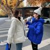 Abrigo acolchado de algodón rojo informal para mujer, estilo americano, con cuello vertical, holgado, para invierno de 2024
