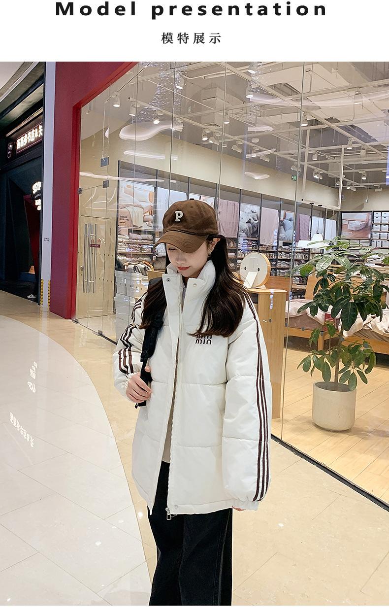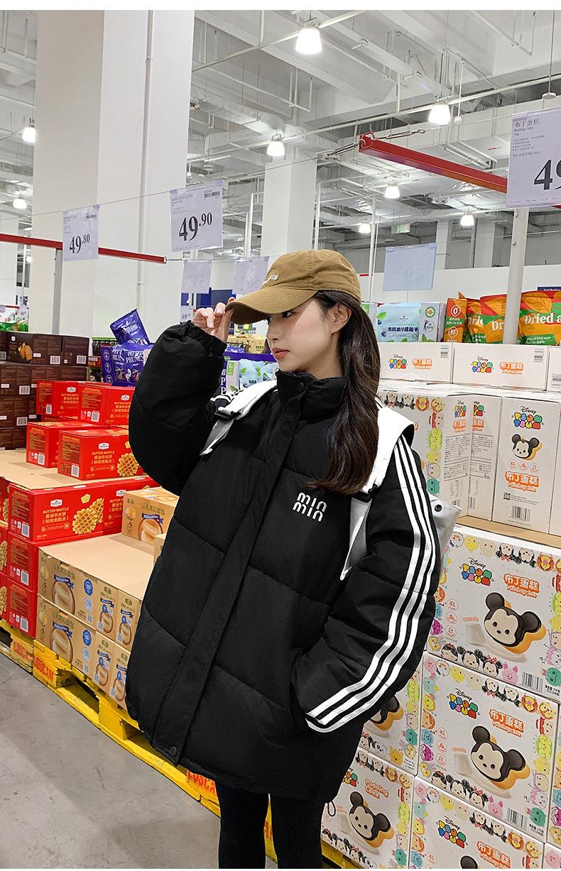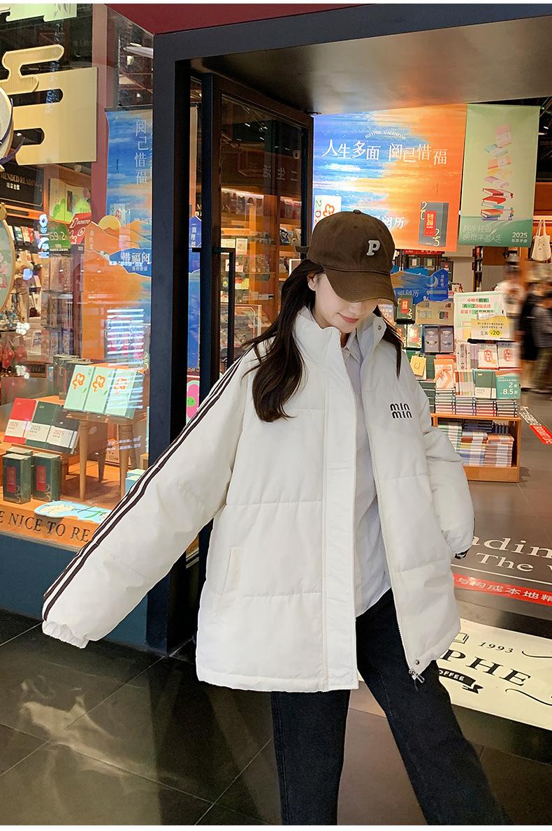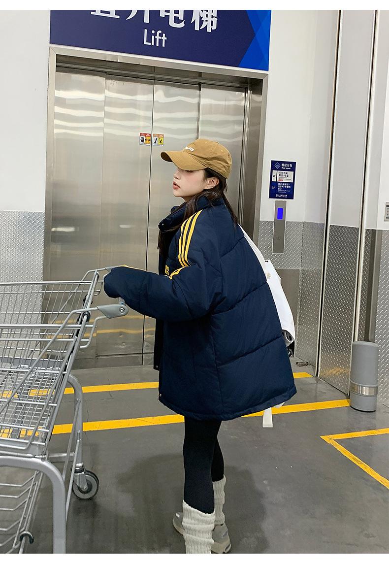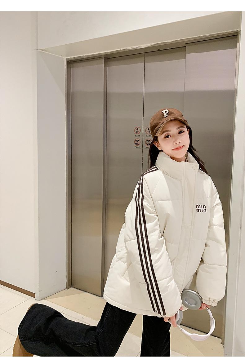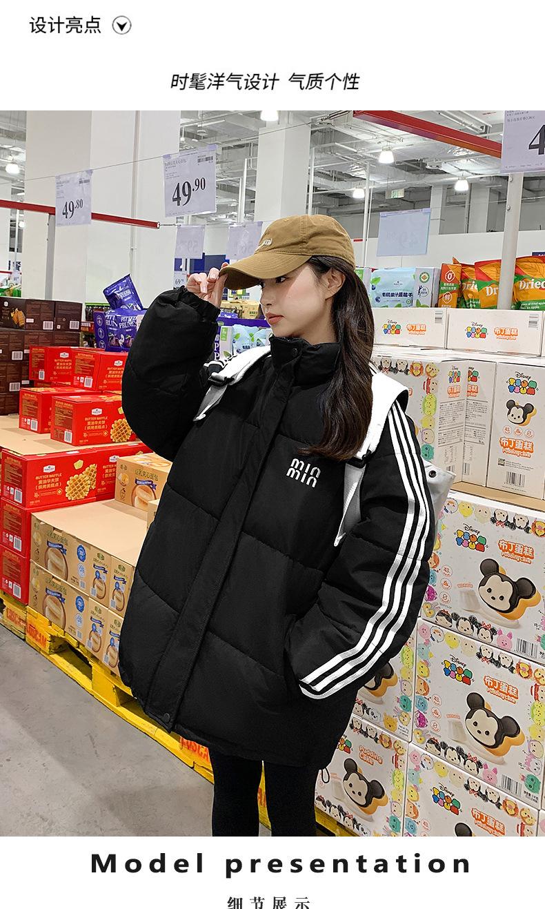 Abrigo informal de algodón acolchado con contraste para mujer, chaqueta cálida de invierno, corta, holgada, estilo coreano, con cuello acolchado de algodón, 2024
