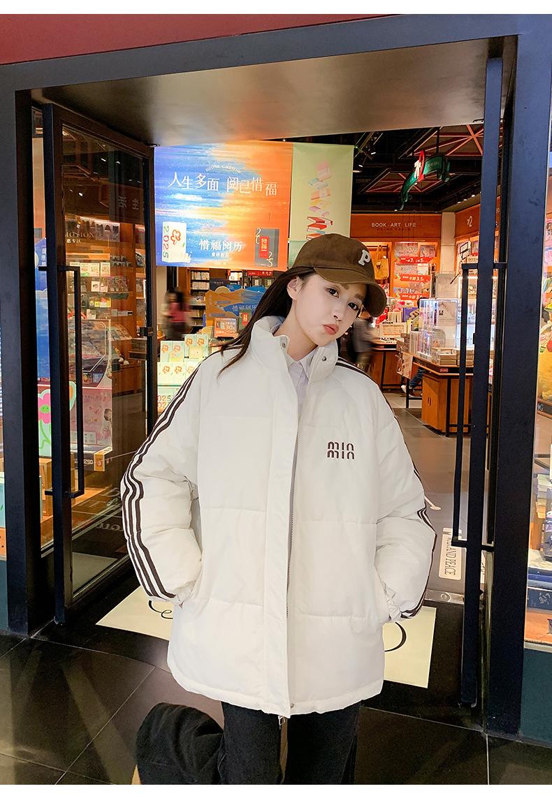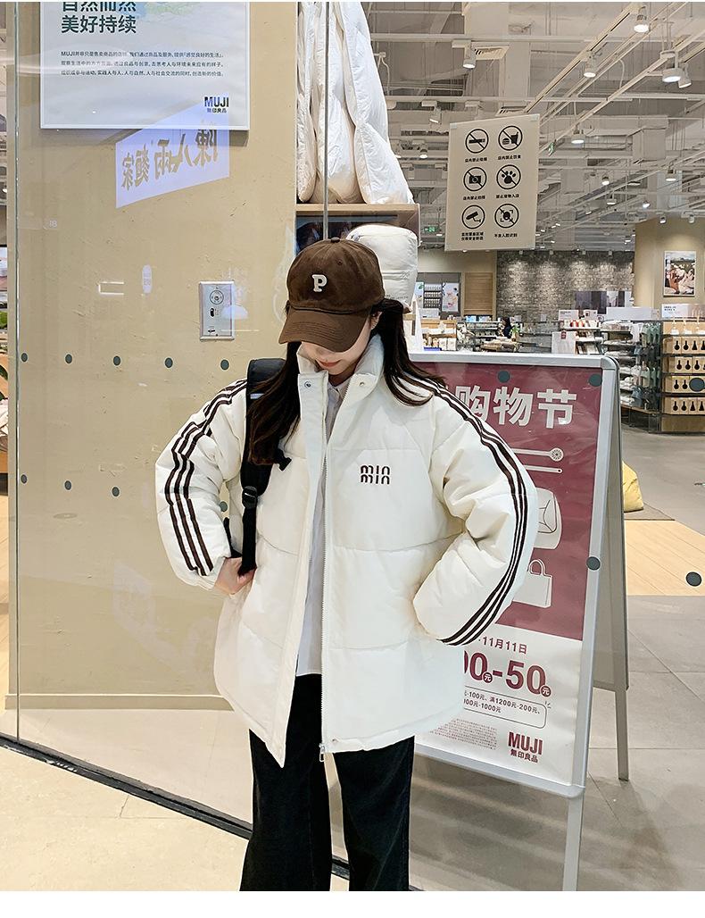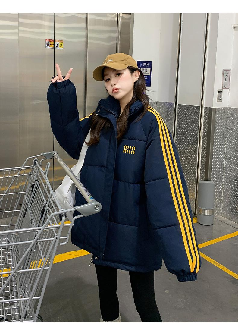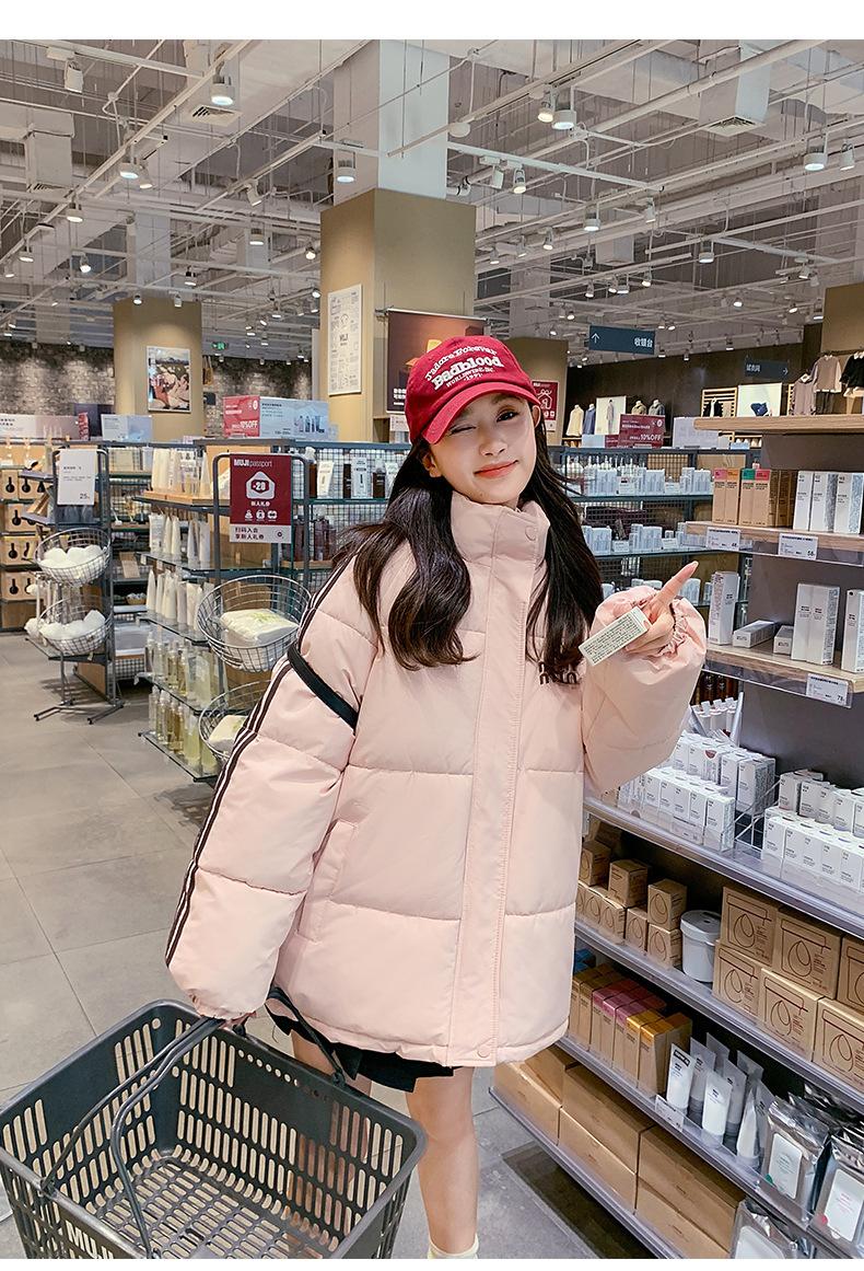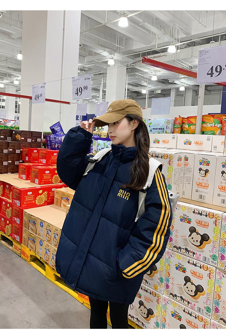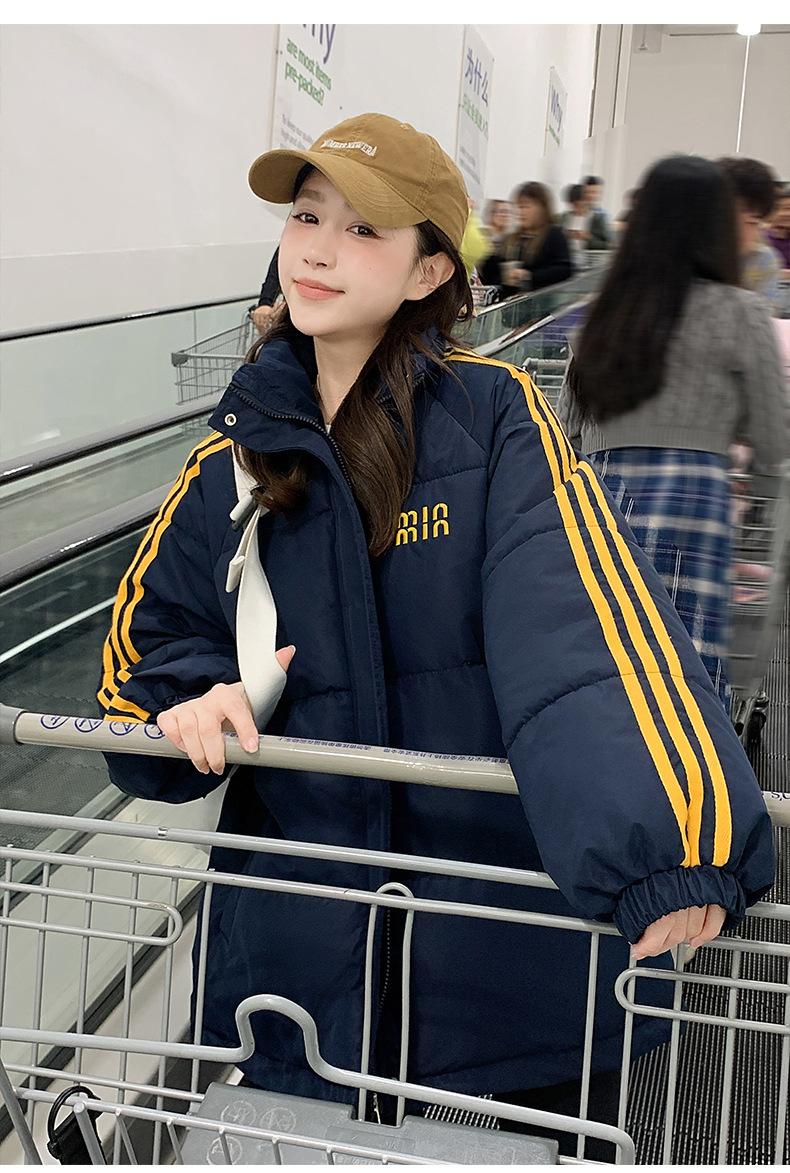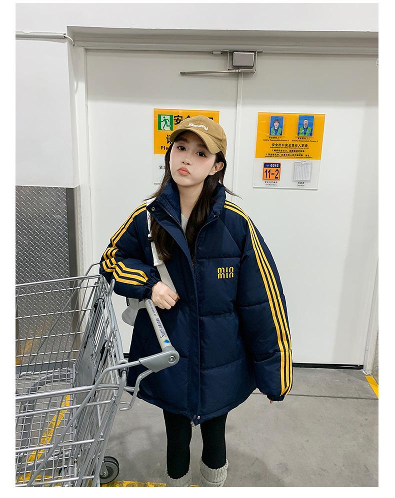 Abrigo informal de algodón acolchado con contraste para mujer, chaqueta cálida de invierno, corta, holgada, estilo coreano, con cuello acolchado de algodón, 2024