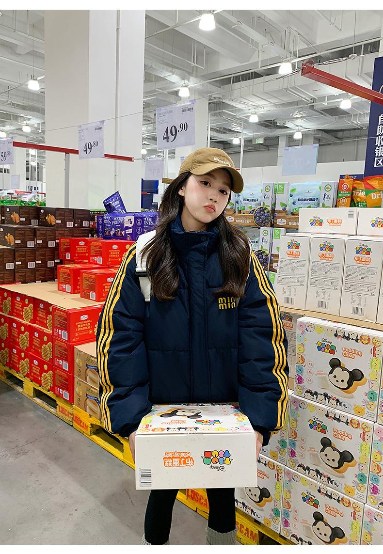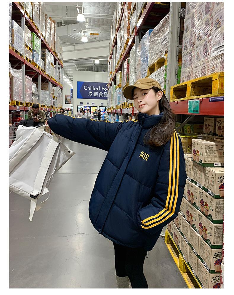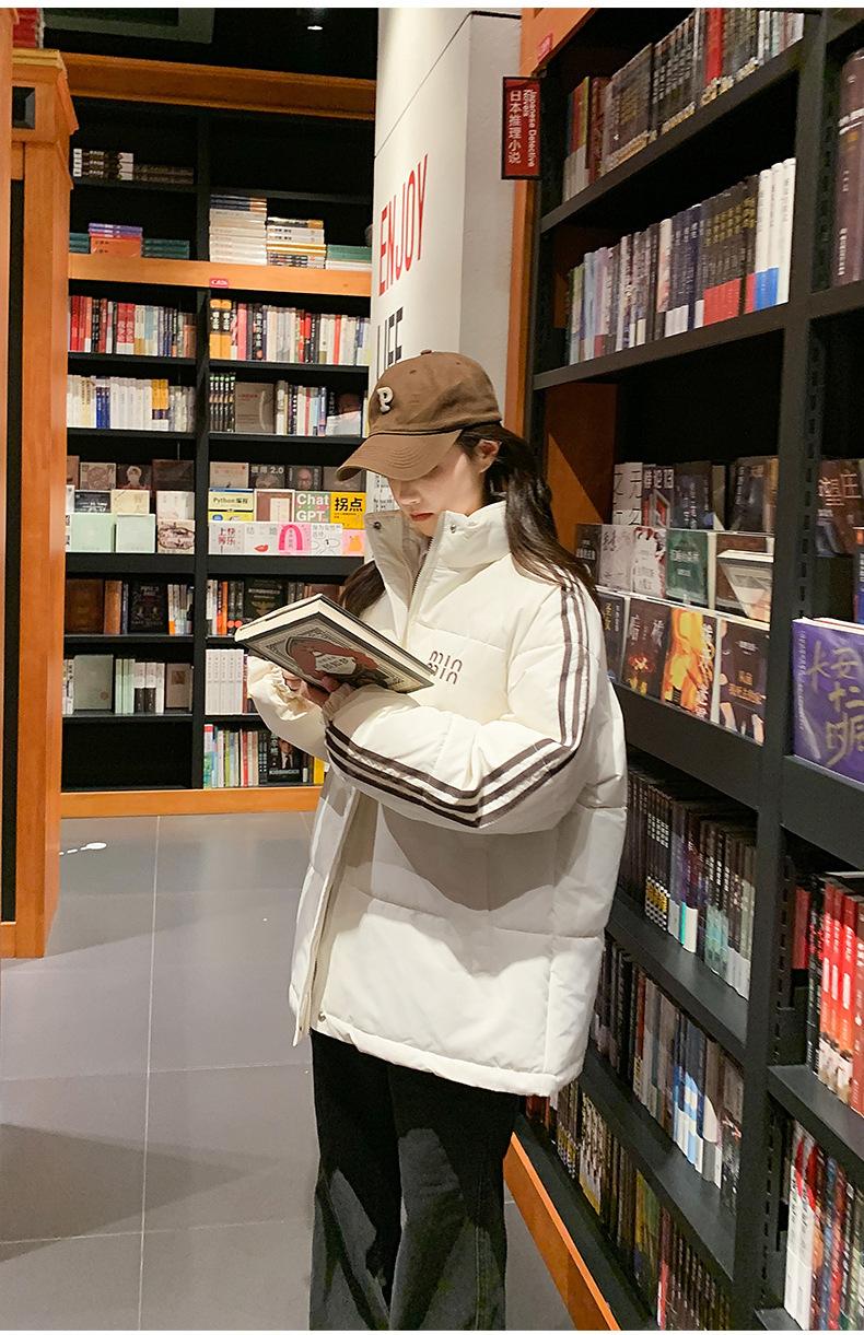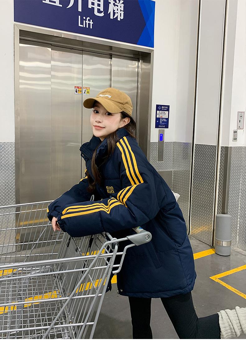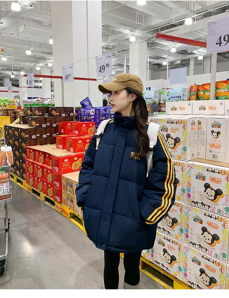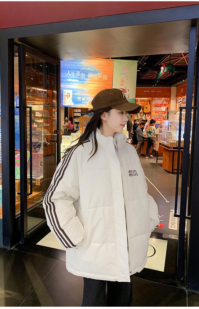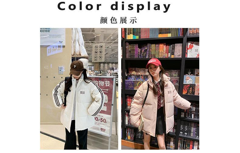 Abrigo informal de algodón acolchado con contraste para mujer, chaqueta cálida de invierno, corta, holgada, estilo coreano, con cuello acolchado de algodón, 2024