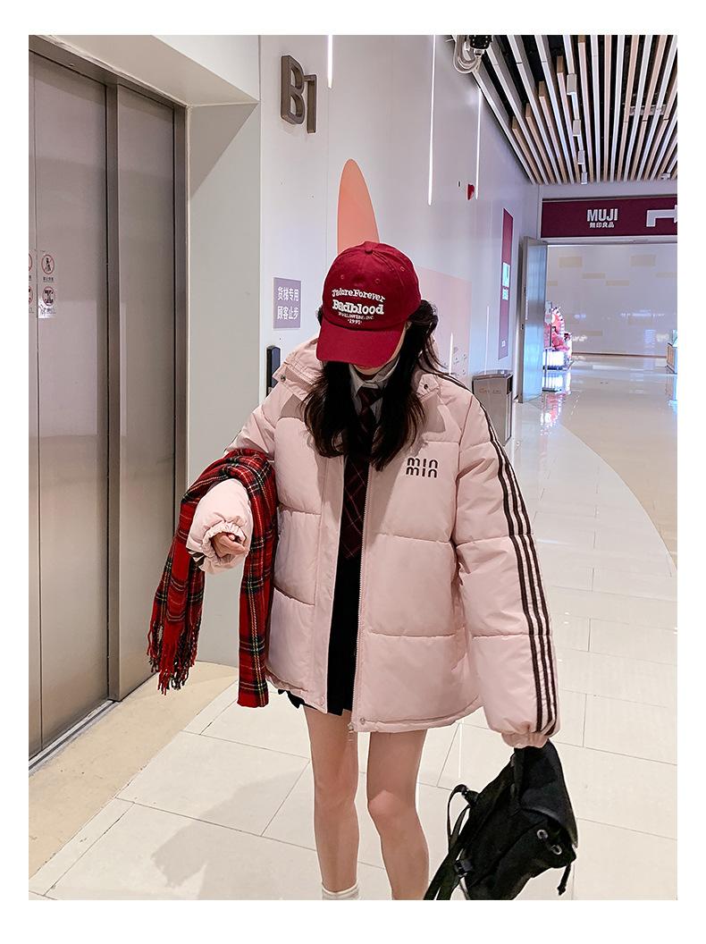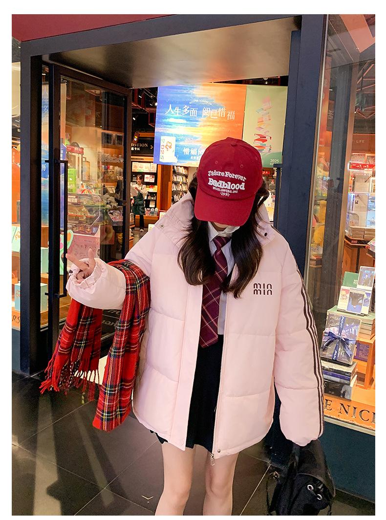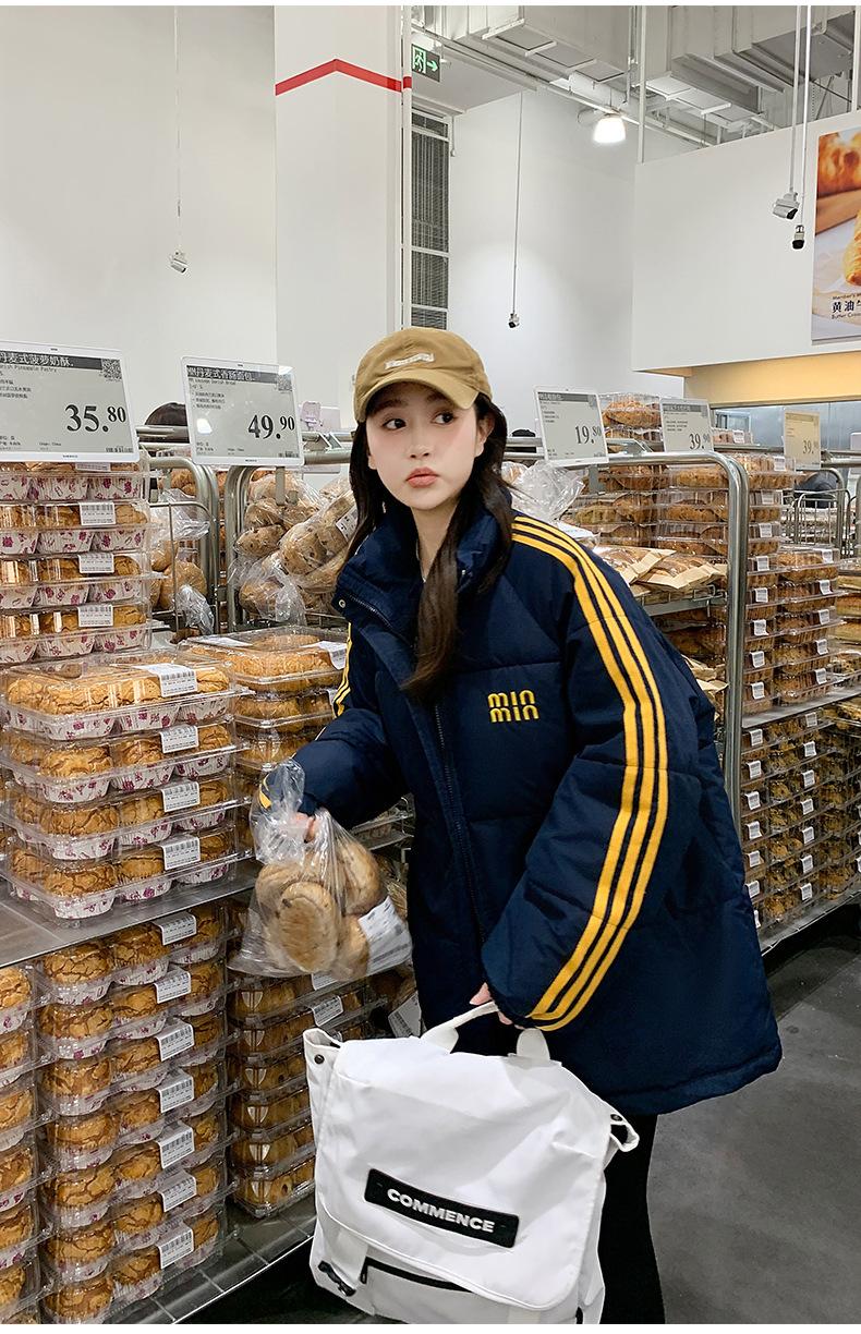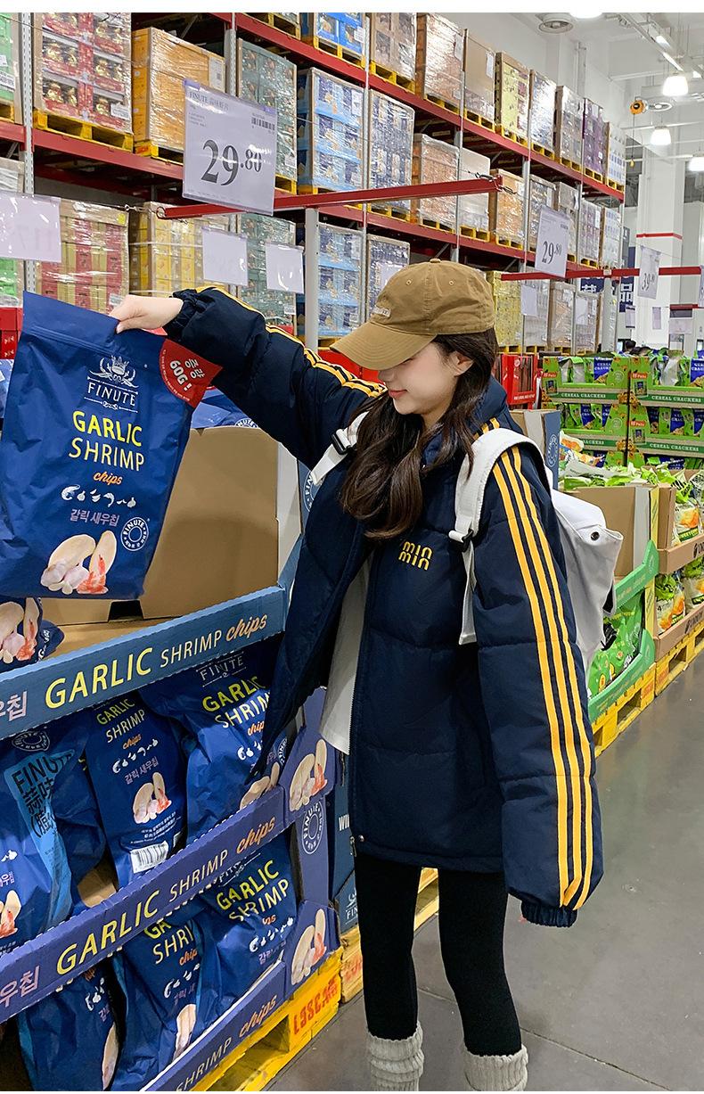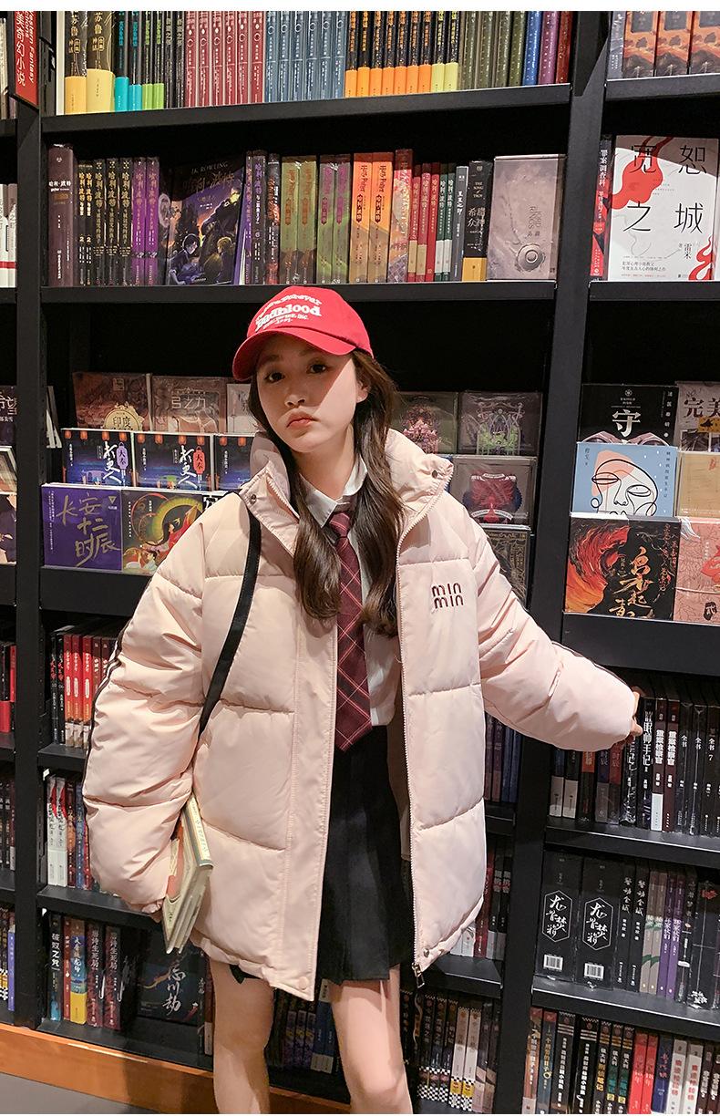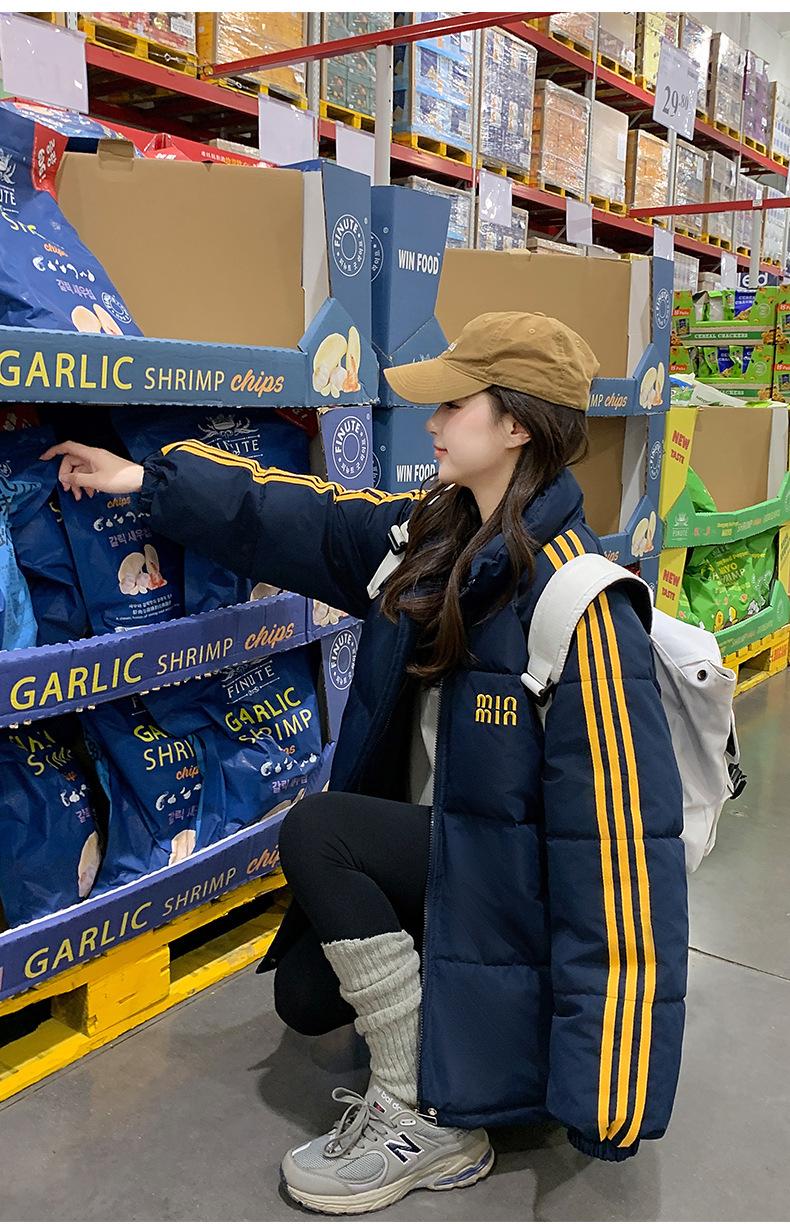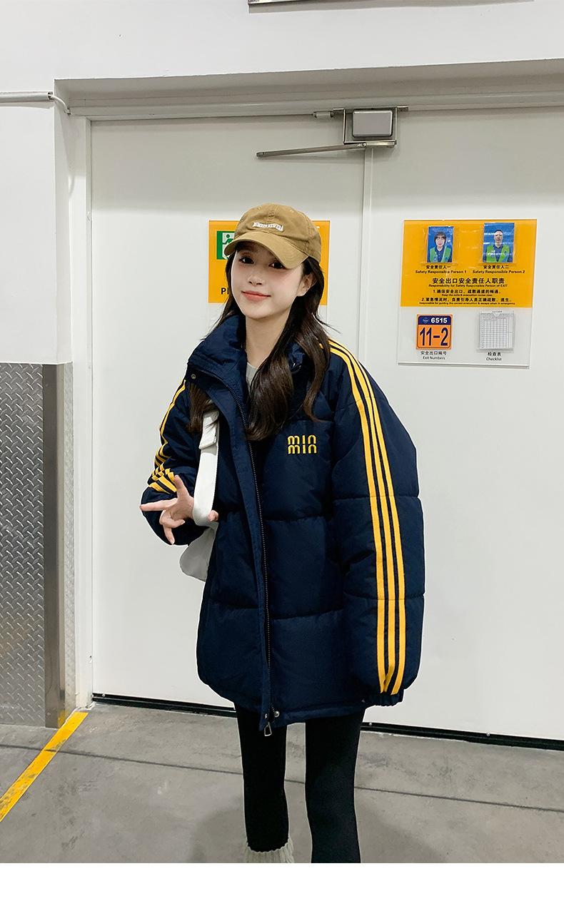 Abrigo informal de algodón acolchado con contraste para mujer, chaqueta cálida de invierno, corta, holgada, estilo coreano, con cuello acolchado de algodón, 2024