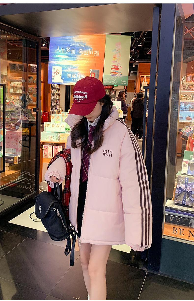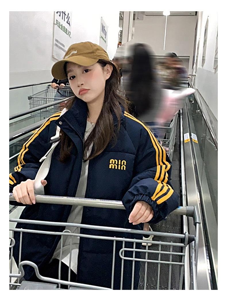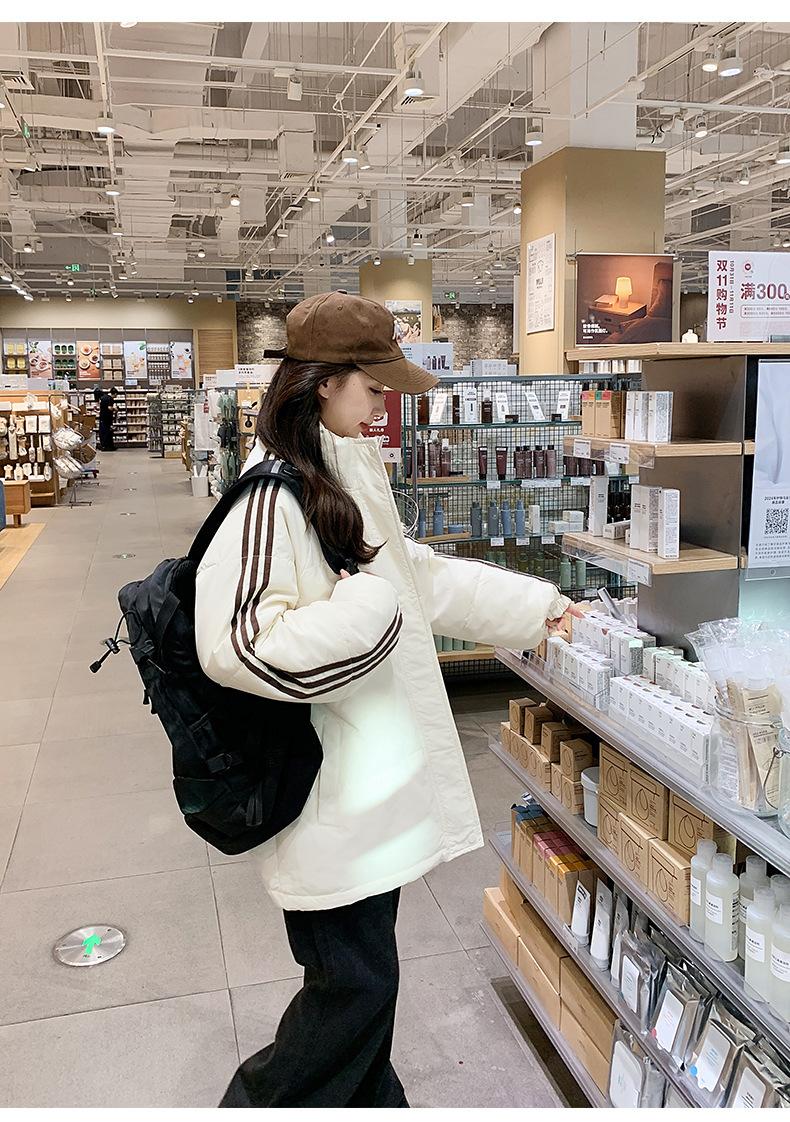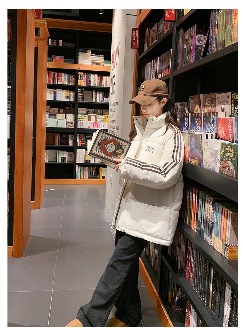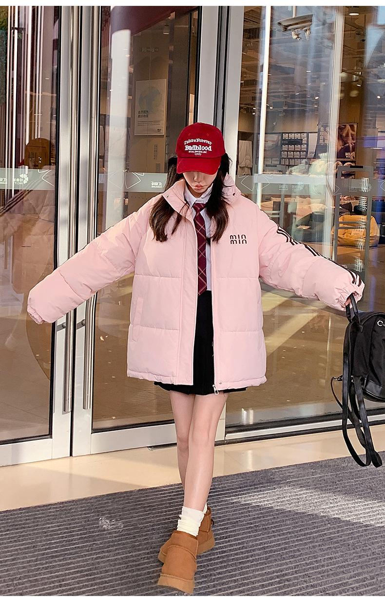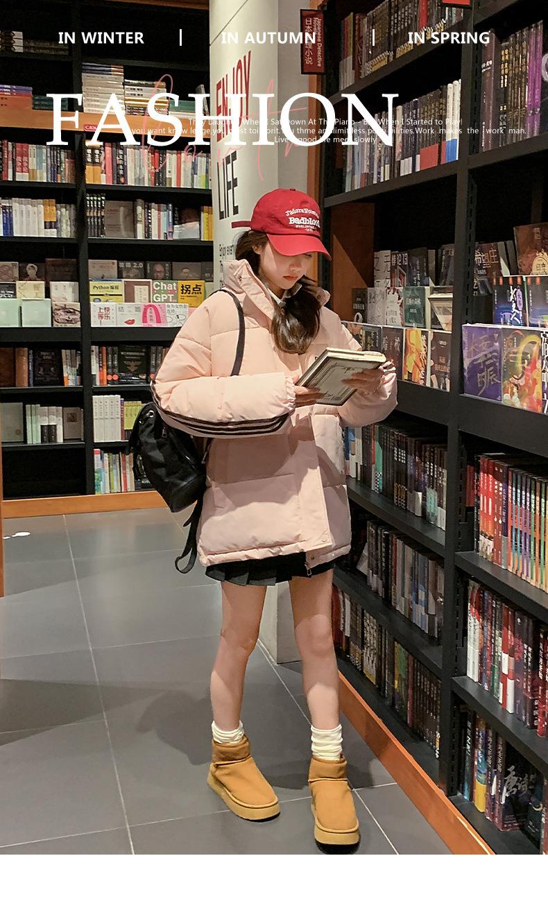 Abrigo informal de algodón acolchado con contraste para mujer, chaqueta cálida de invierno, corta, holgada, estilo coreano, con cuello acolchado de algodón, 2024
