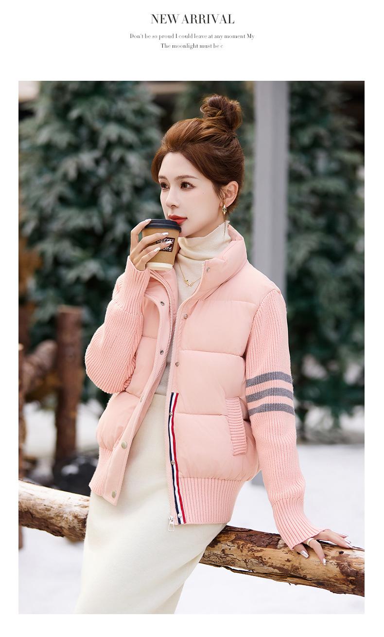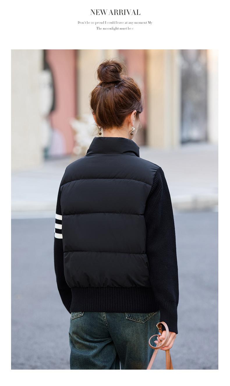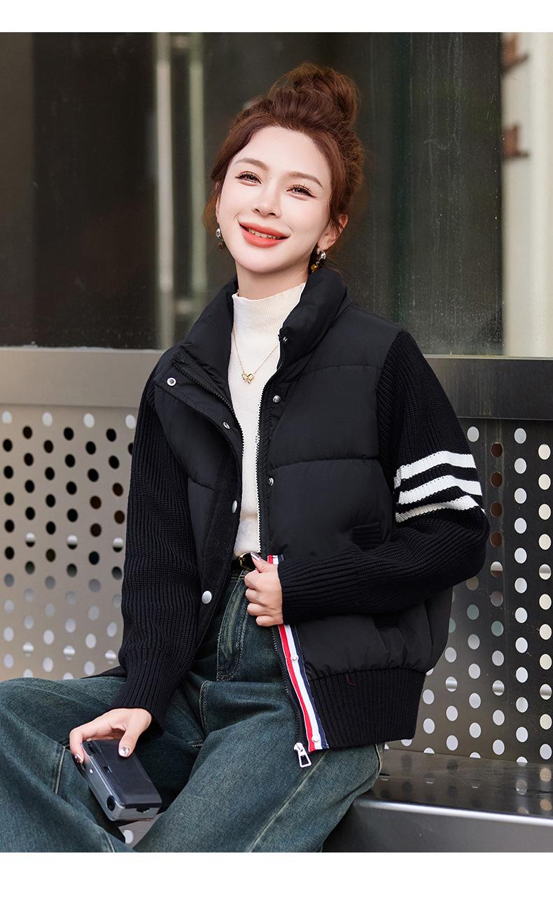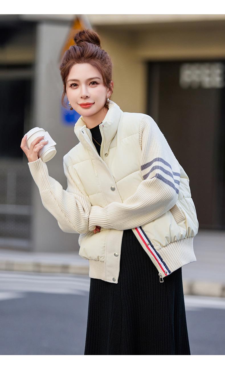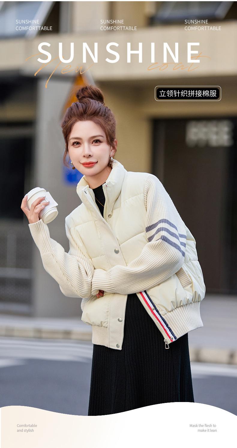 Chaqueta ligera de algodón acolchado con costuras de punto para mujer, moda de invierno 2024, cuello a rayas de colores contrastantes, chaqueta informal de algodón acolchado