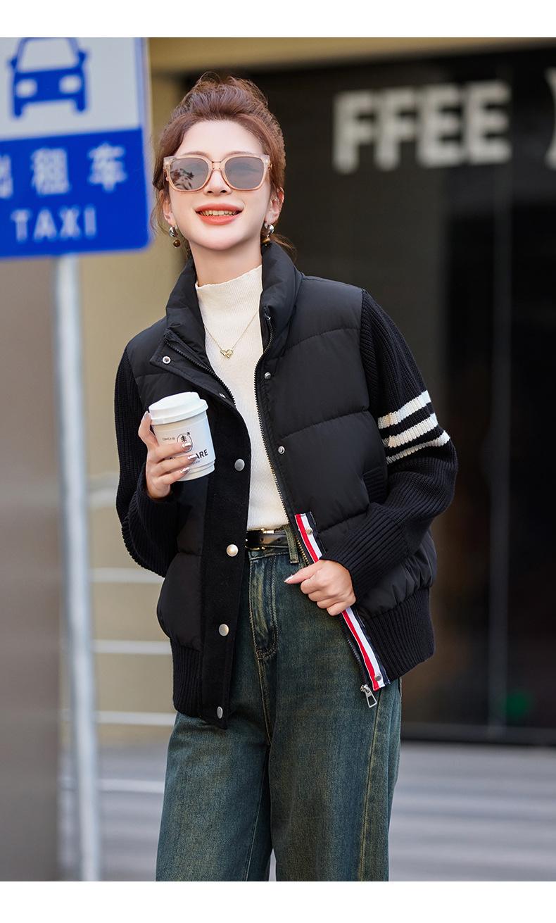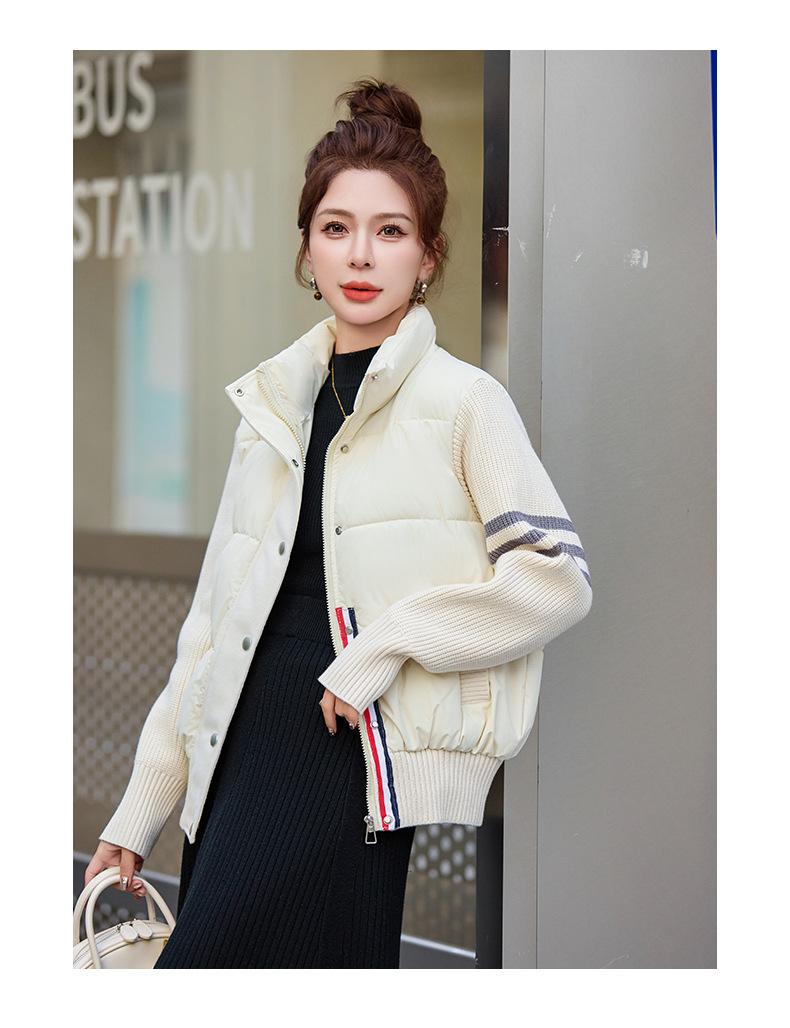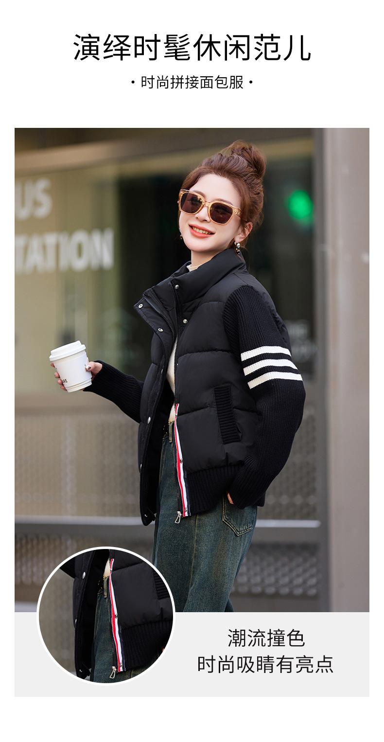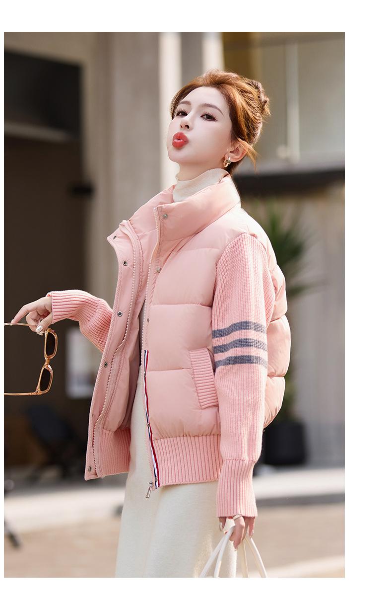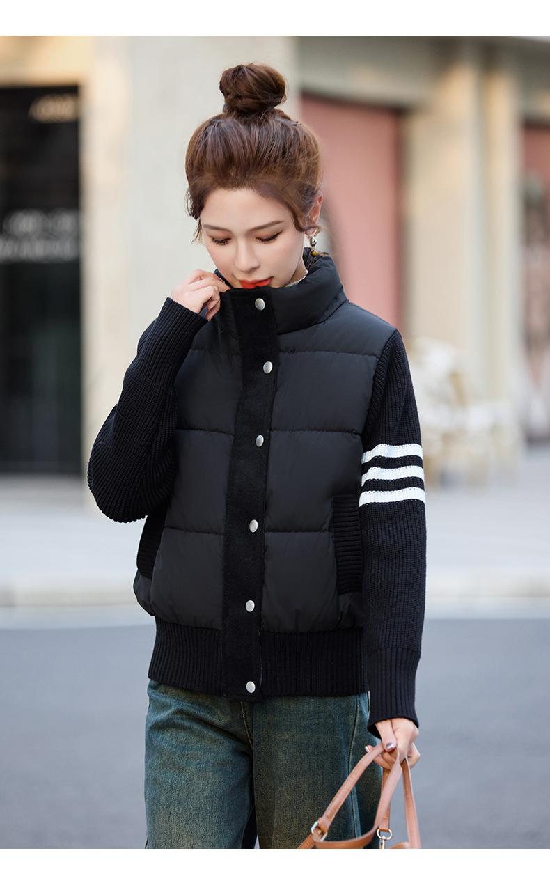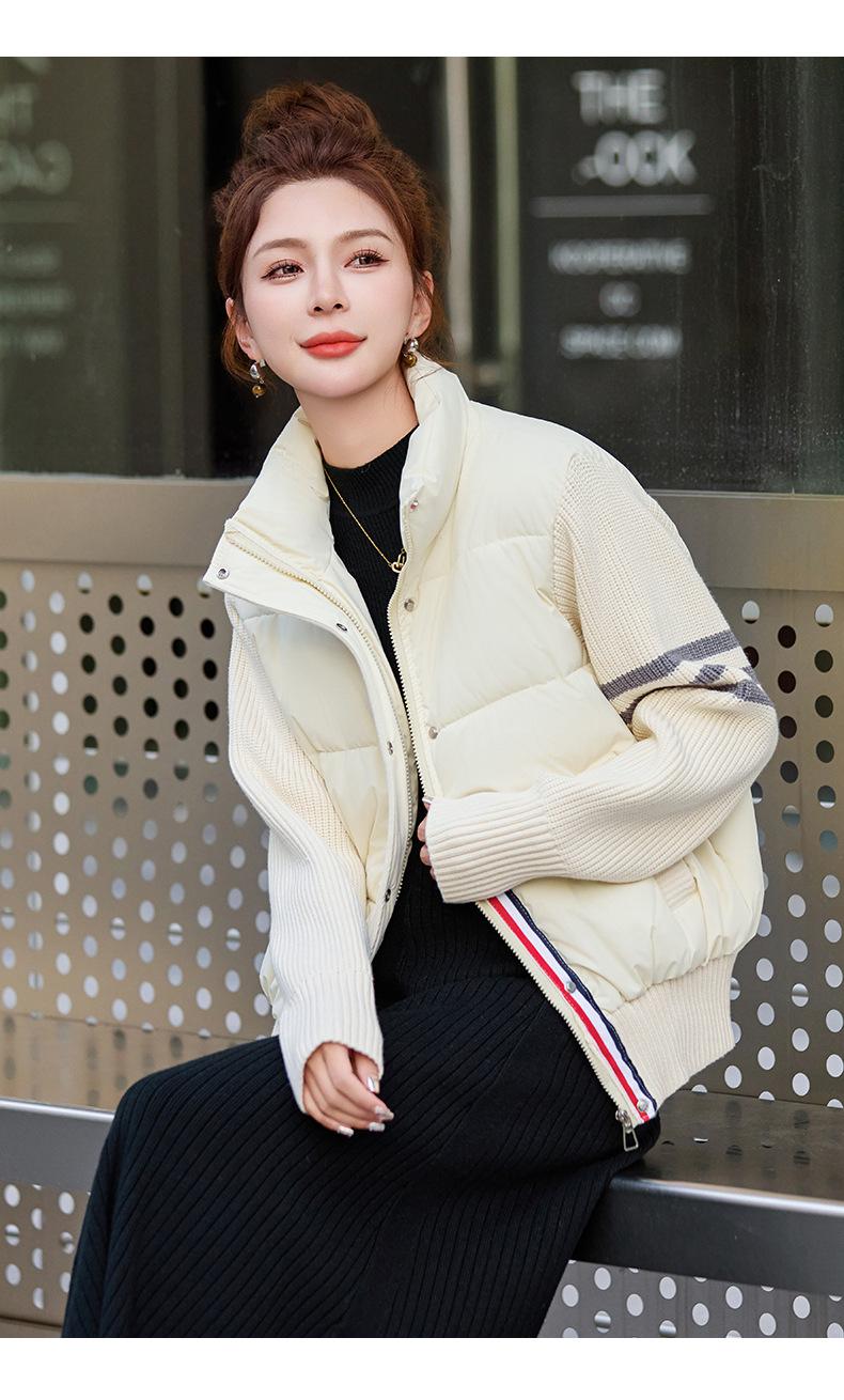 Chaqueta ligera de algodón acolchado con costuras de punto para mujer, moda de invierno 2024, cuello a rayas de colores contrastantes, chaqueta informal de algodón acolchado