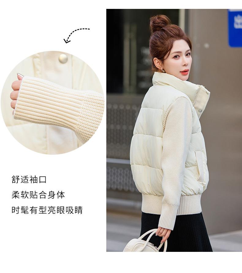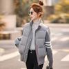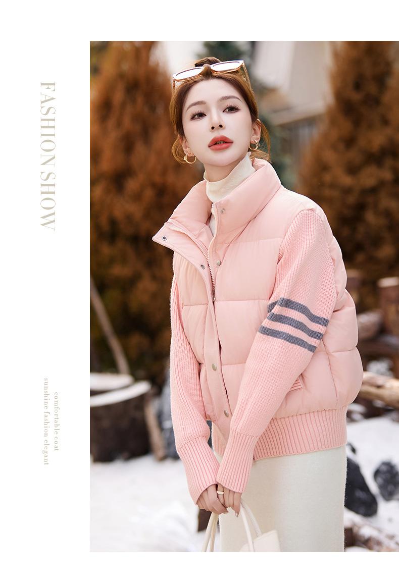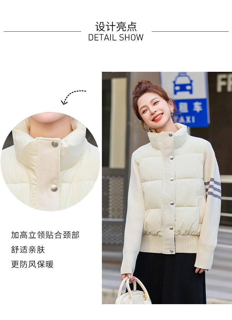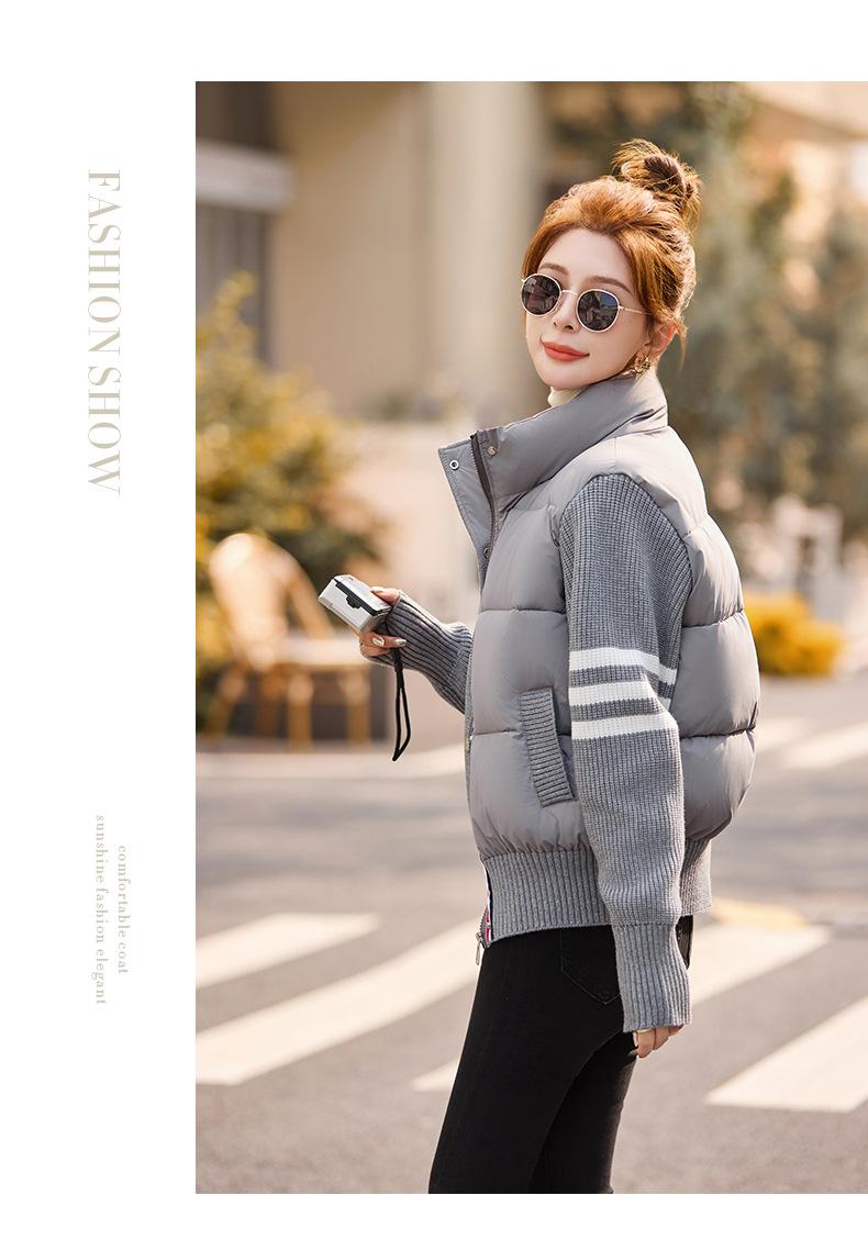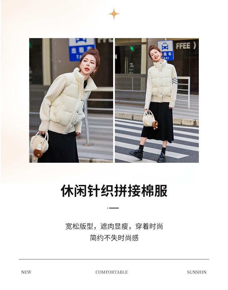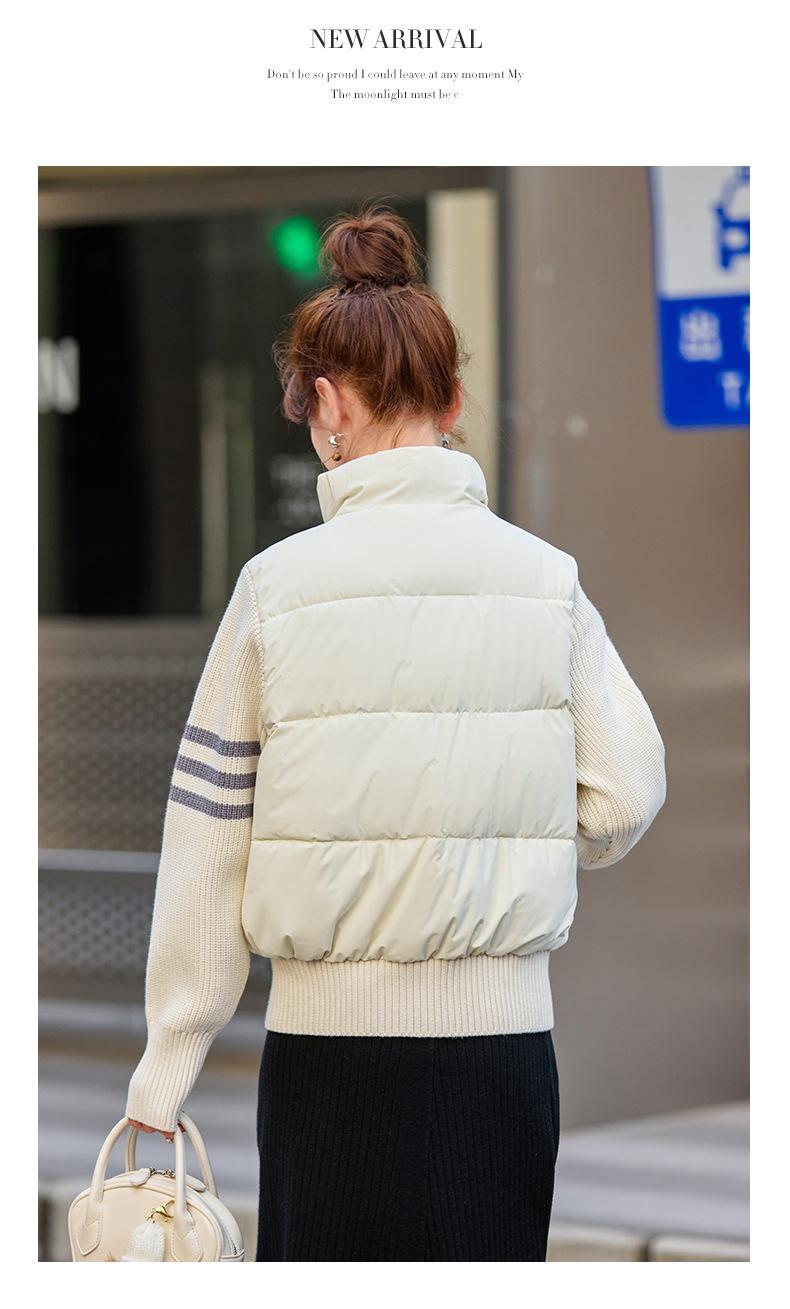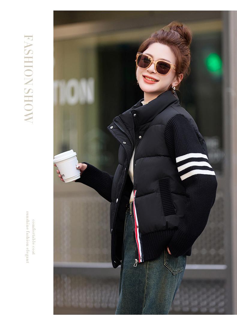 Chaqueta ligera de algodón acolchado con costuras de punto para mujer, moda de invierno 2024, cuello a rayas de colores contrastantes, chaqueta informal de algodón acolchado