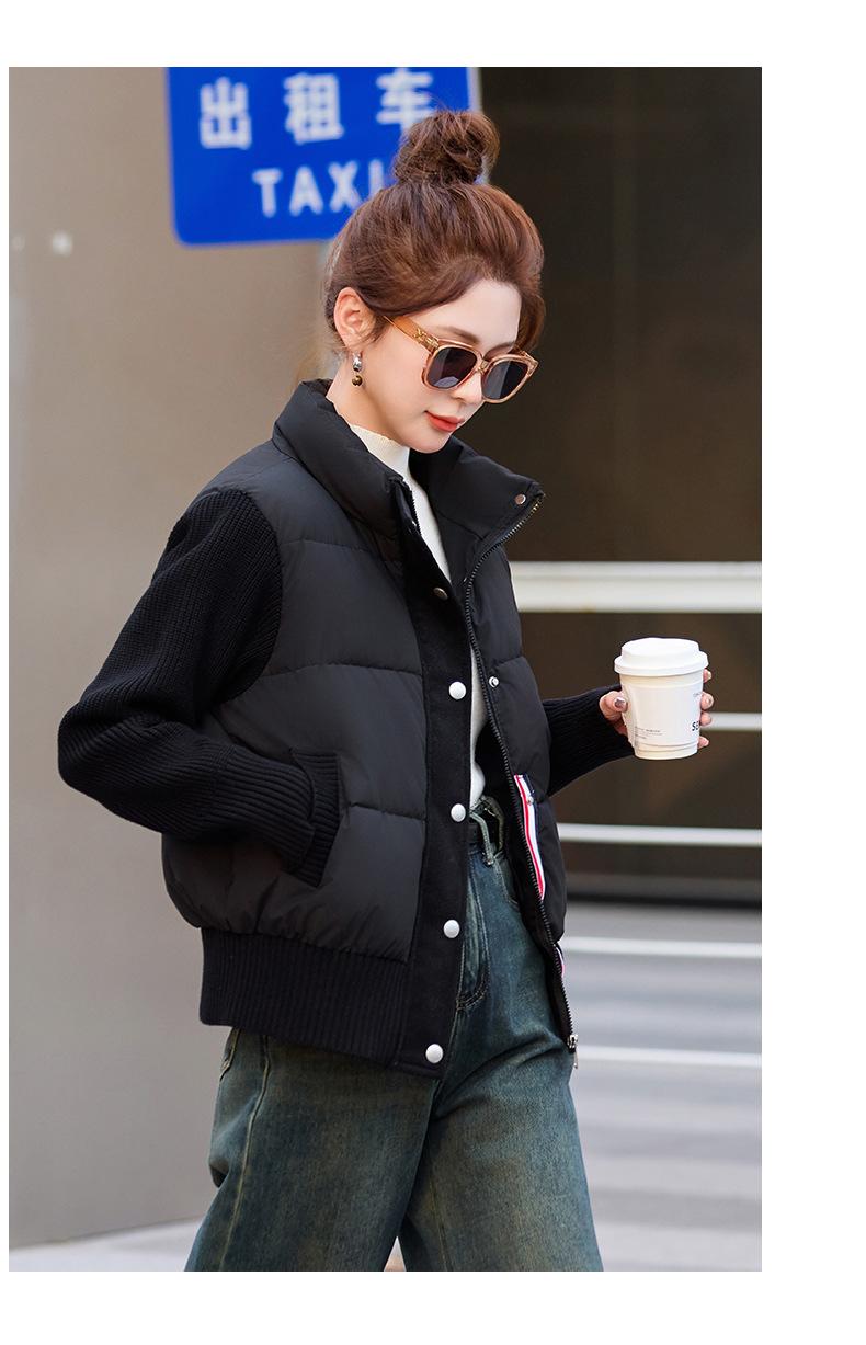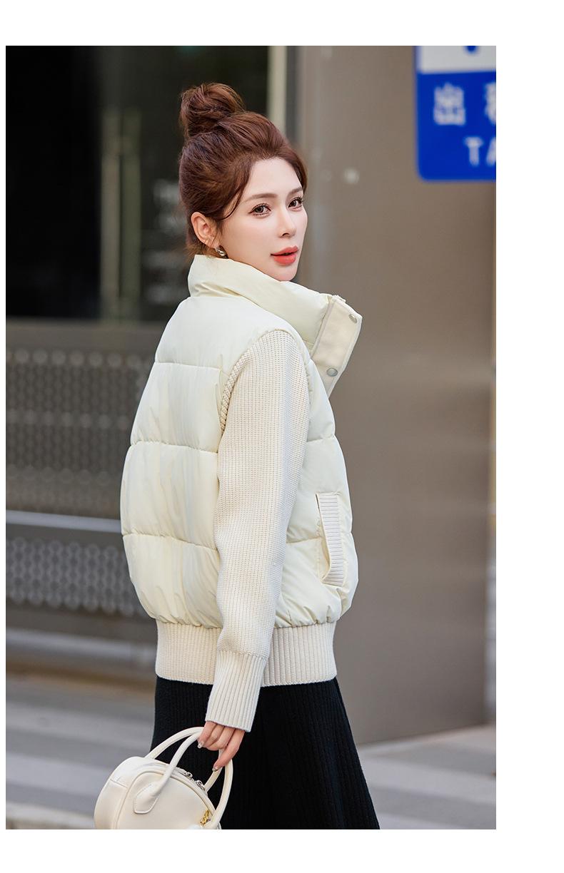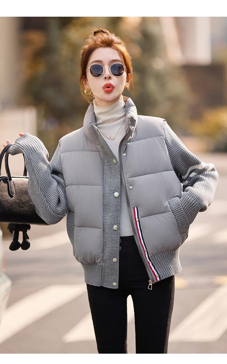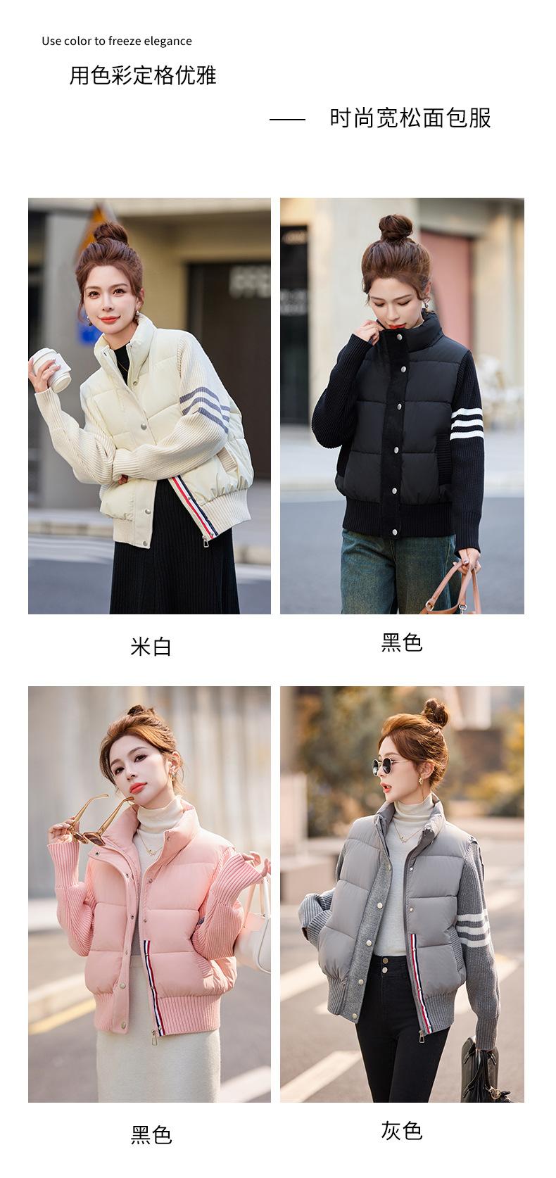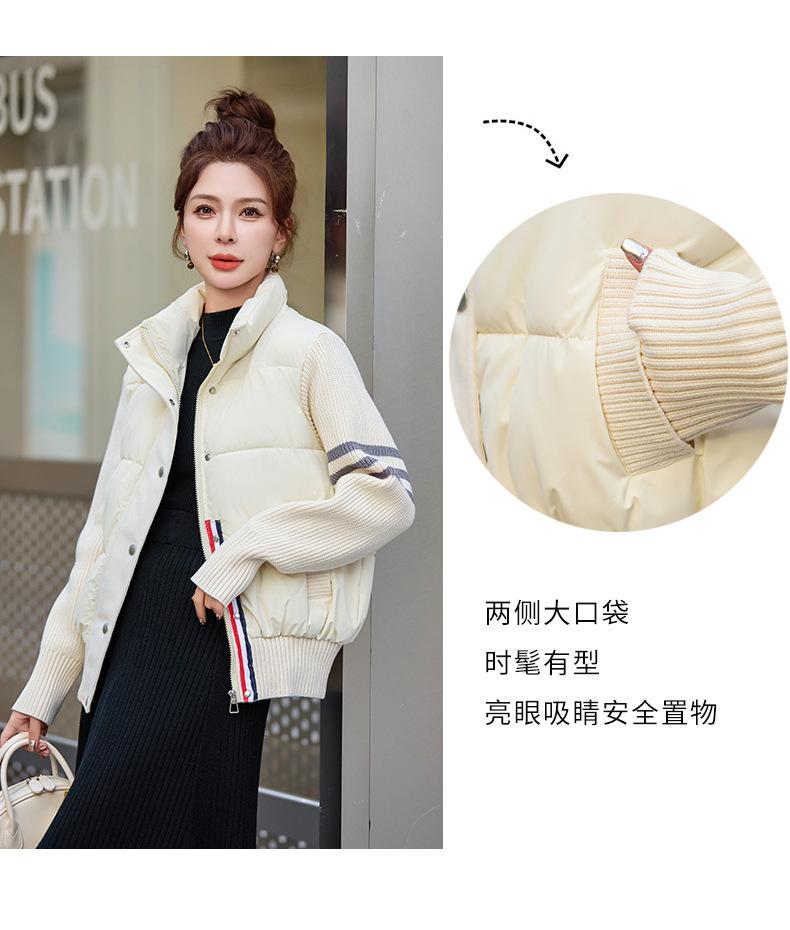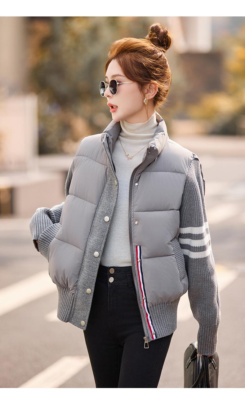 Chaqueta ligera de algodón acolchado con costuras de punto para mujer, moda de invierno 2024, cuello a rayas de colores contrastantes, chaqueta informal de algodón acolchado