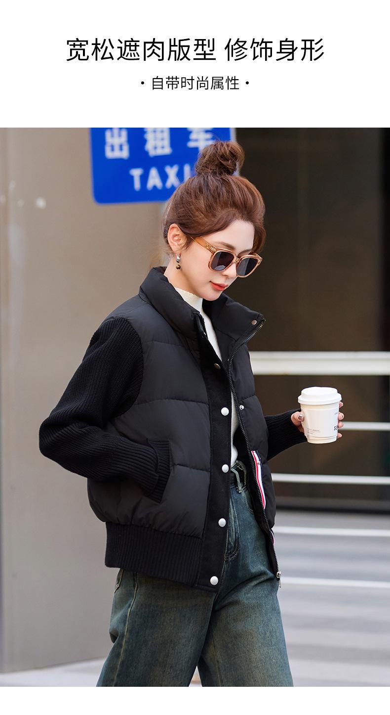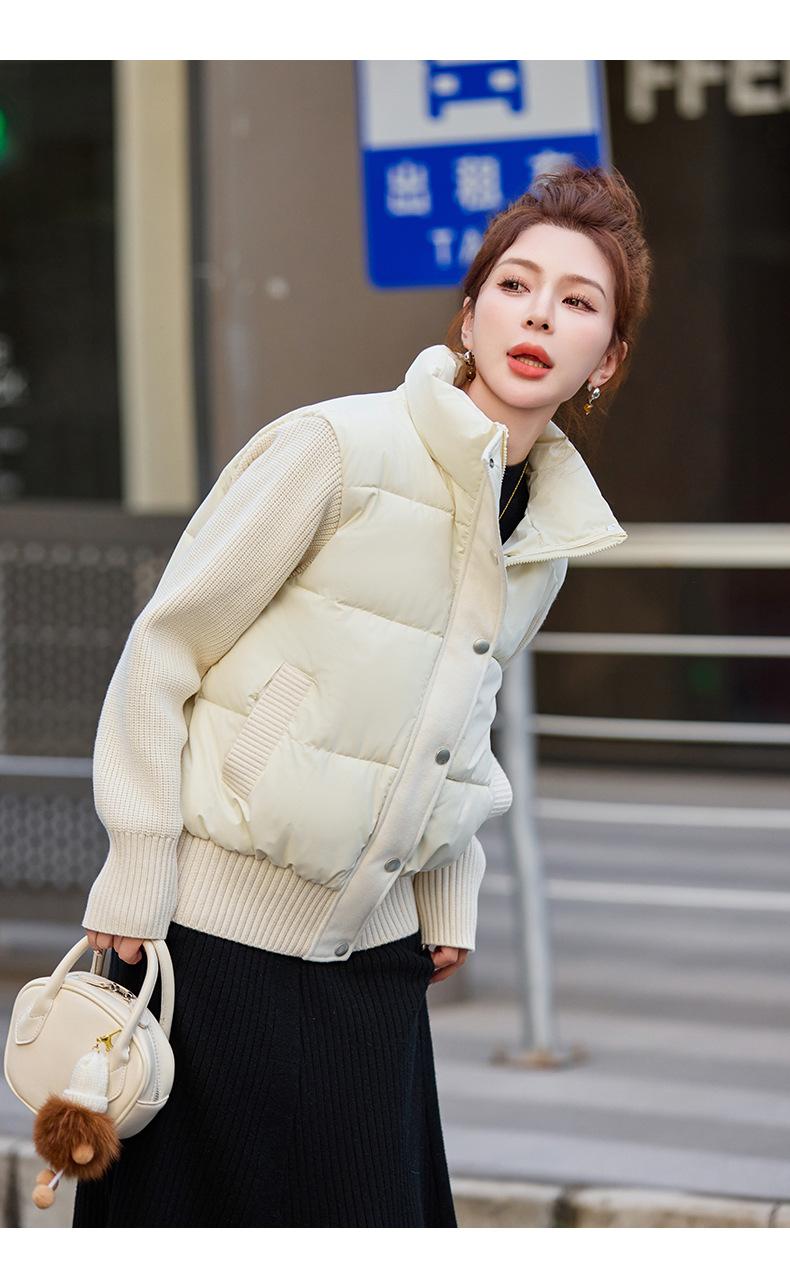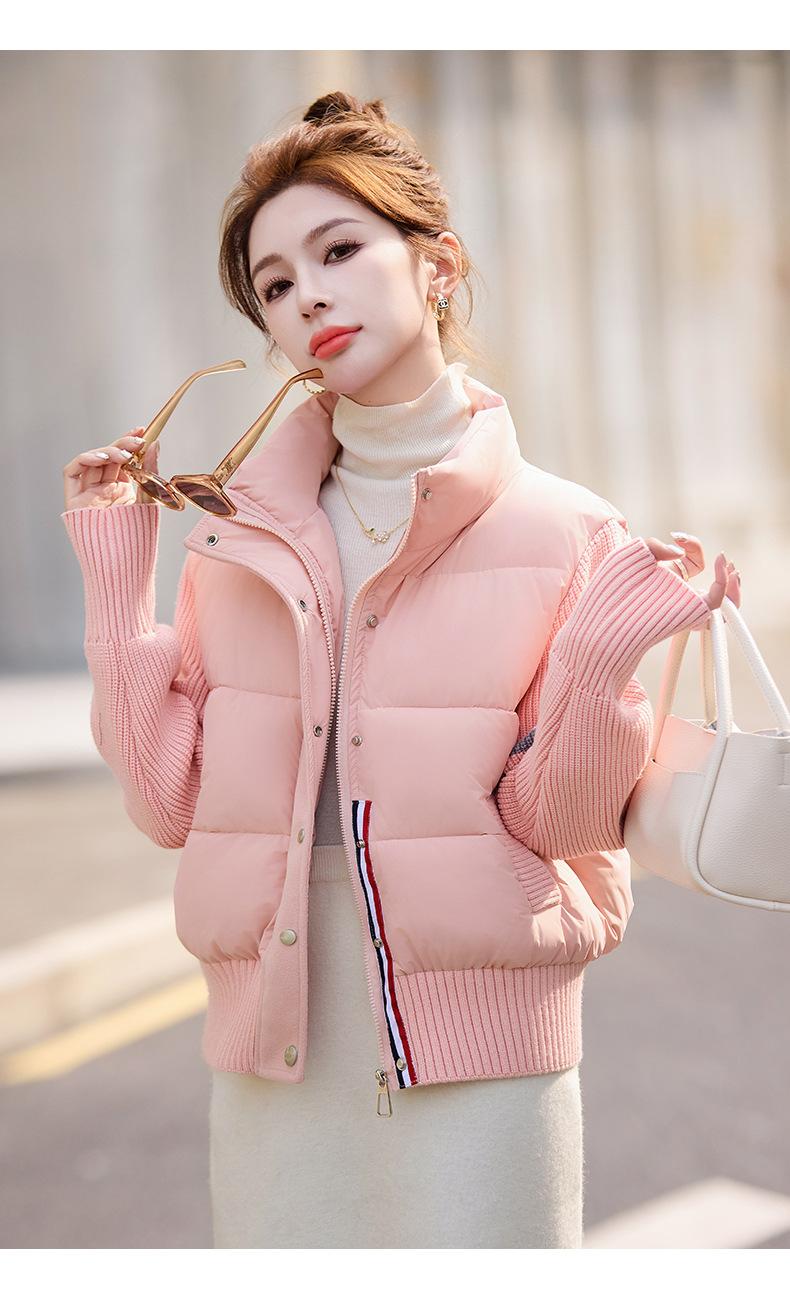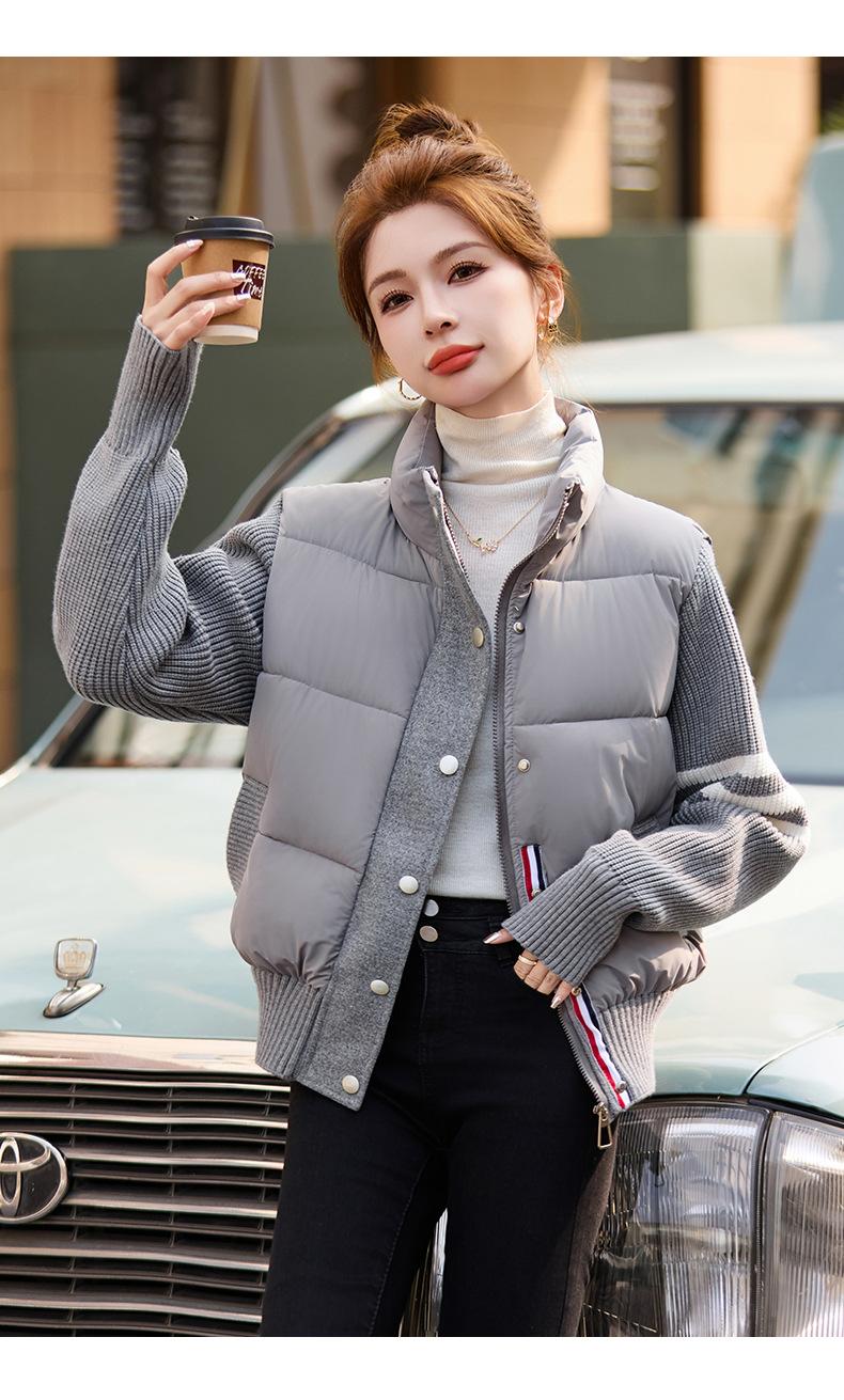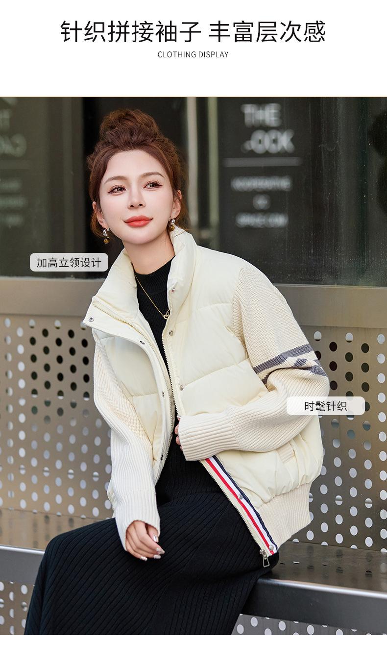 Chaqueta ligera de algodón acolchado con costuras de punto para mujer, moda de invierno 2024, cuello a rayas de colores contrastantes, chaqueta informal de algodón acolchado