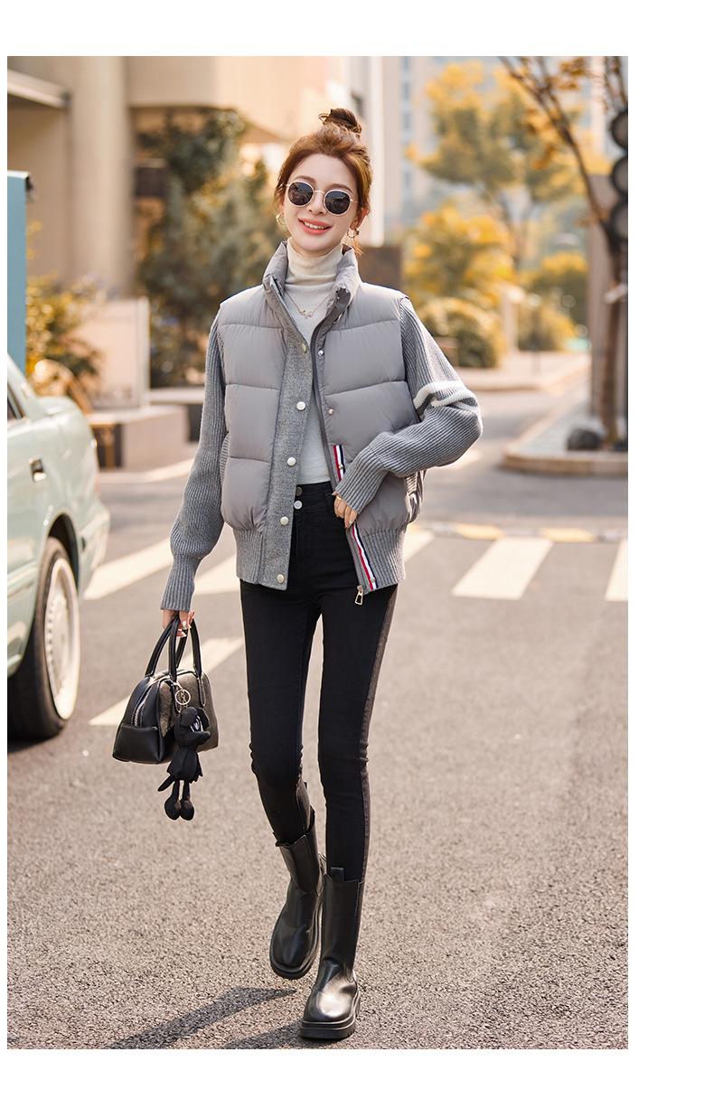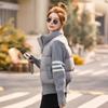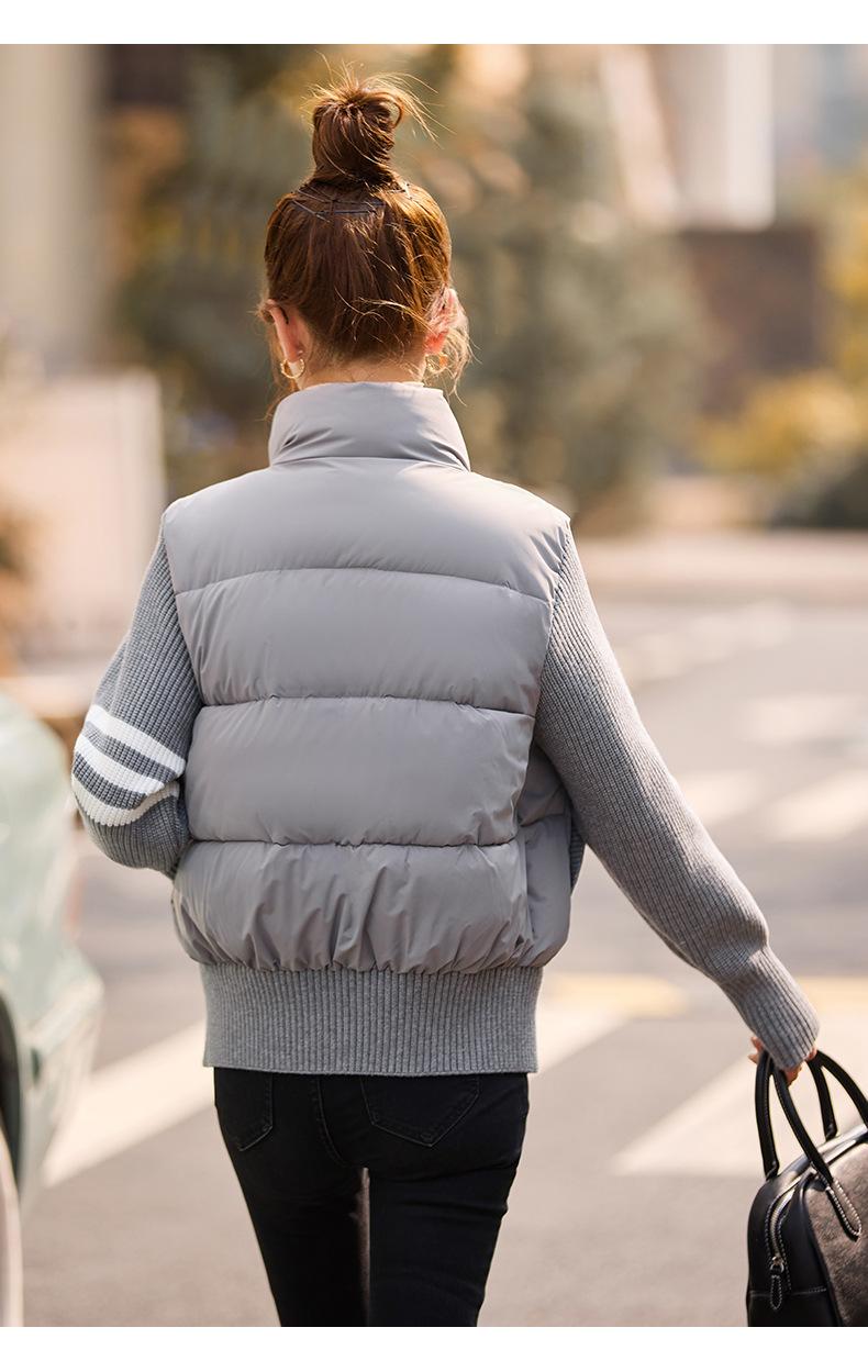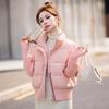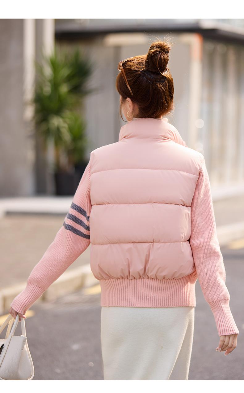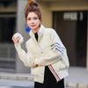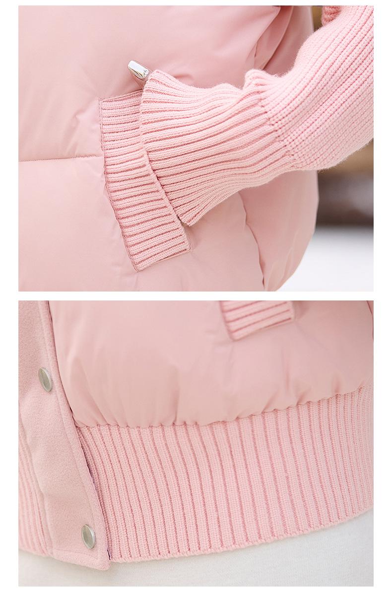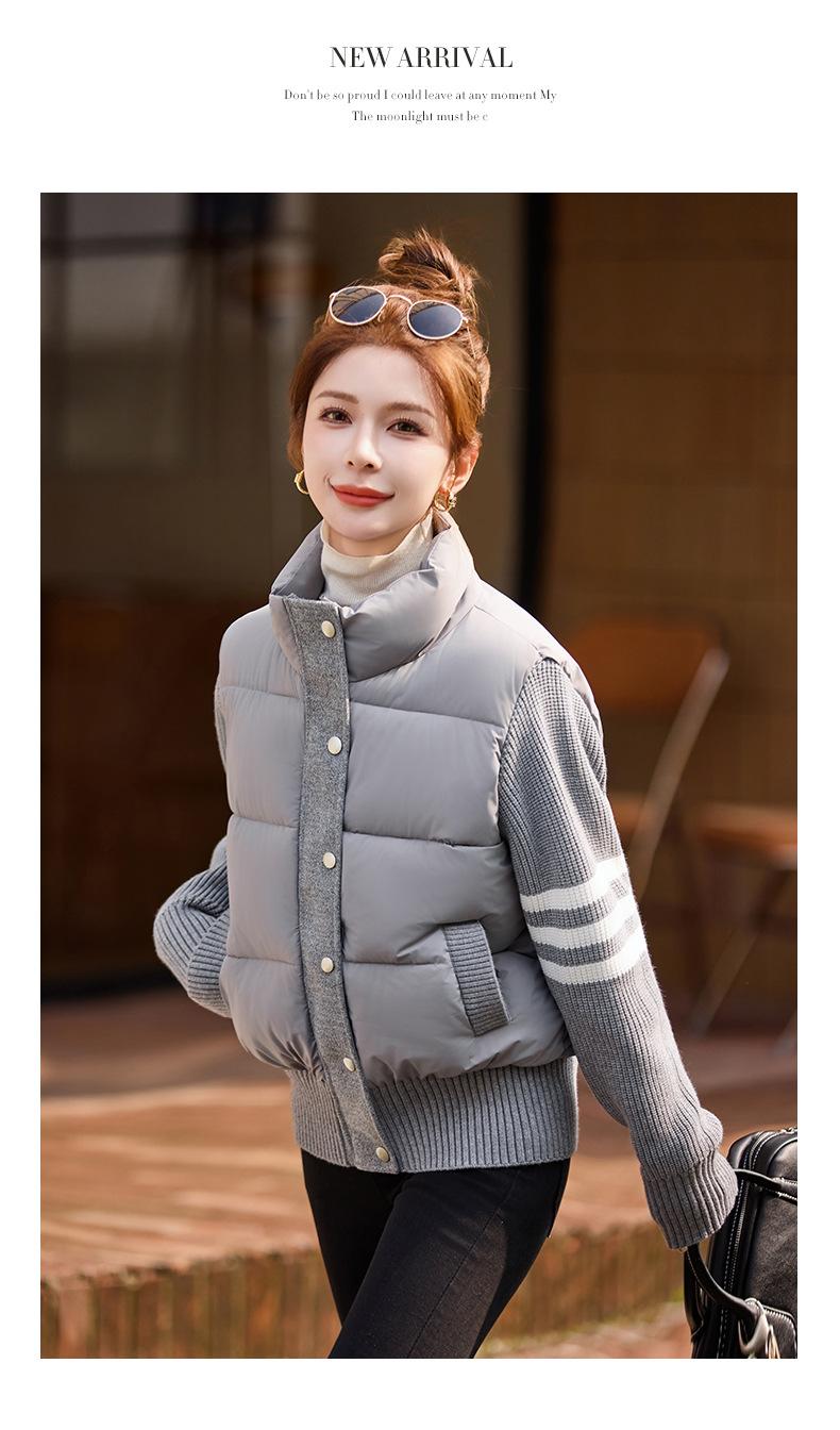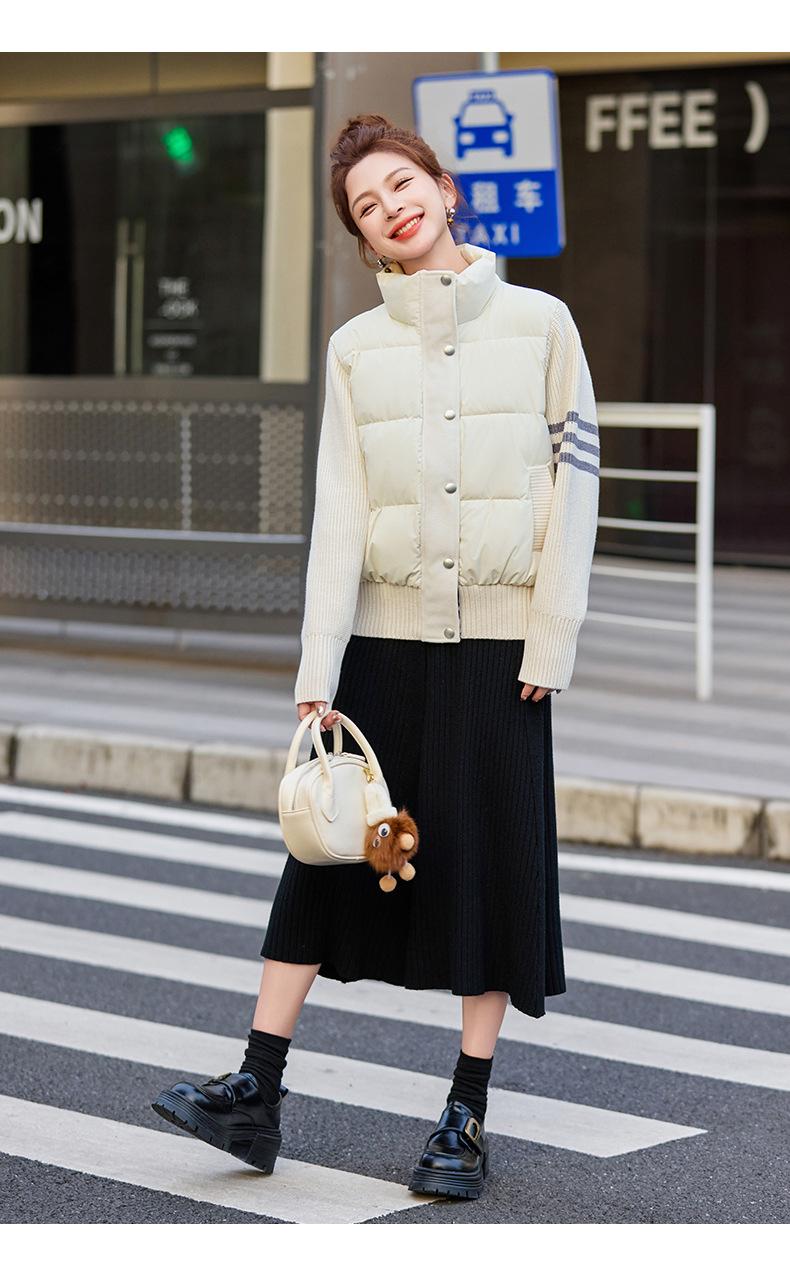Chaqueta ligera de algodón acolchado con costuras de punto para mujer, moda de invierno 2024, cuello a rayas de colores contrastantes, chaqueta informal de algodón acolchado