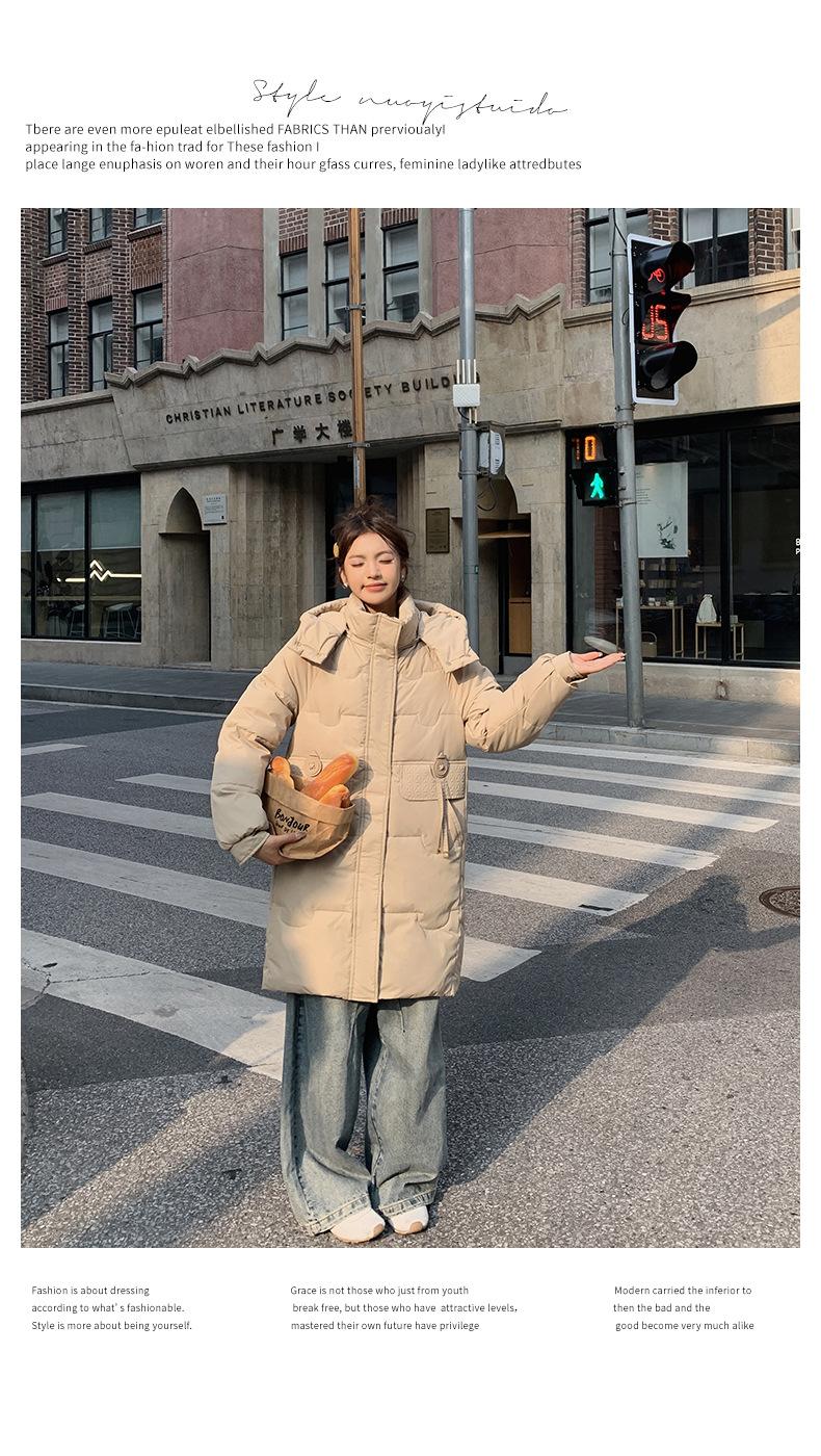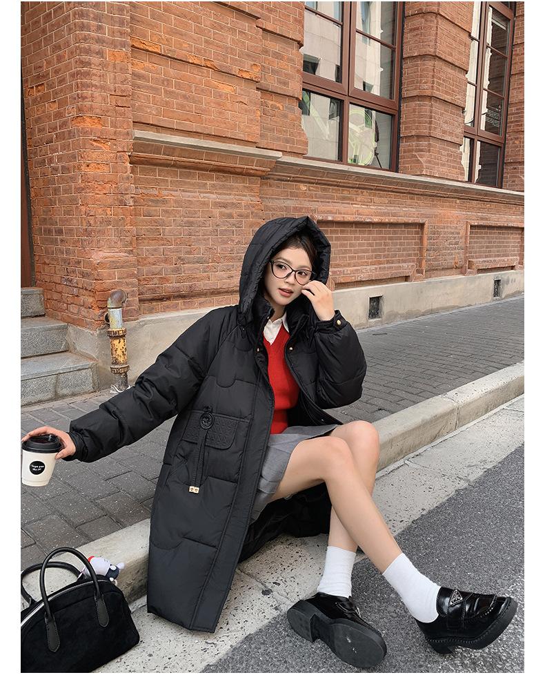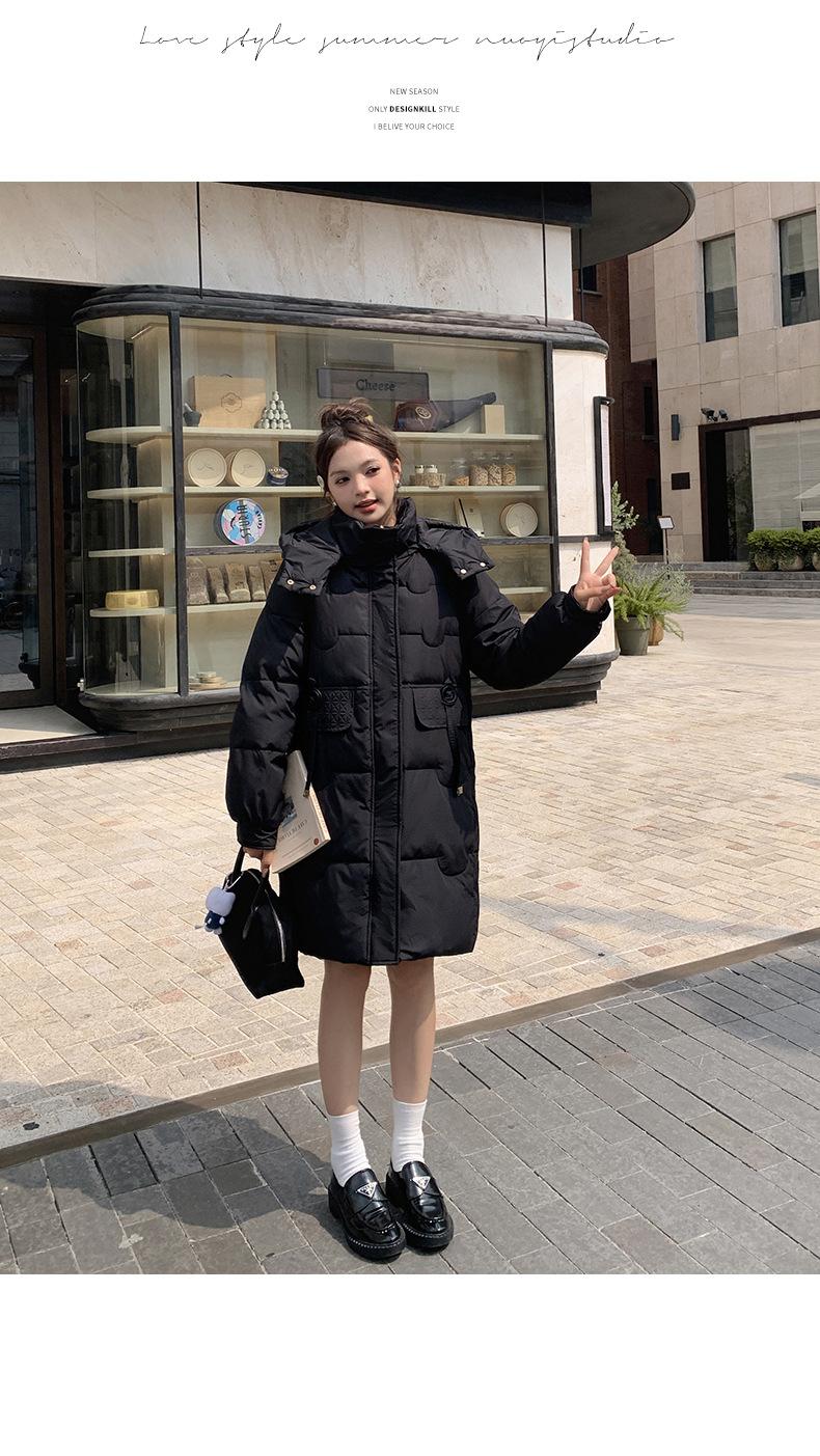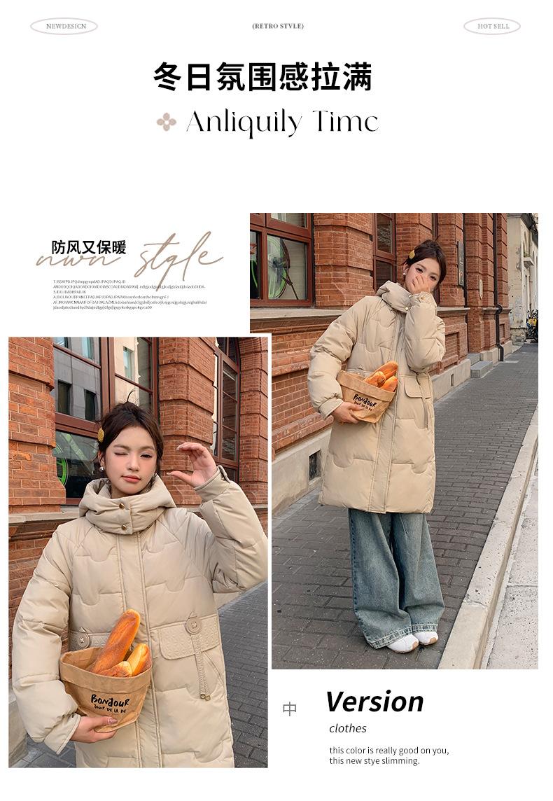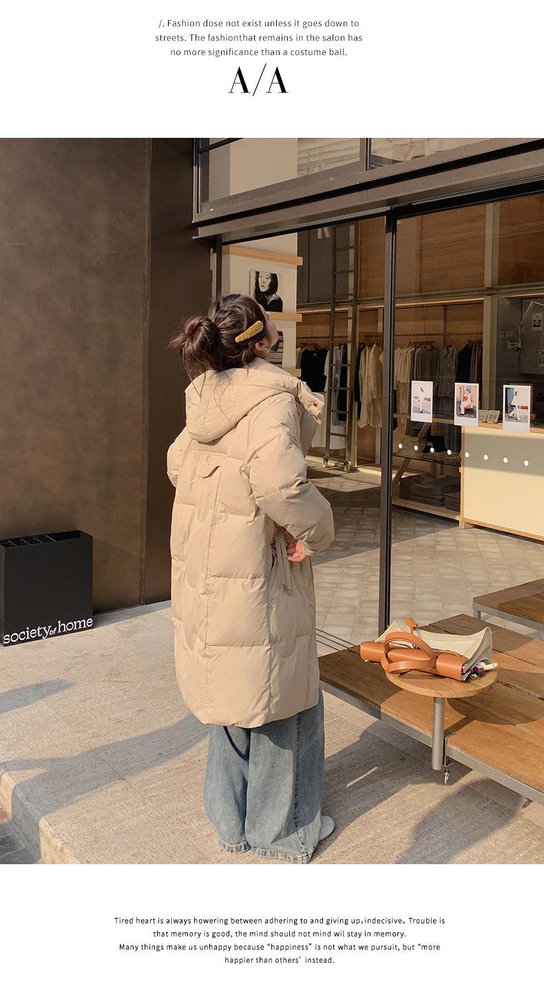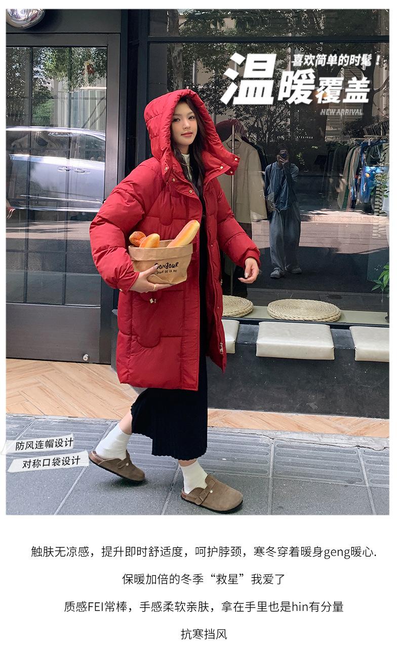 Chaqueta acolchada de algodón de plumón para mujer, nueva moda 2024, de longitud media, holgada, de invierno, estilo coreano, con capucha y acolchado de algodón.
