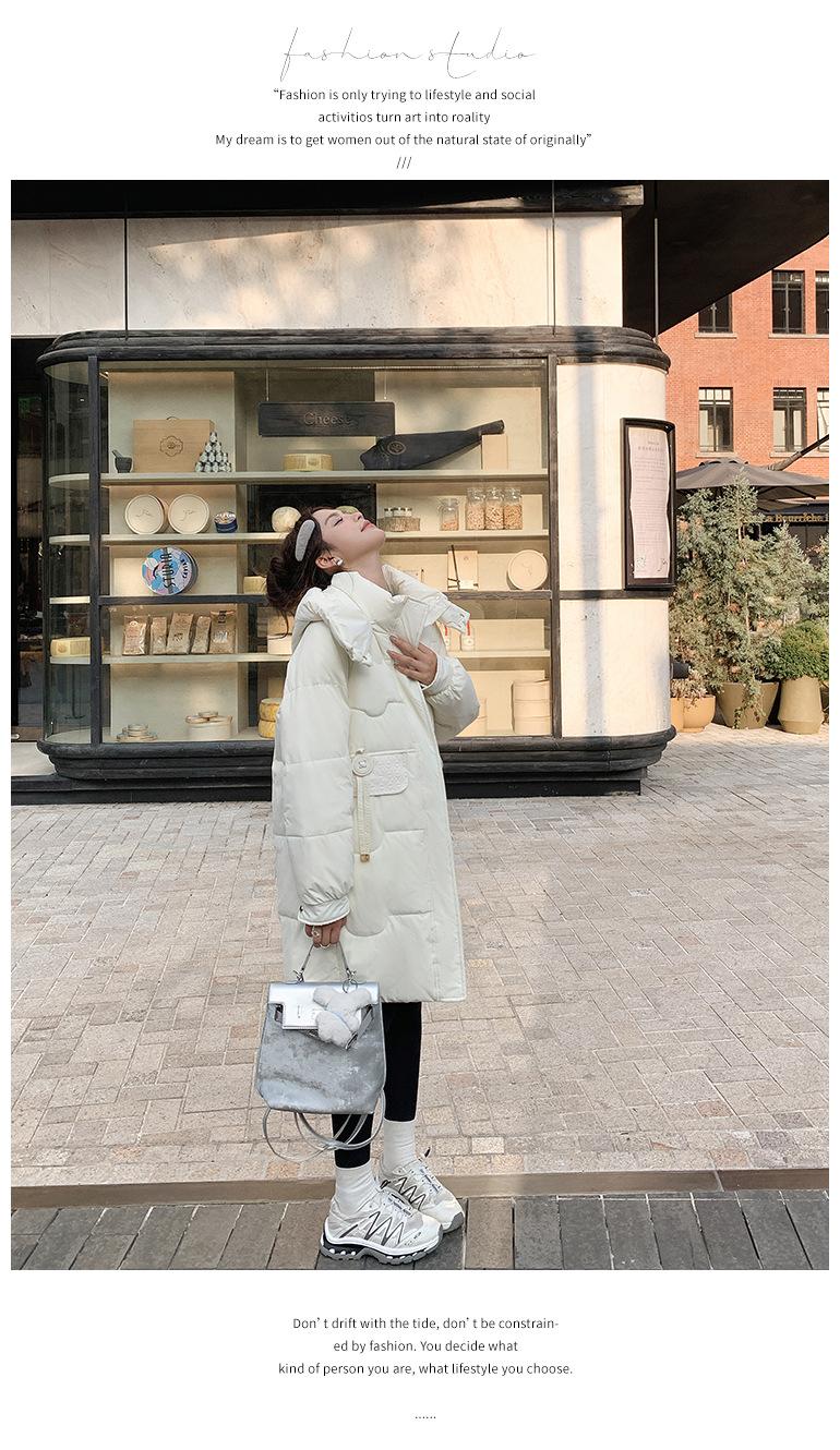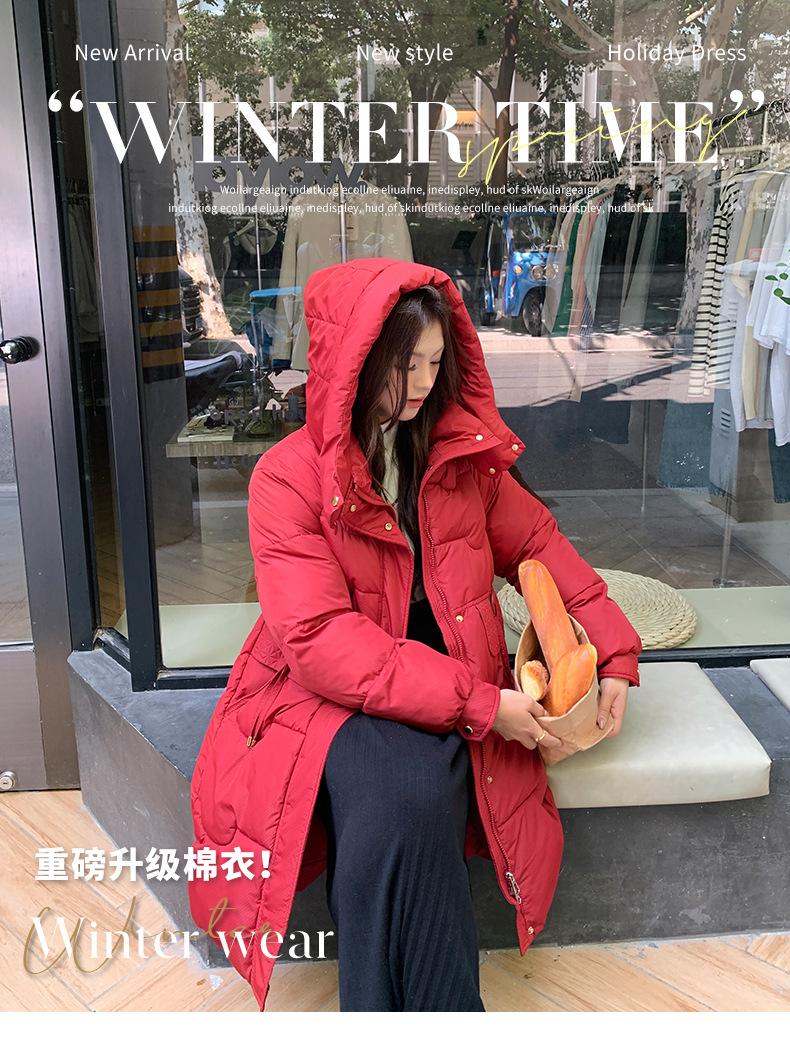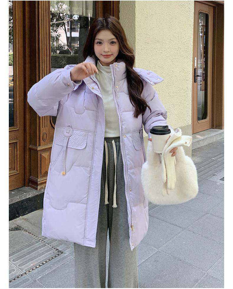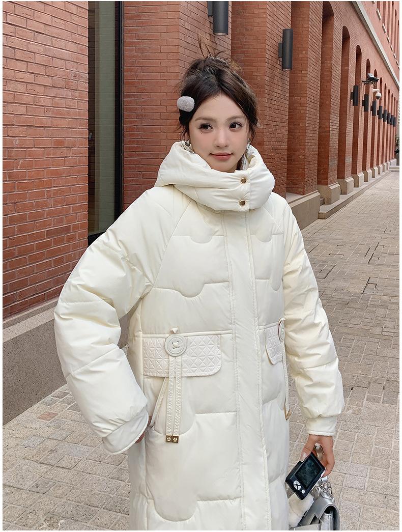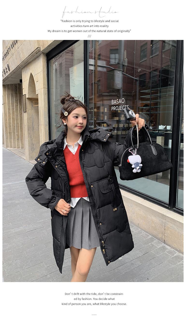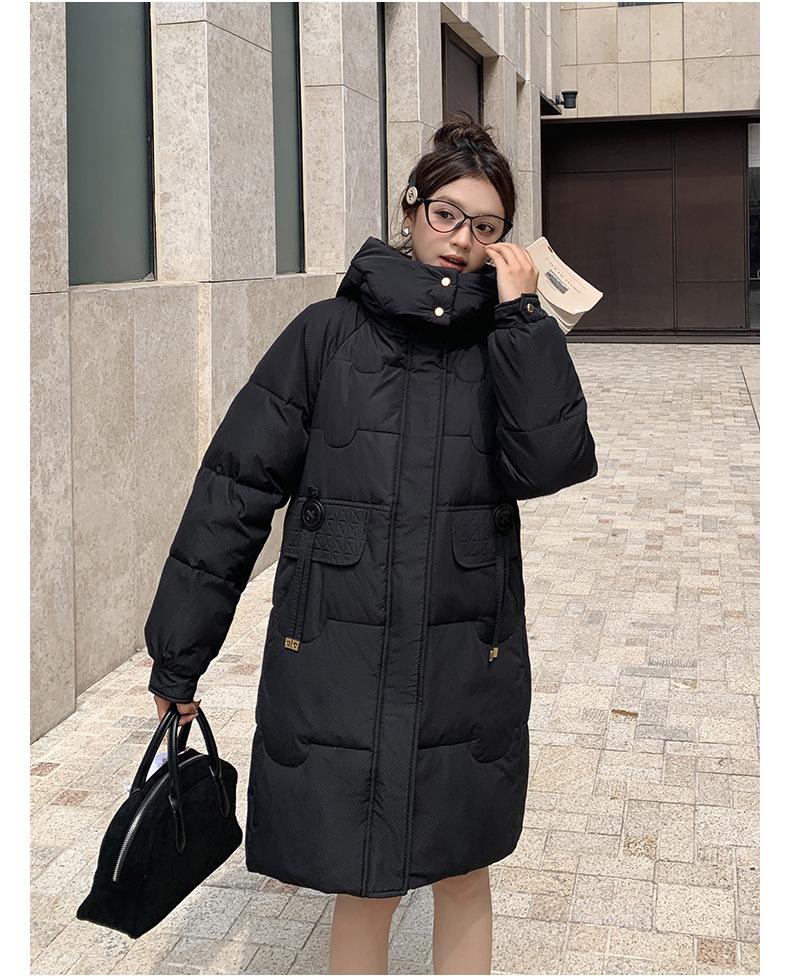 Chaqueta acolchada de algodón de plumón para mujer, nueva moda 2024, de longitud media, holgada, de invierno, estilo coreano, con capucha y acolchado de algodón.