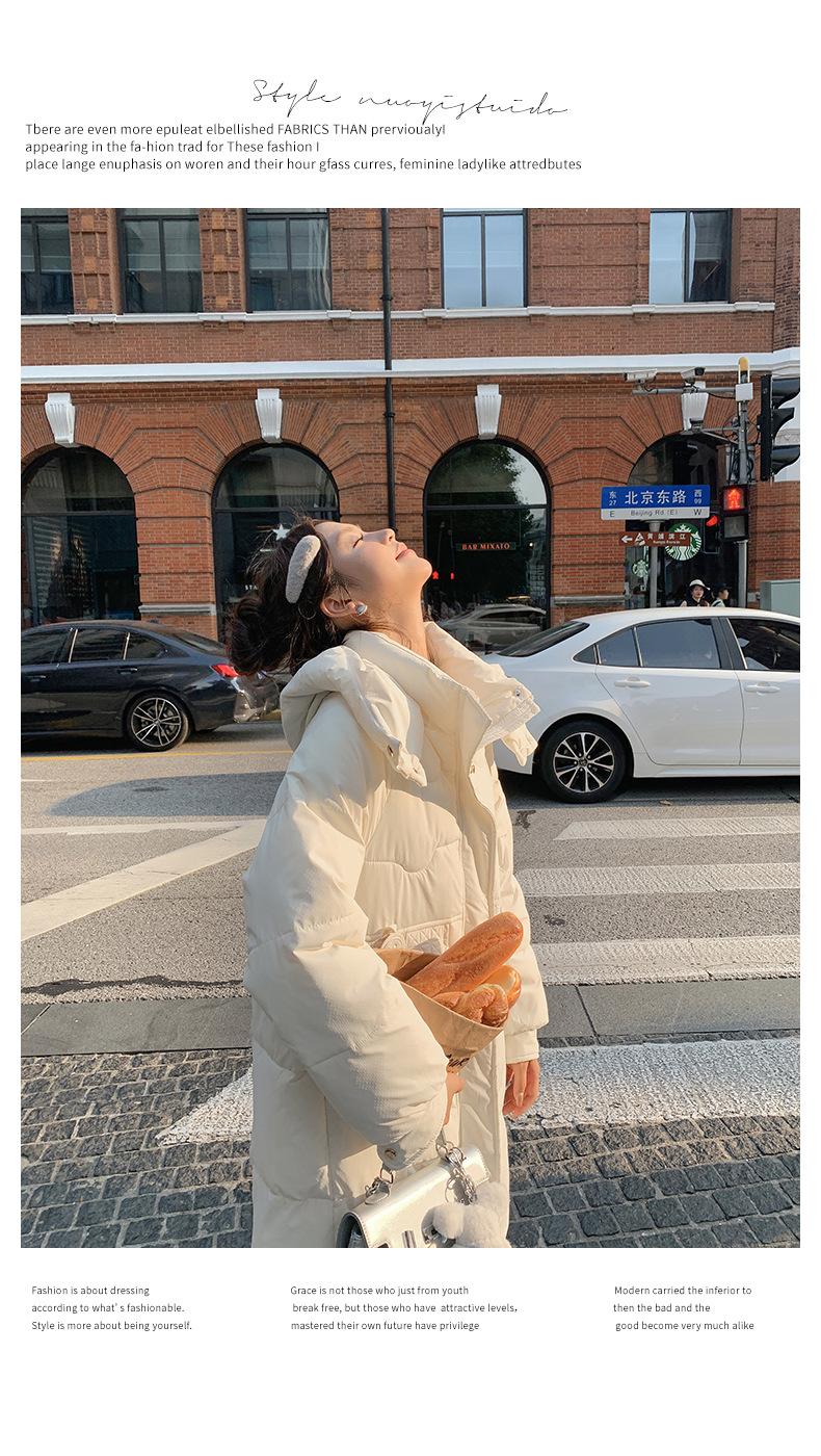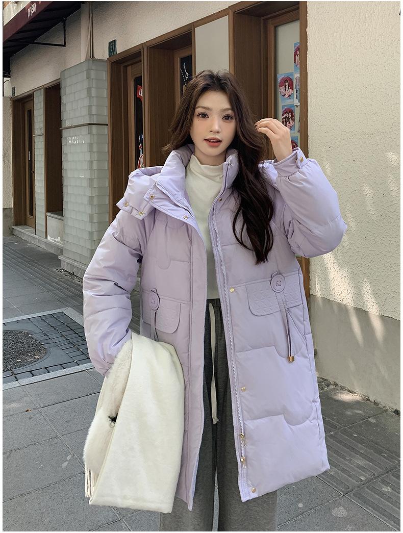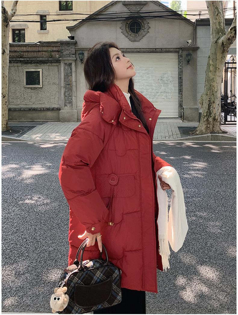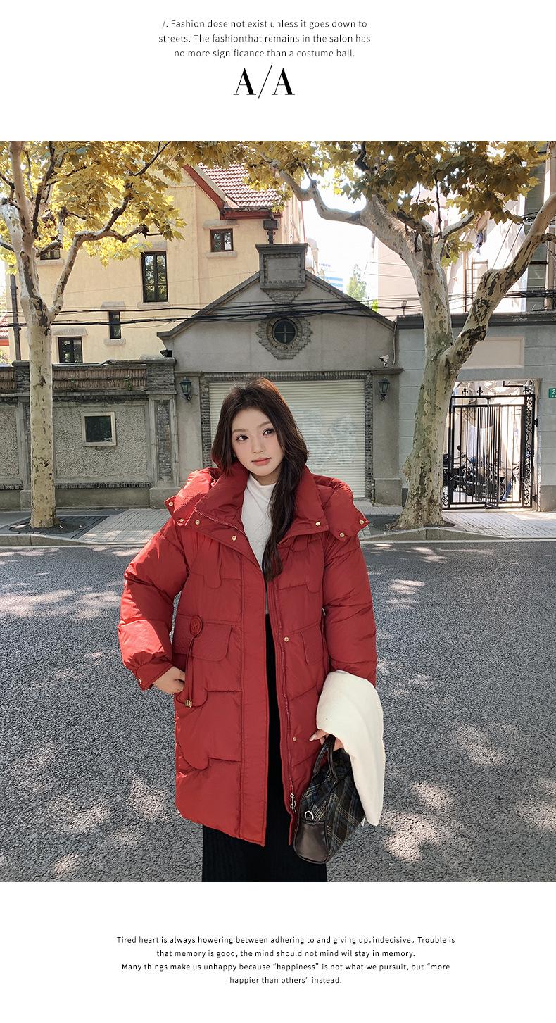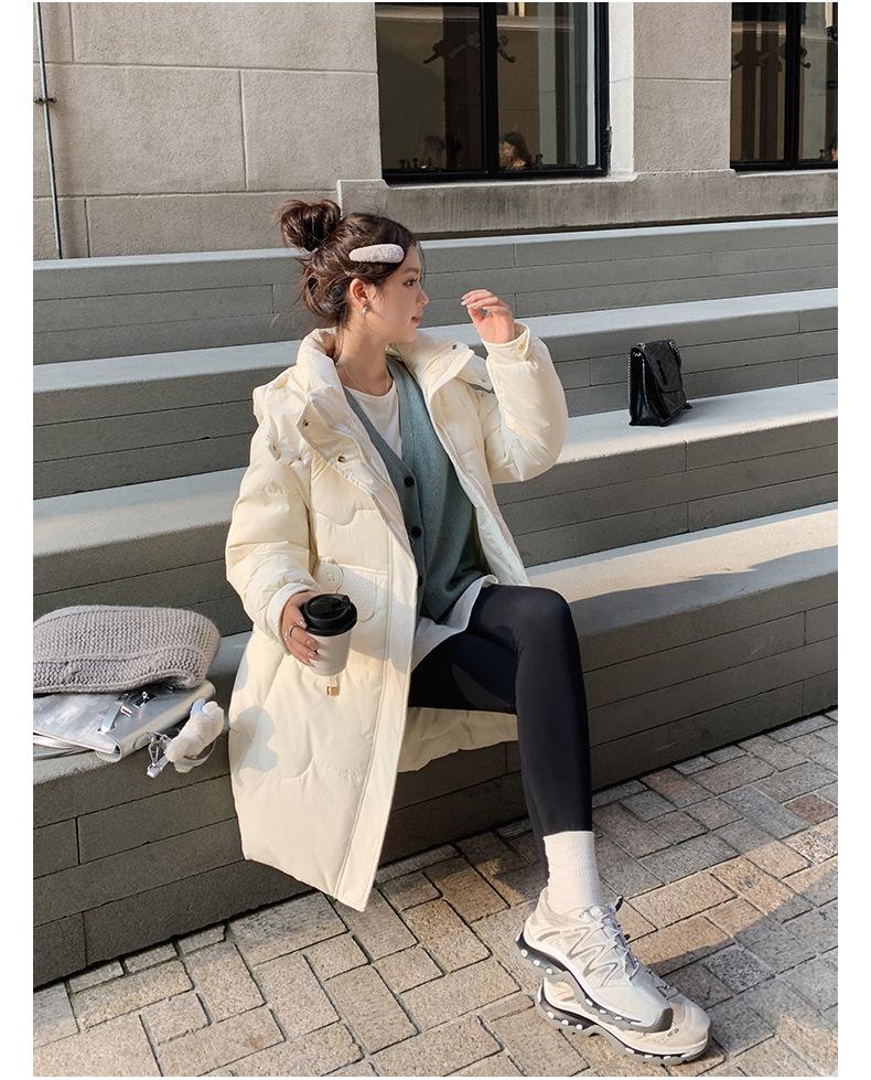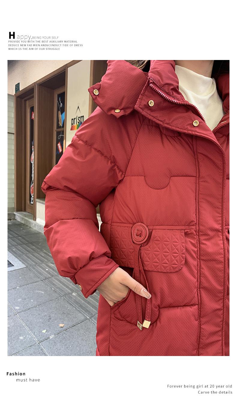 Chaqueta acolchada de algodón de plumón para mujer, nueva moda 2024, de longitud media, holgada, de invierno, estilo coreano, con capucha y acolchado de algodón.