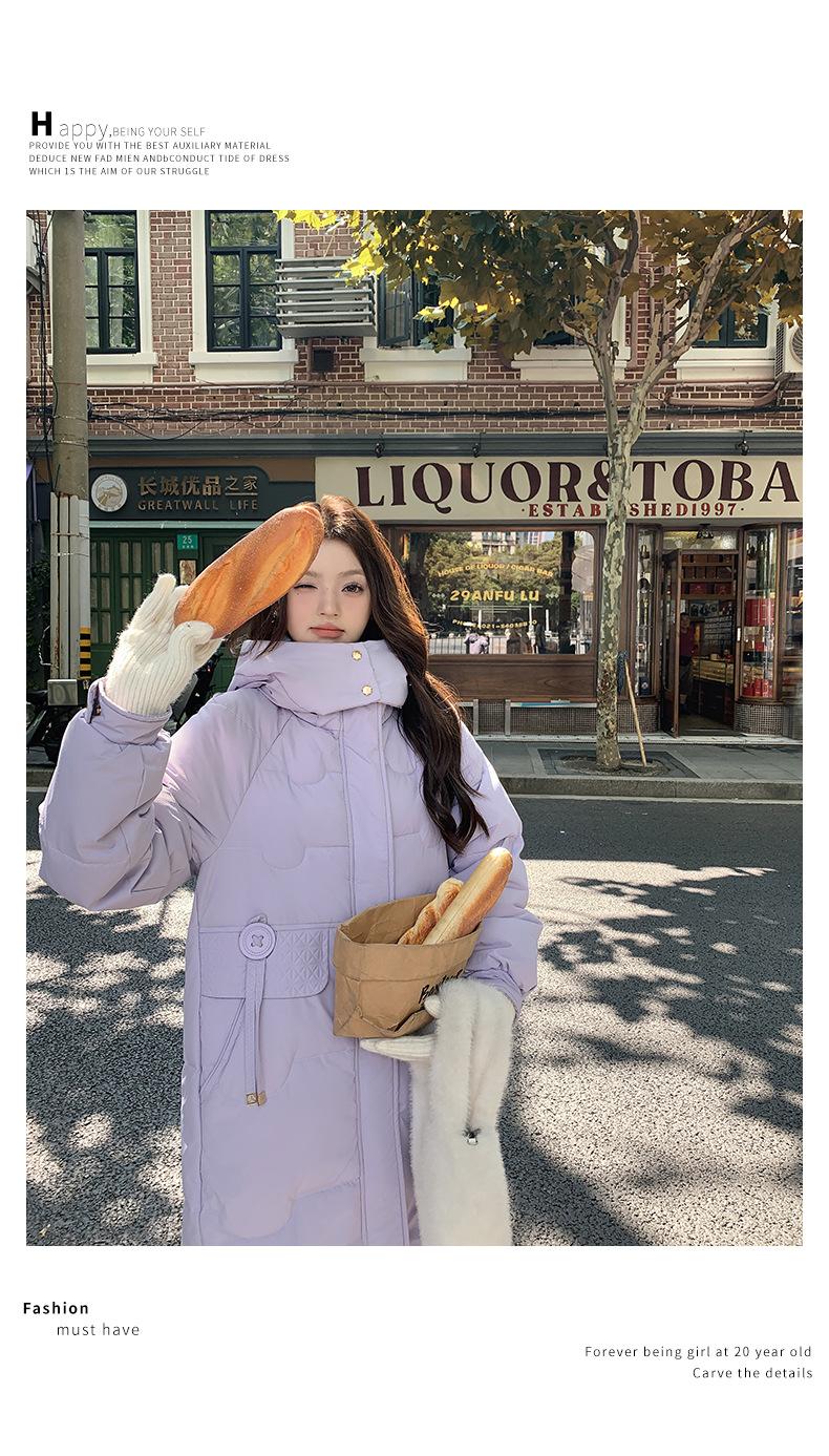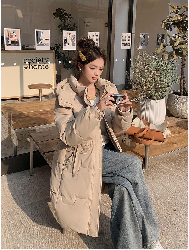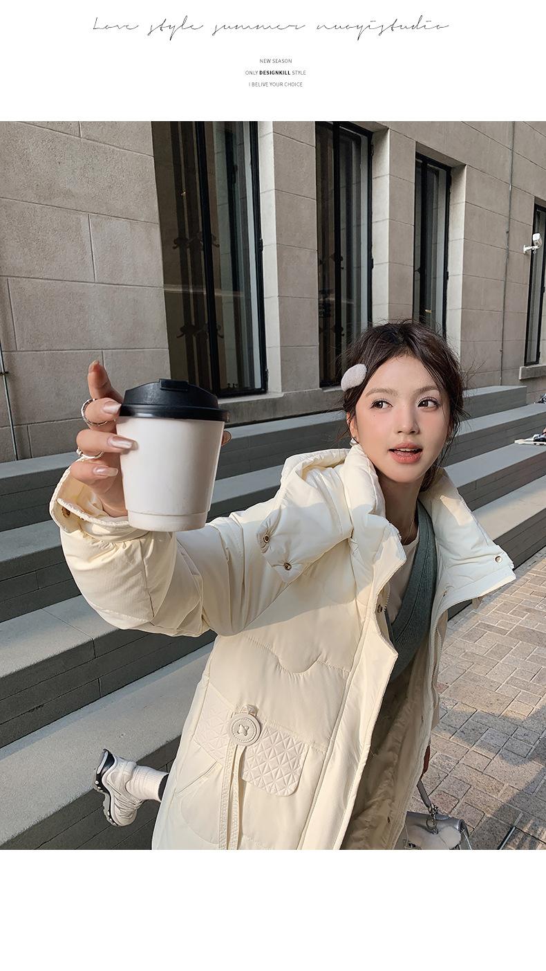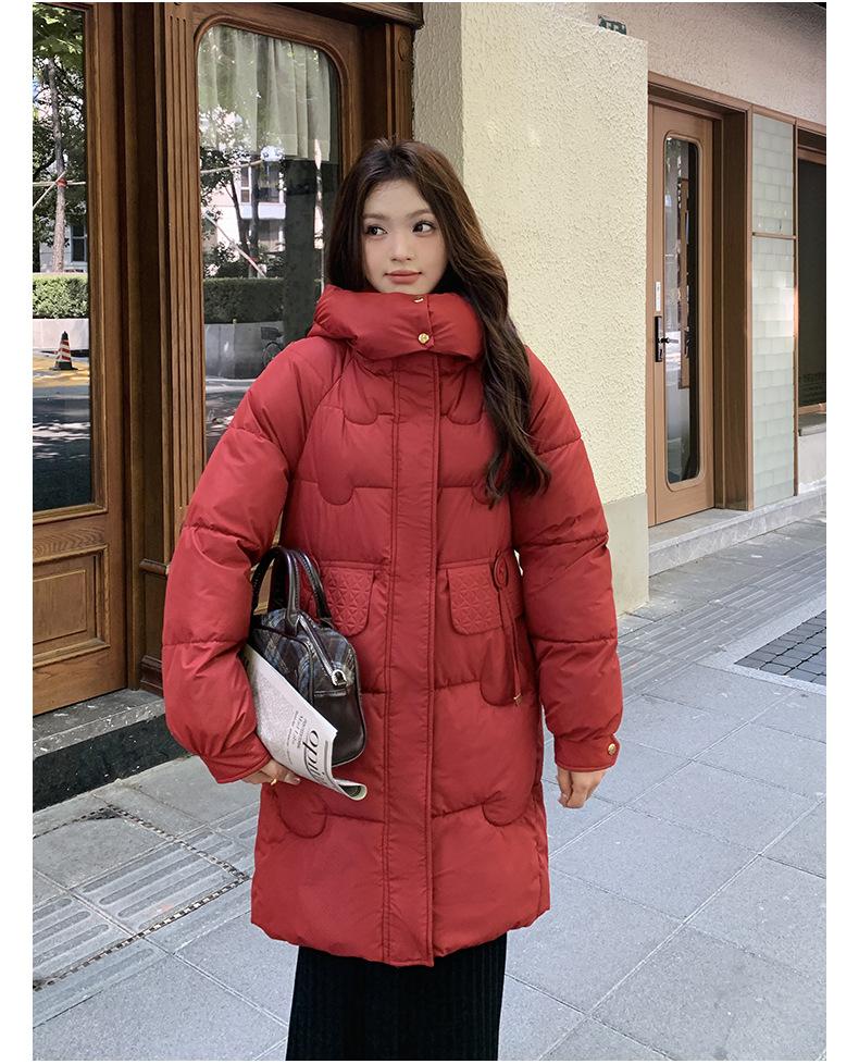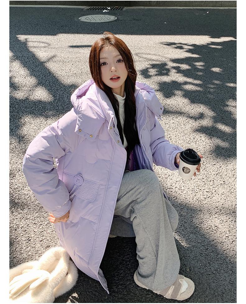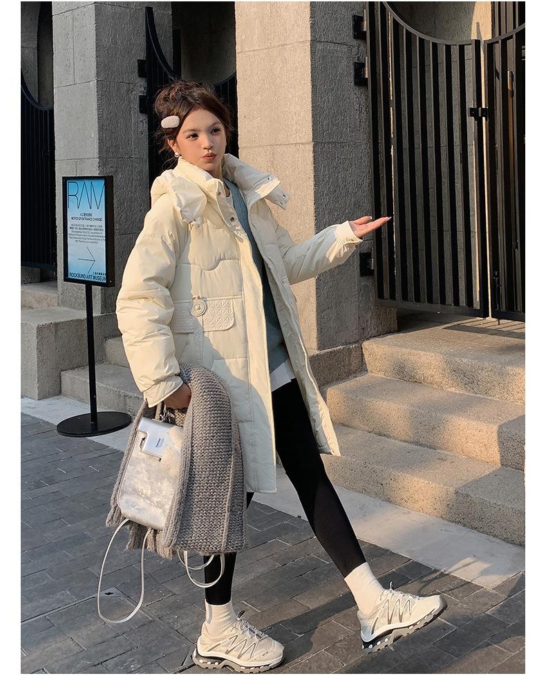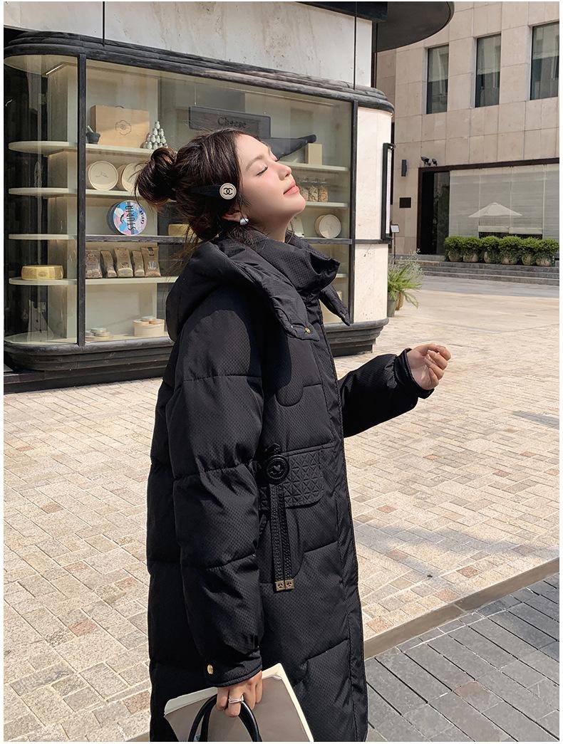 Chaqueta acolchada de algodón de plumón para mujer, nueva moda 2024, de longitud media, holgada, de invierno, estilo coreano, con capucha y acolchado de algodón.